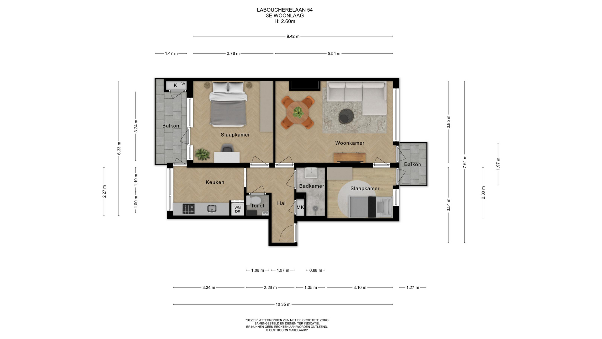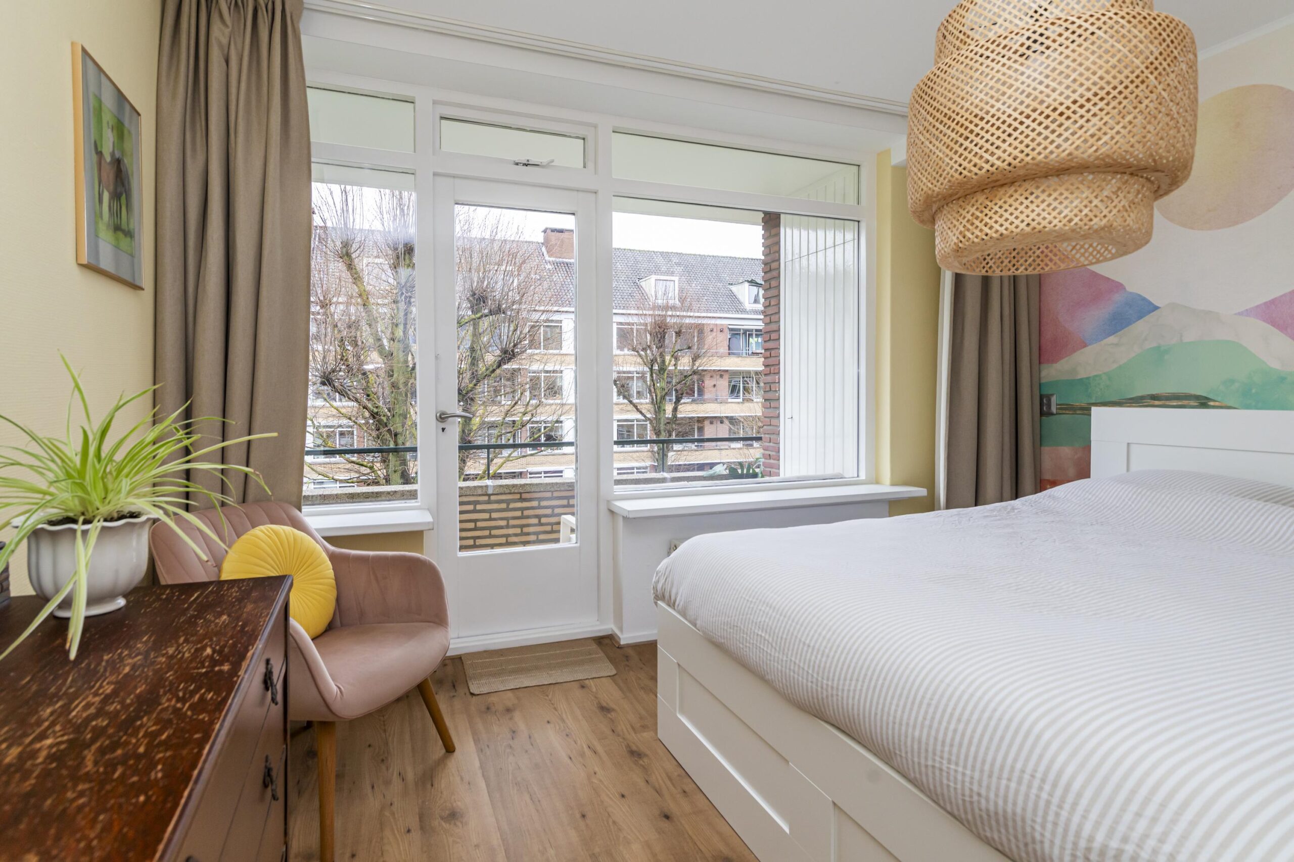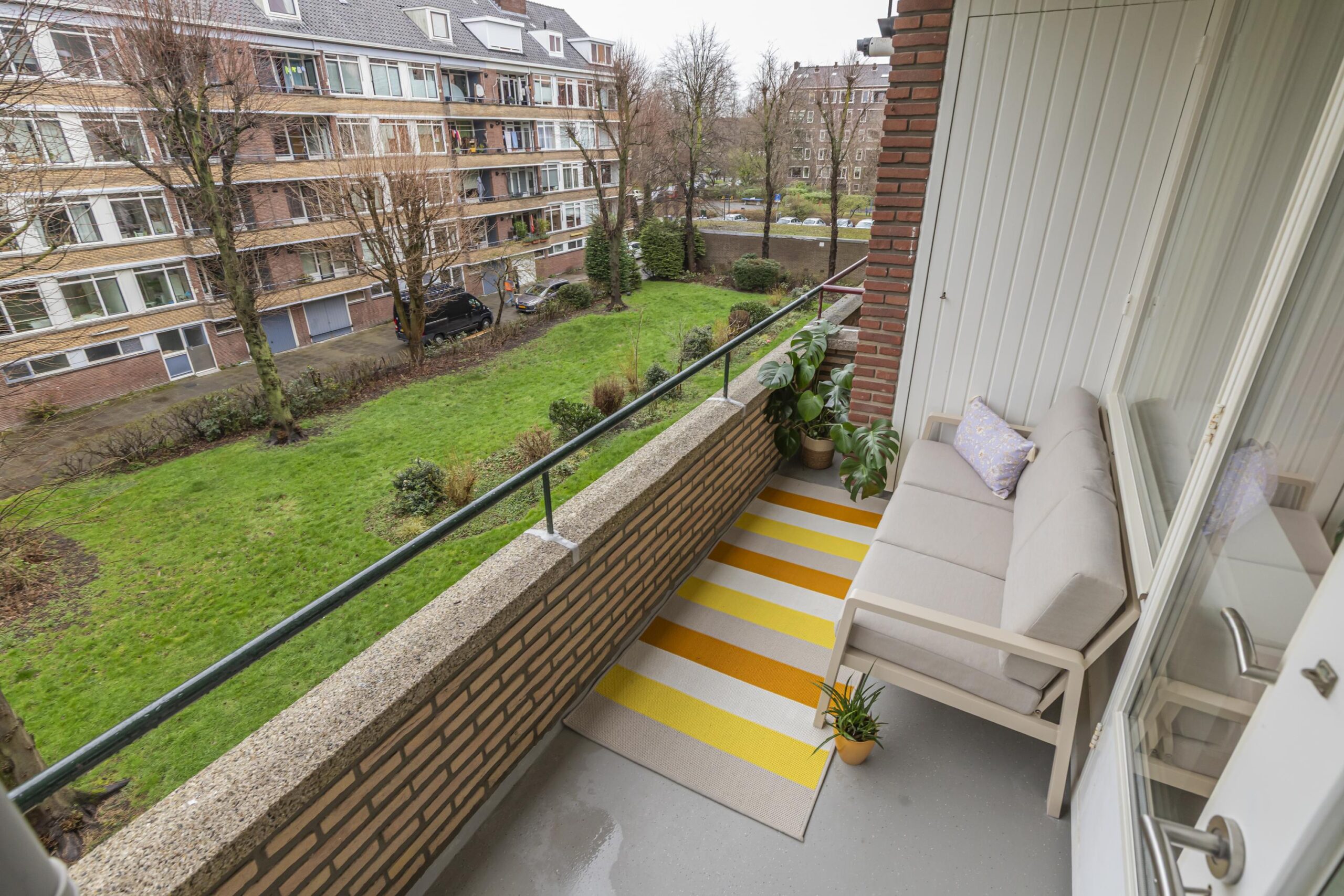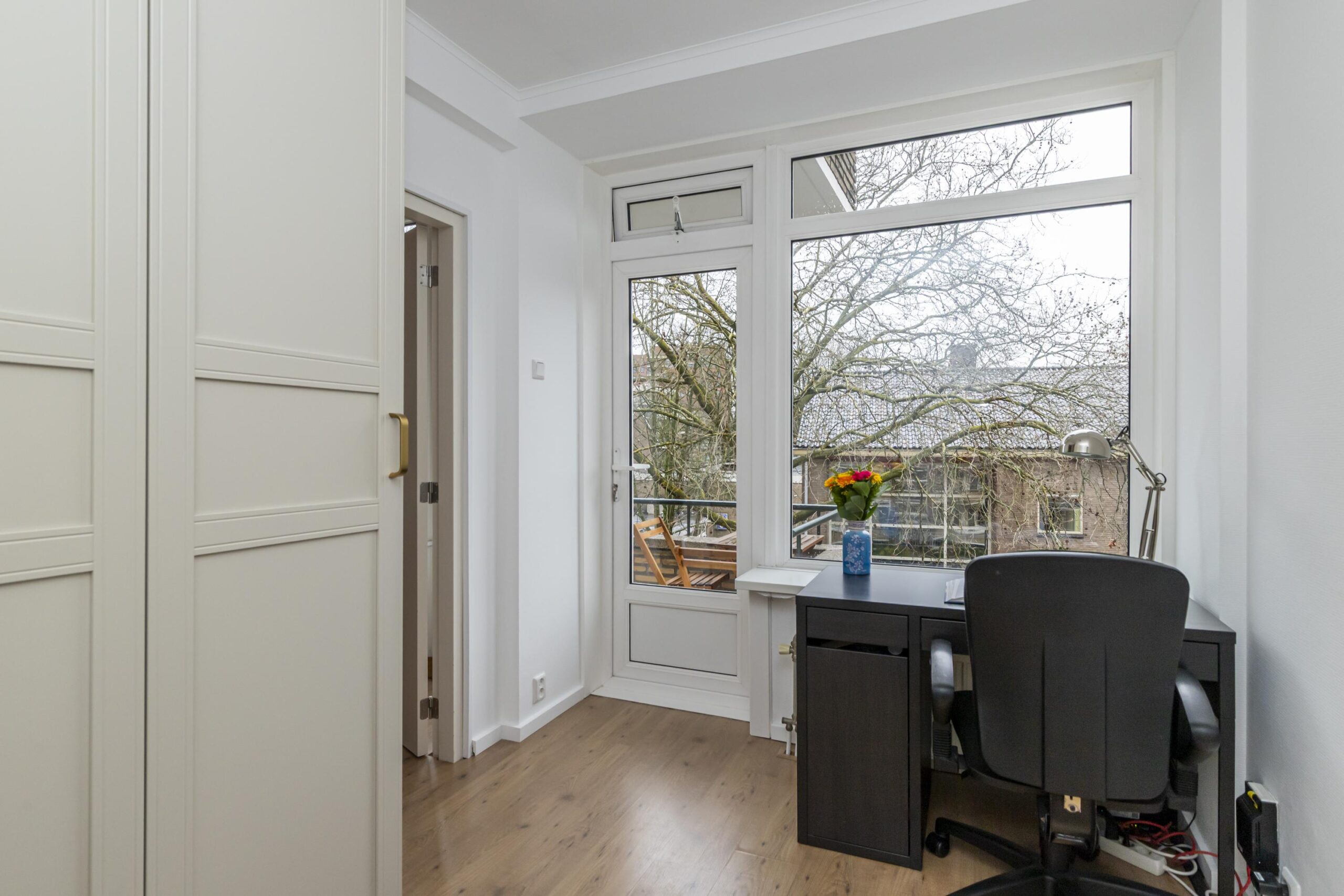 Aan de achterzijde van de woning vindt u de hoofdslaapkamer met toegang tot het balkon aan de achterzijde van de woning, net als vanuit de keuken. Op het balkon is de opstelplaats van de C.V.-ketel (2019) in de balkonkast gesitueerd.