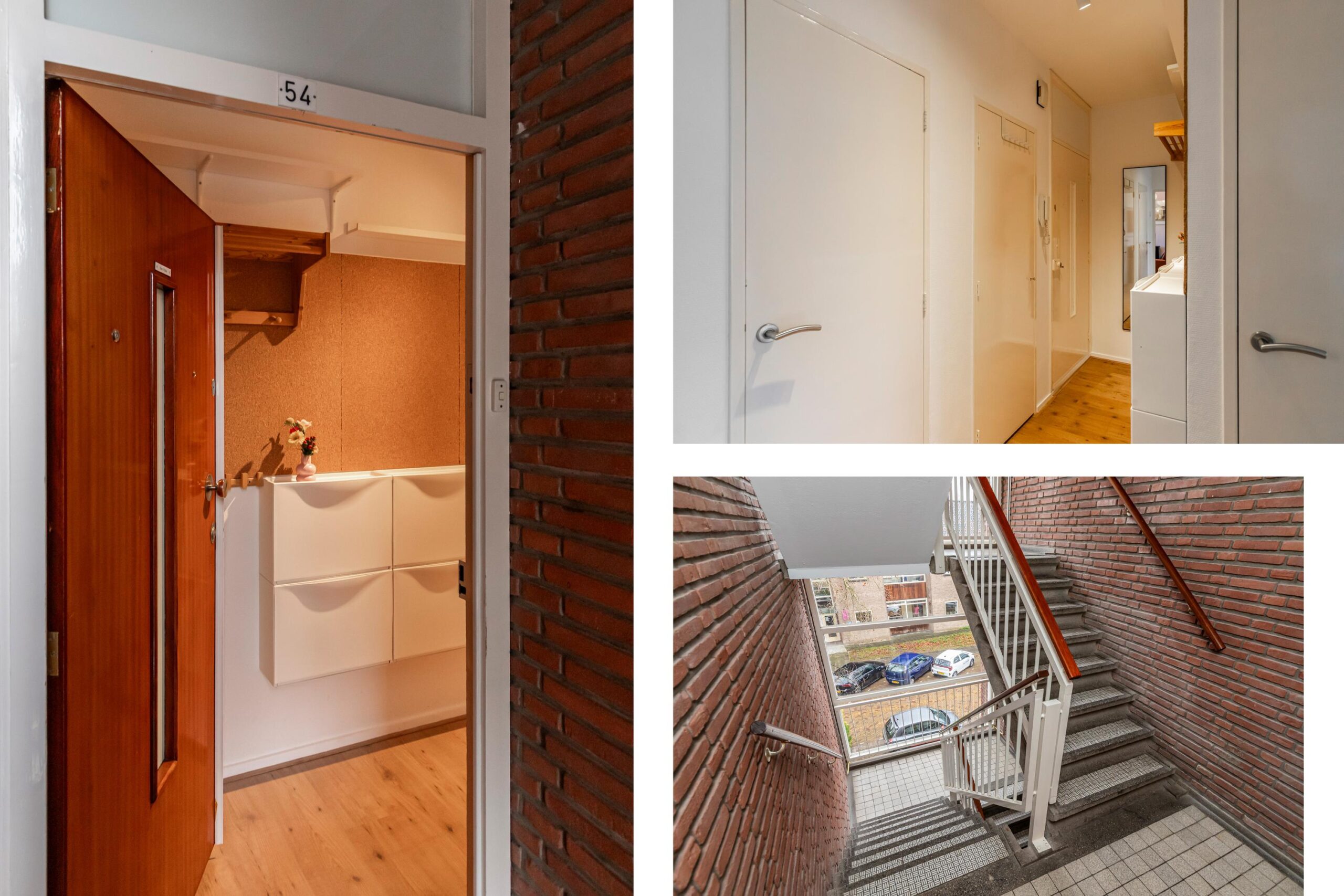 Via de gemeenschappelijke entree met bellentableau en brievenbussen, bereikt u via de trap de woning gelegen op de 2e verdieping. In de beneden bouw is een eigen afgesloten inpandige berging aanwezig.