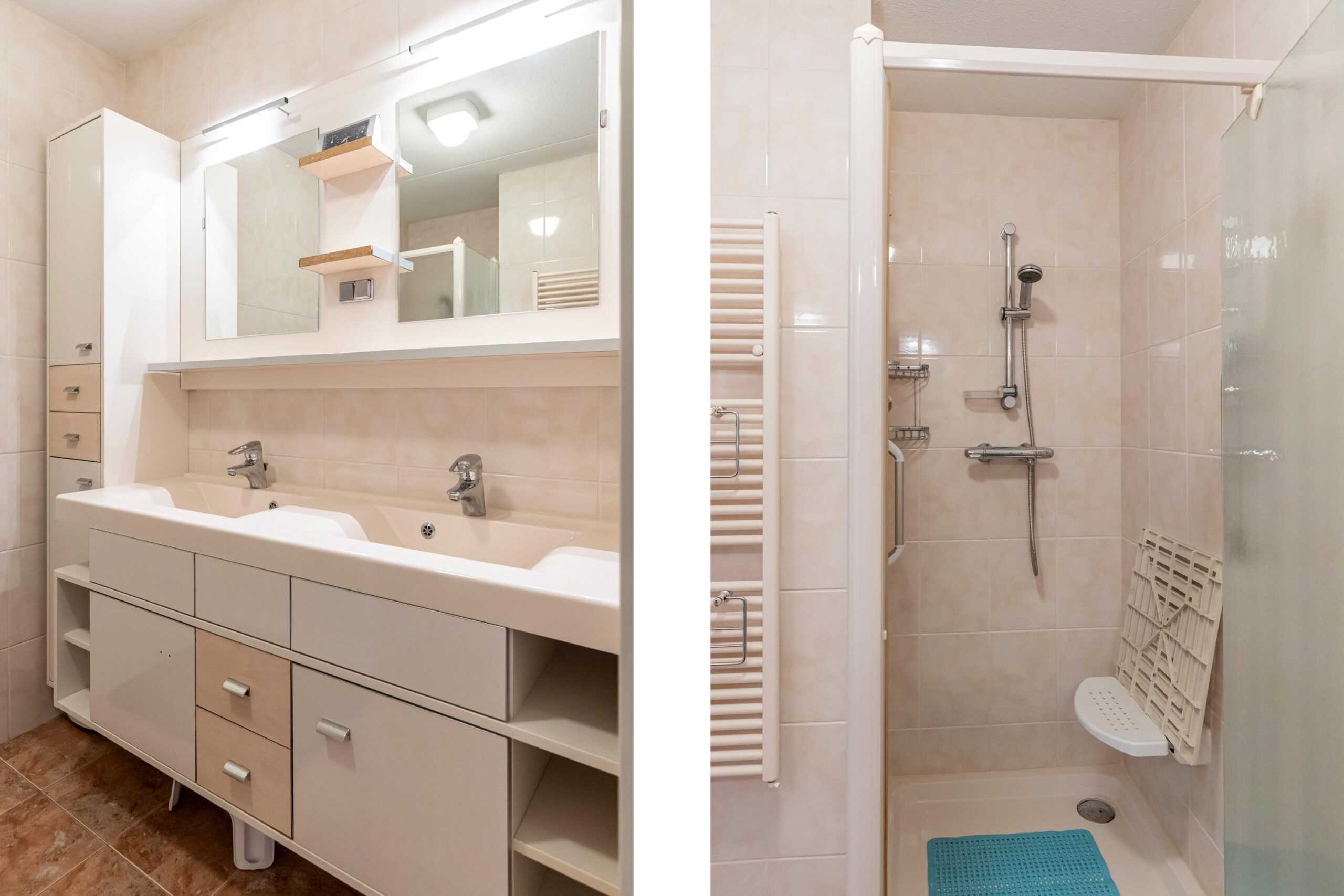 - Badkamervoorzieningen Douche, dubbele wastafel