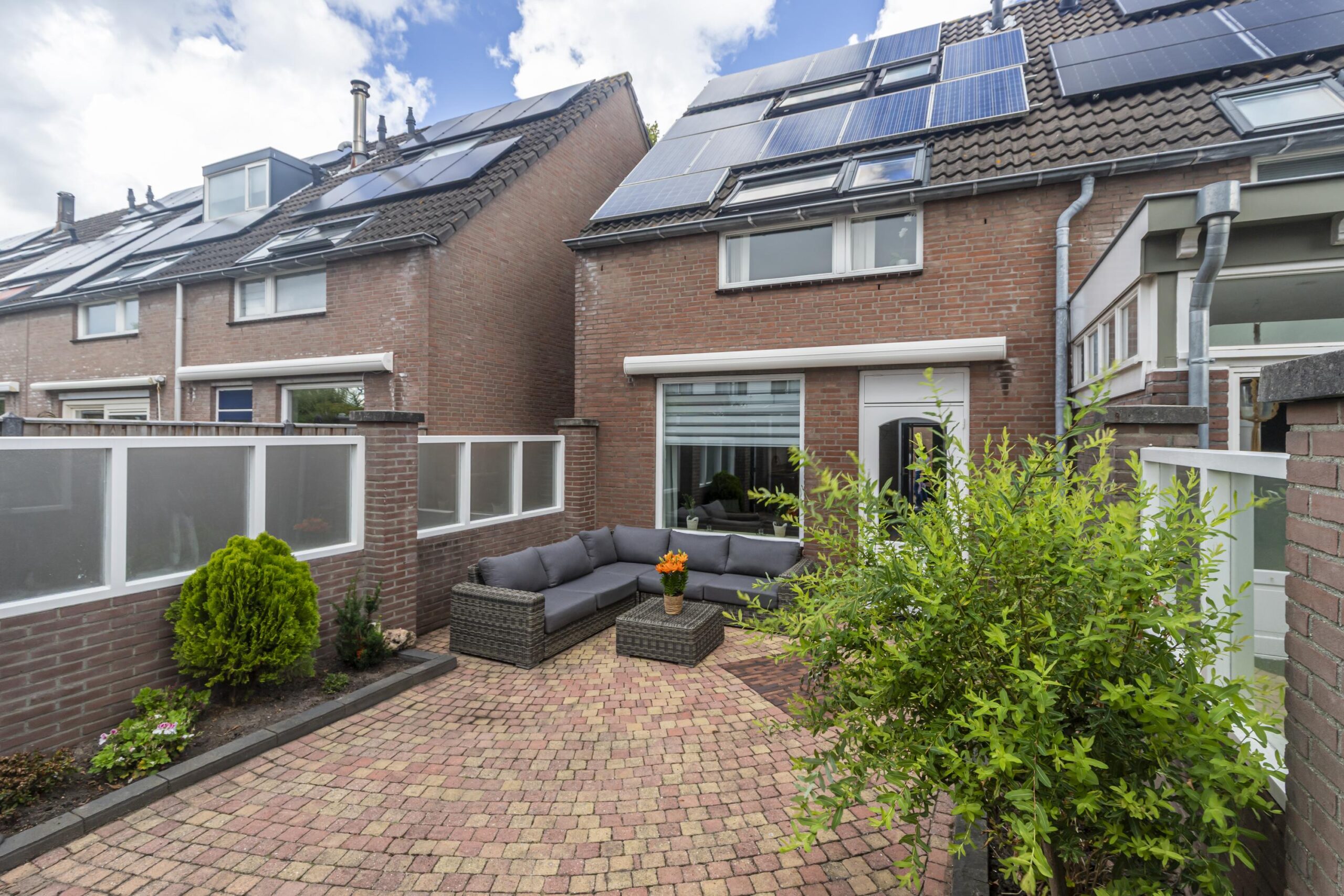 De achtertuin is verzorgd aangelegd en ligt op het zuidoosten, waardoor je heerlijk kunt genieten van de zon. Achterin de tuin staat een stenen berging met elektra, ideaal voor het stallen van fietsen of het opbergen van tuingereedschap.