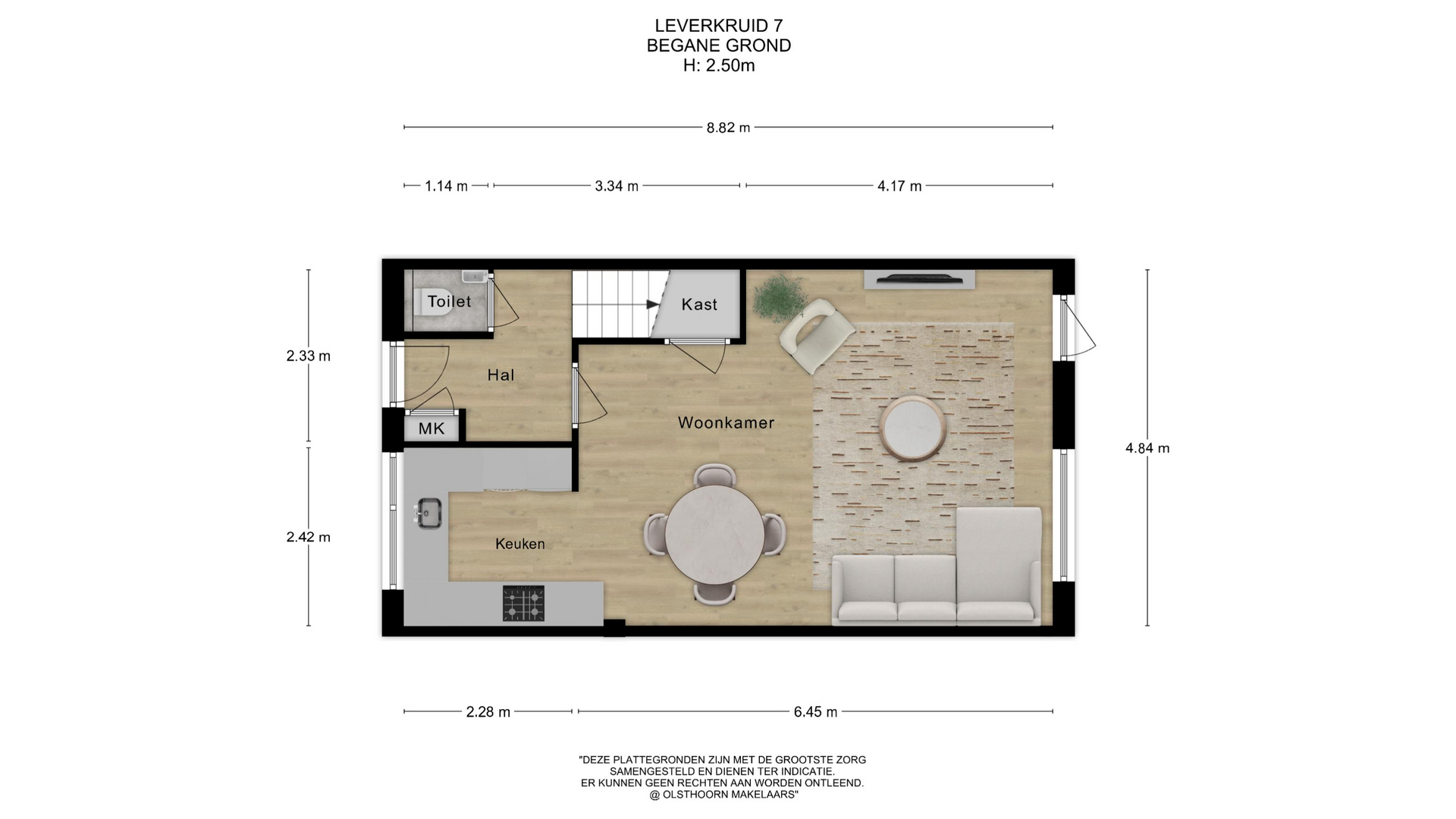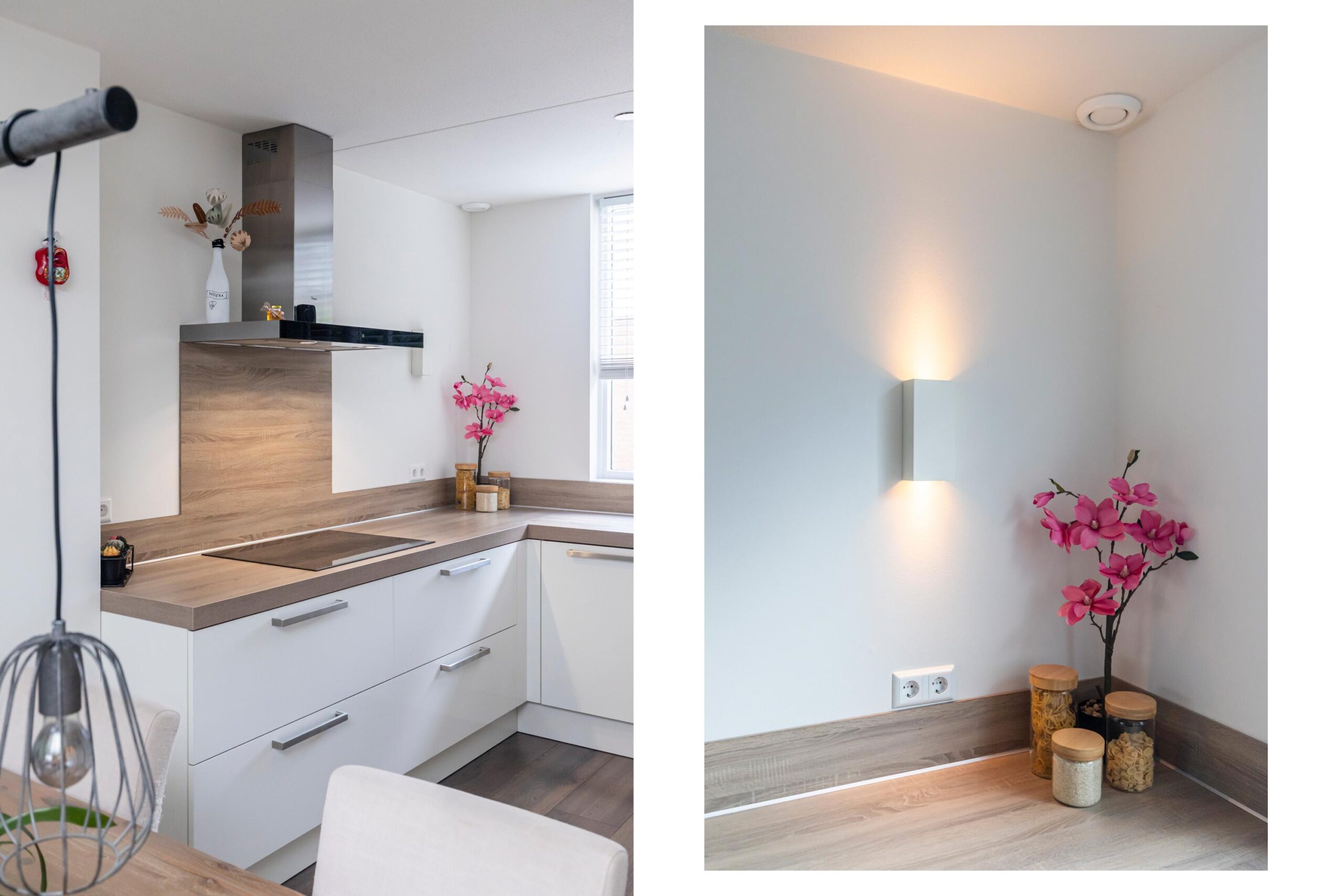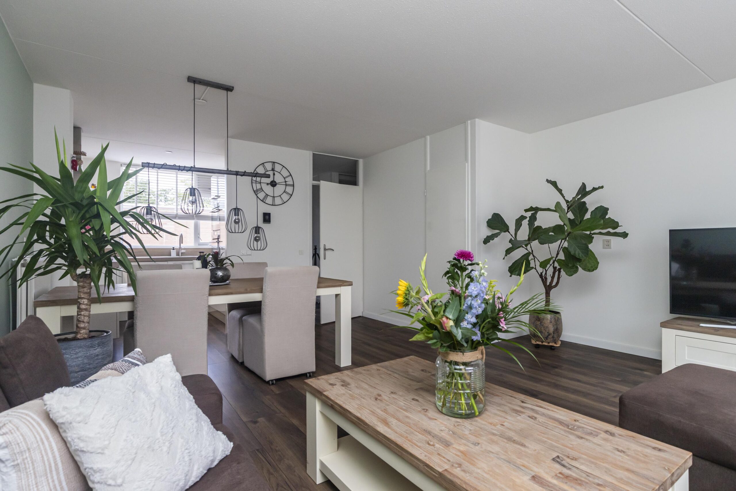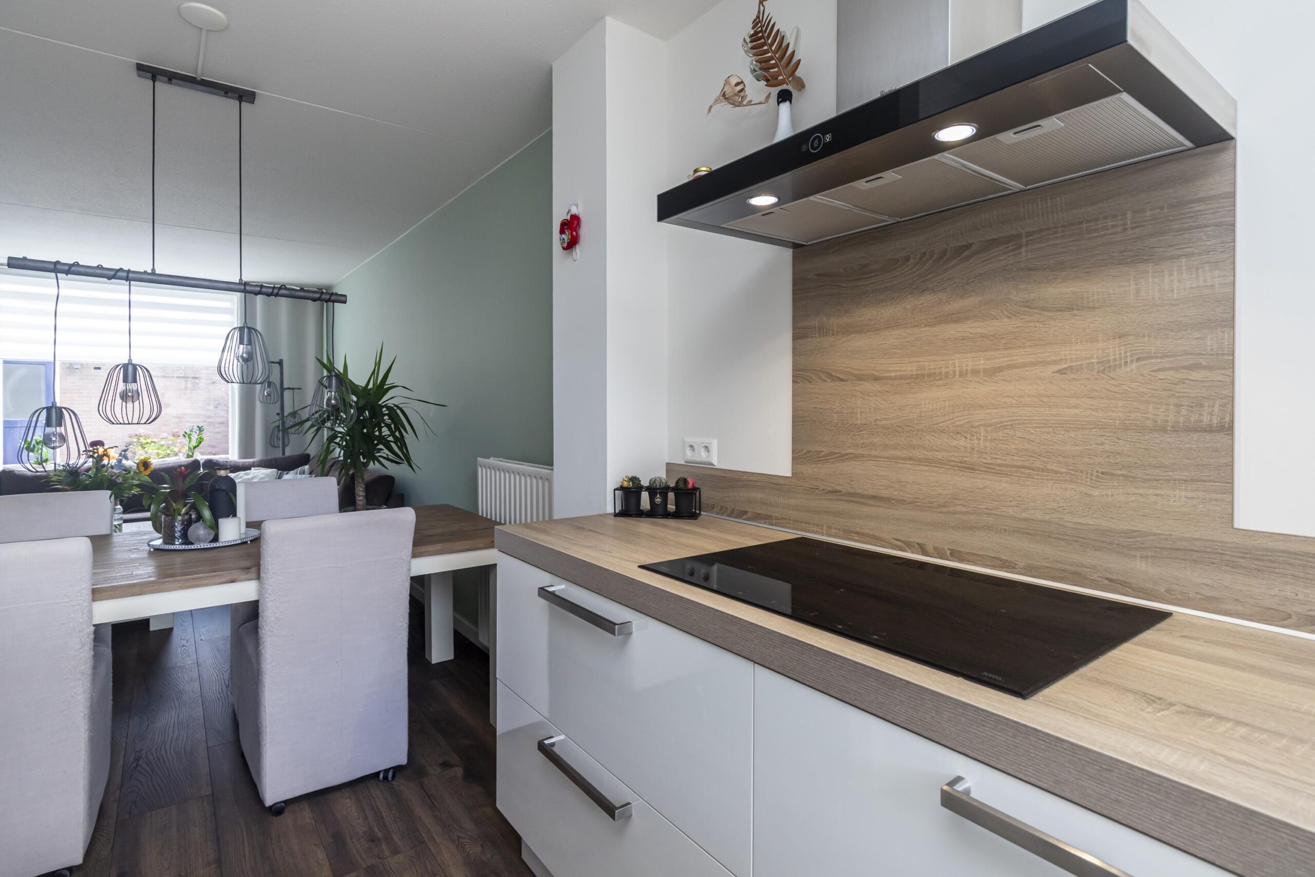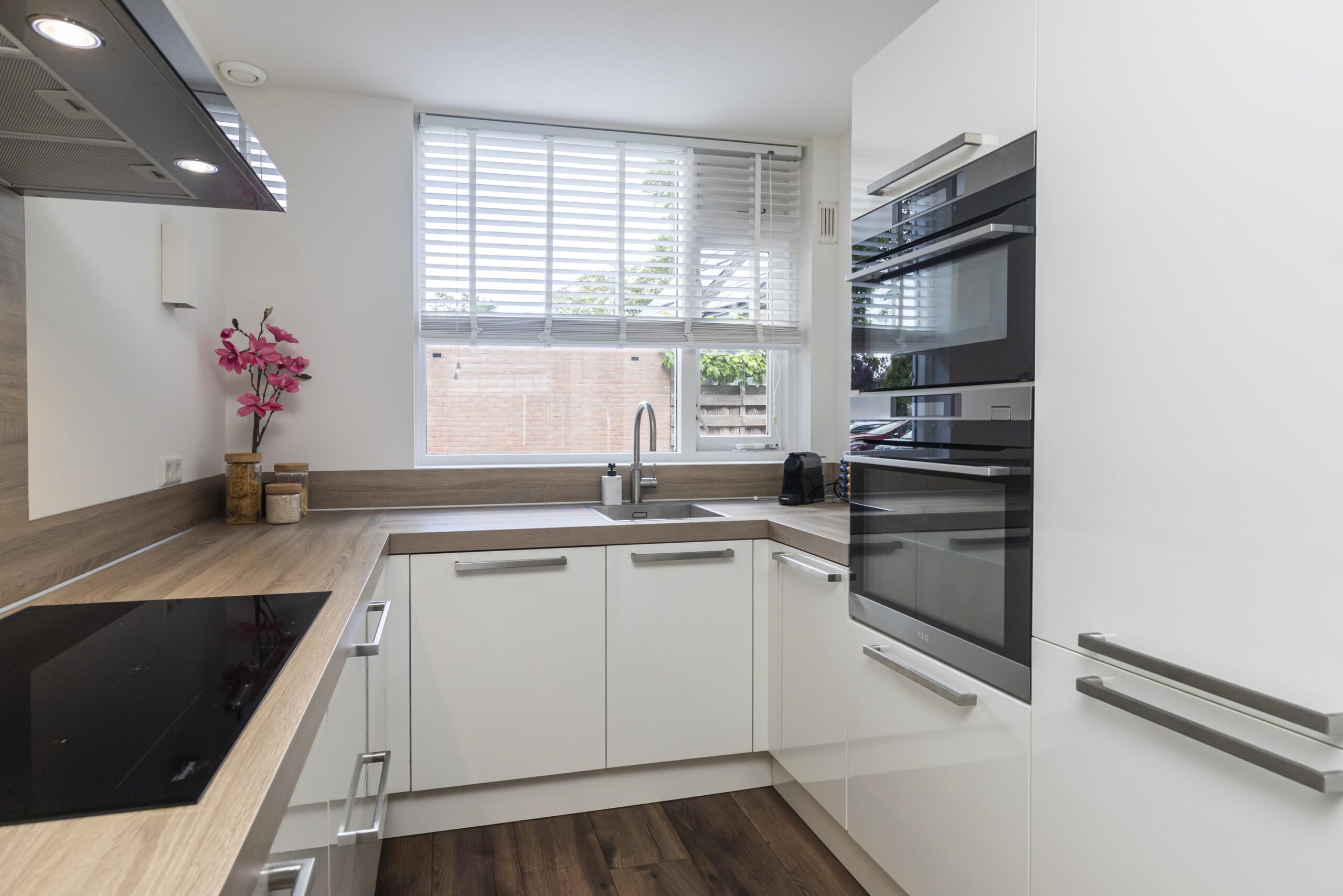 Je komt binnen via de hal met meterkast, toilet en trapopgang. Vervolgens stap je de lichte en sfeervolle woonkamer in, waar de grote raampartij zorgt voor een prettige lichtinval. Aan de voorzijde van de woning ligt de open keuken, die in 2019 is vernieuwd. De keuken beschikt over diverse inbouwapparatuur zoals een combi oven/ magnetron, combi stoomoven, Quooker, vaatwasmachine en een koel-/vriescombinatie.