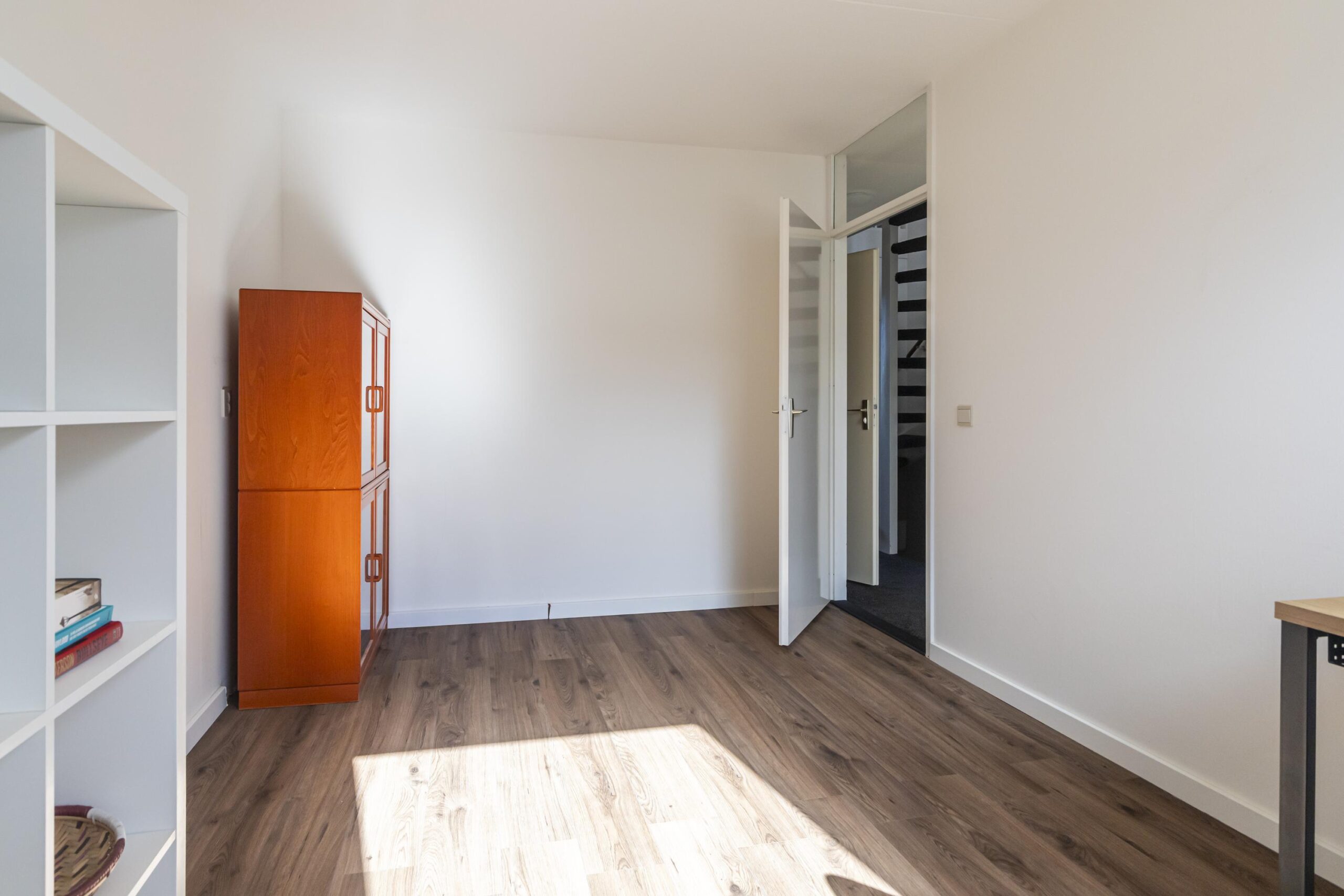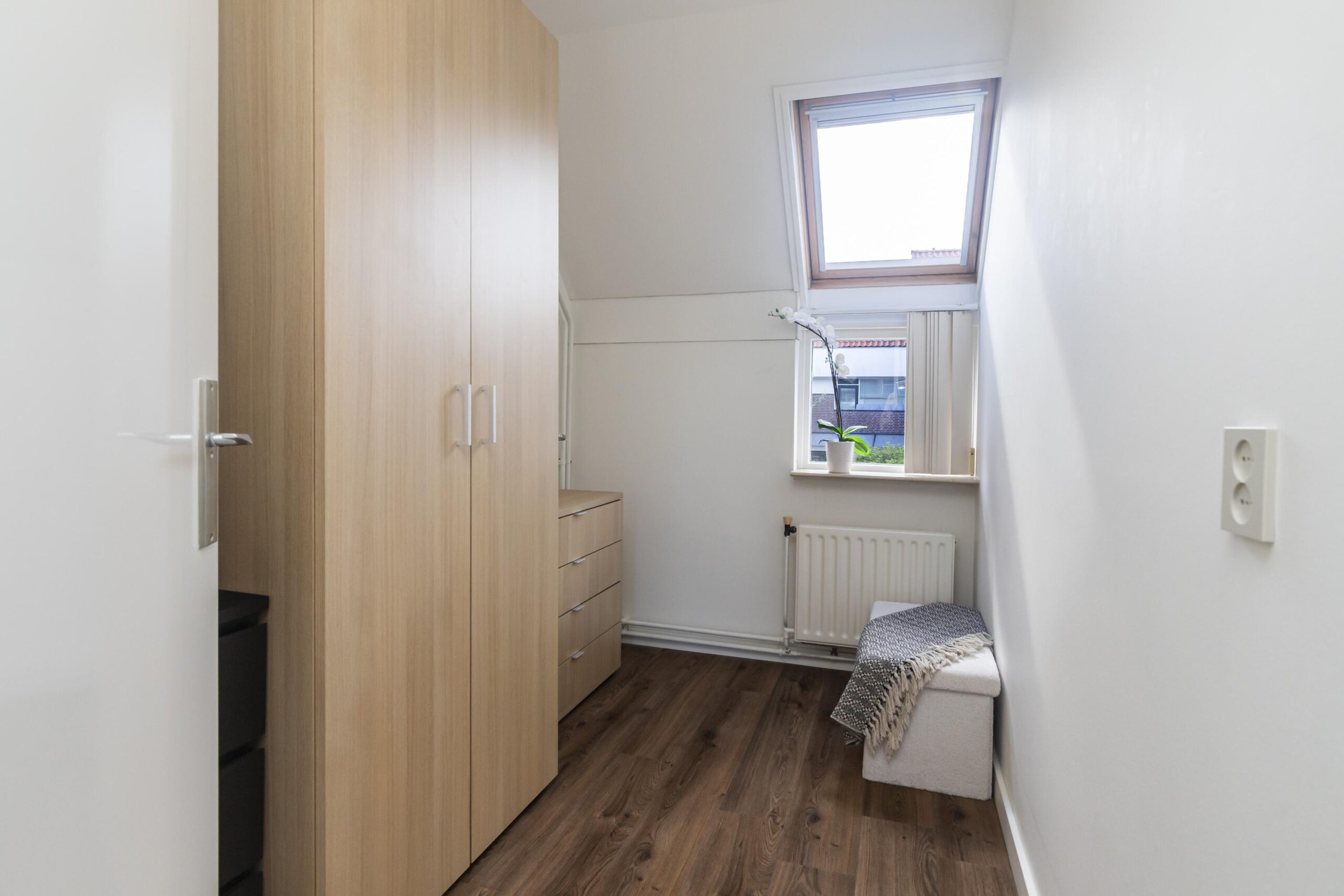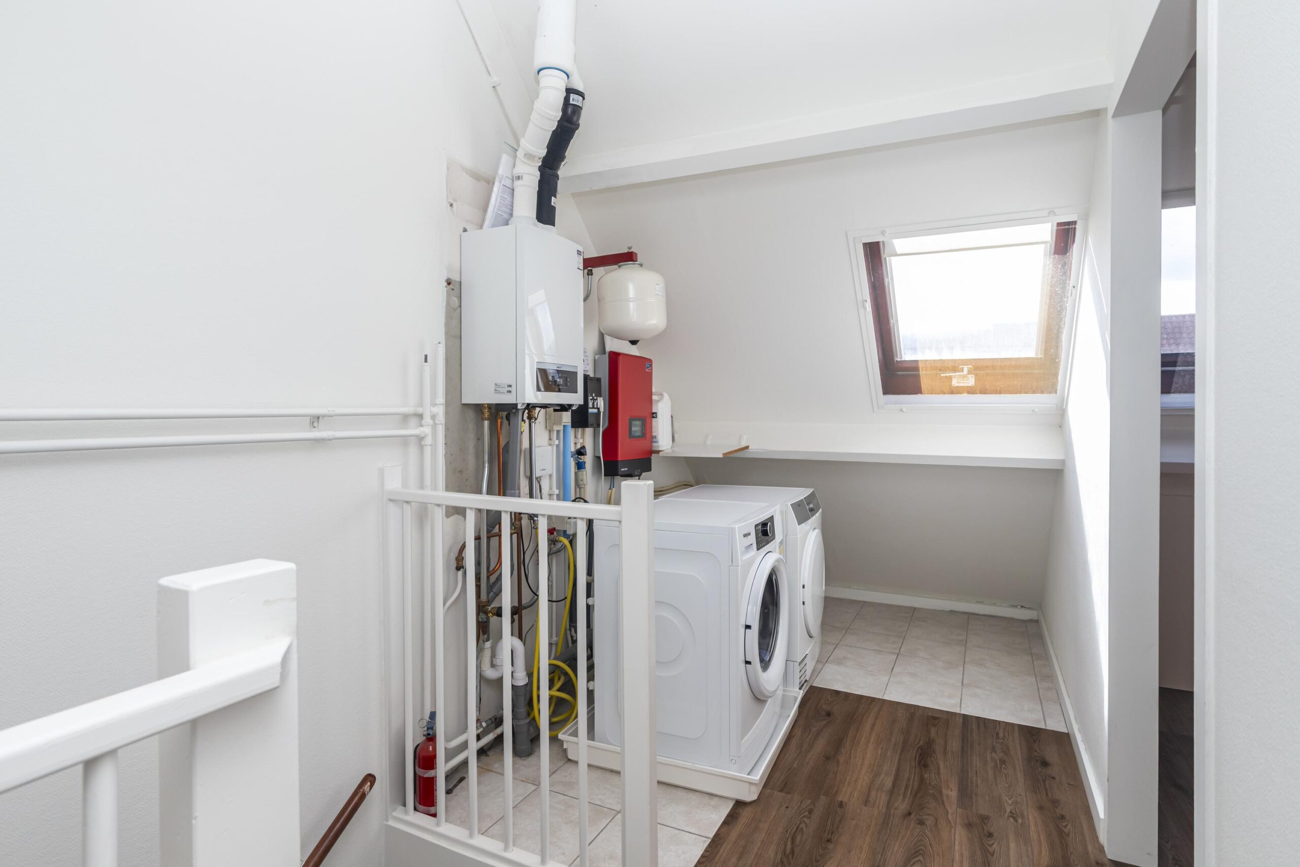De tweede verdieping beschikt over een ruime vierde slaapkamer met volop mogelijkheden. Op de overloop bevindt zich de aansluiting voor wasmachine en droger. Daarnaast is er handige bergruimte achter de knieschotten, ideaal voor het opbergen van spullen die je niet dagelijks nodig hebt.