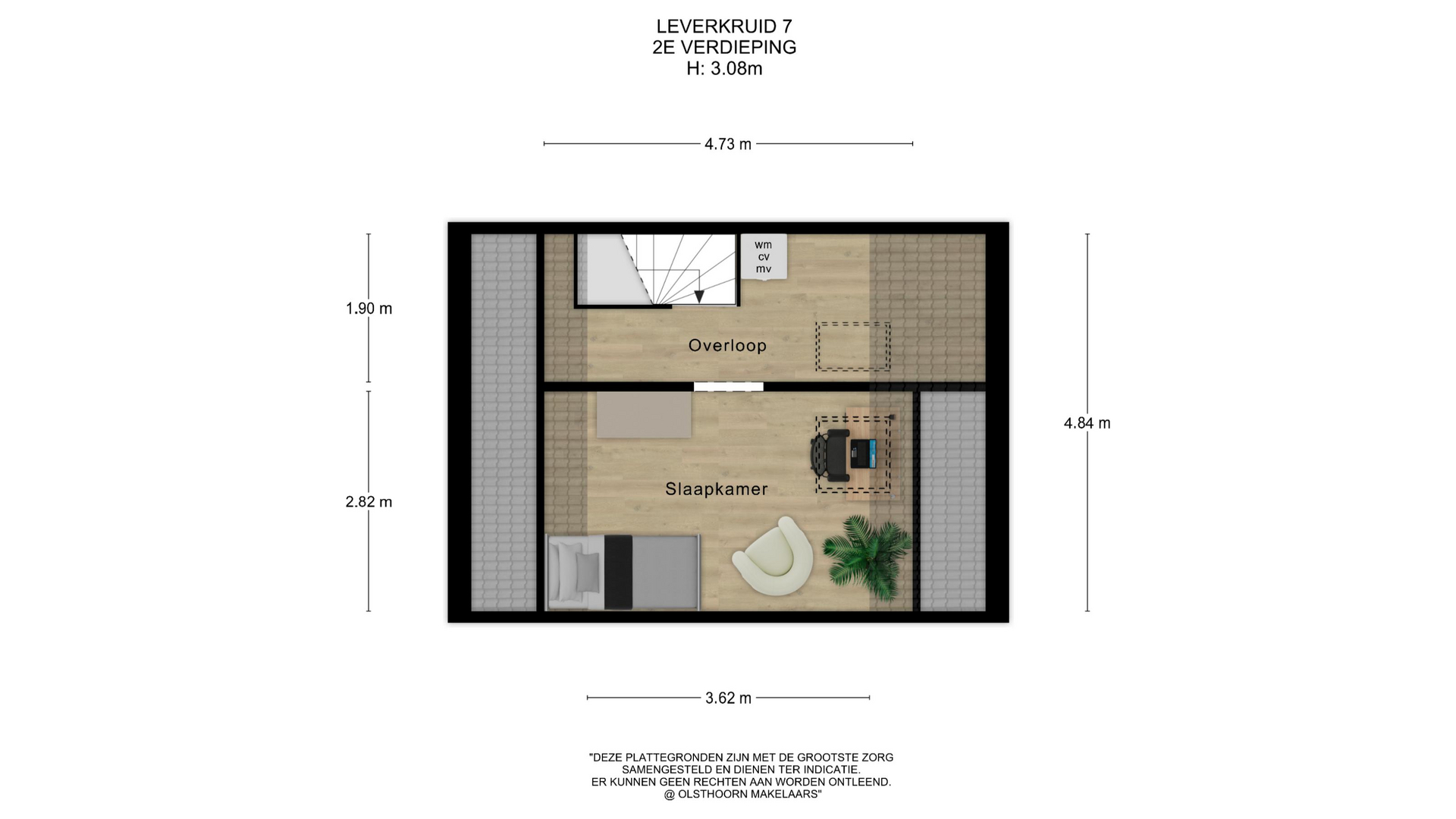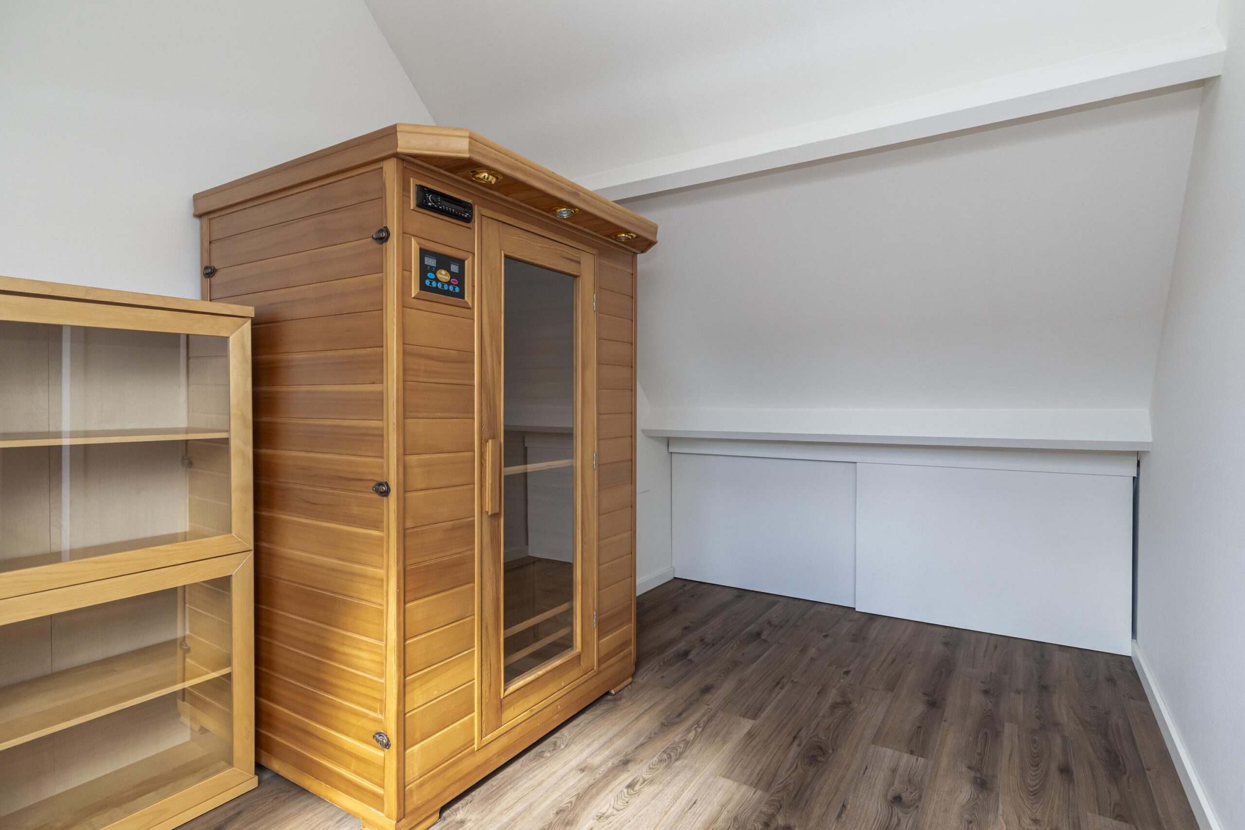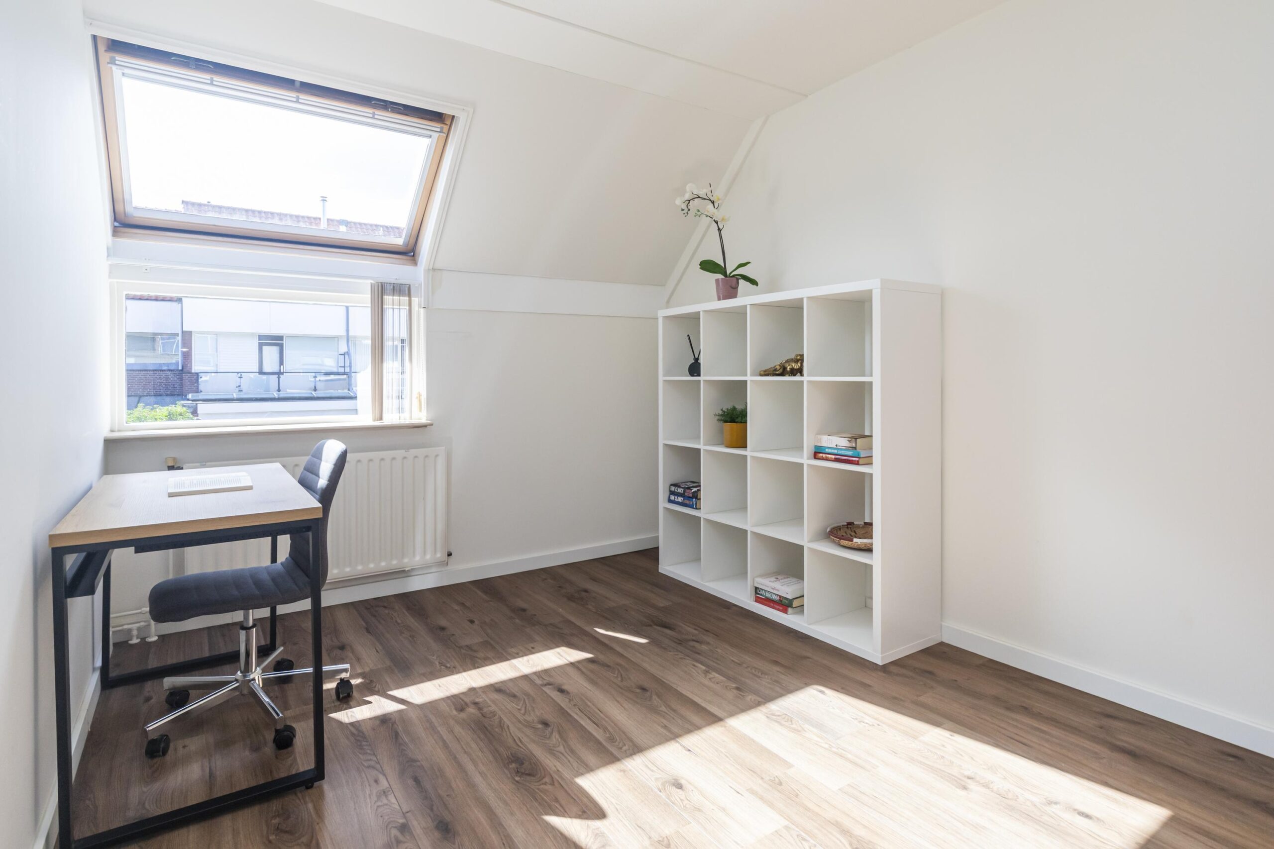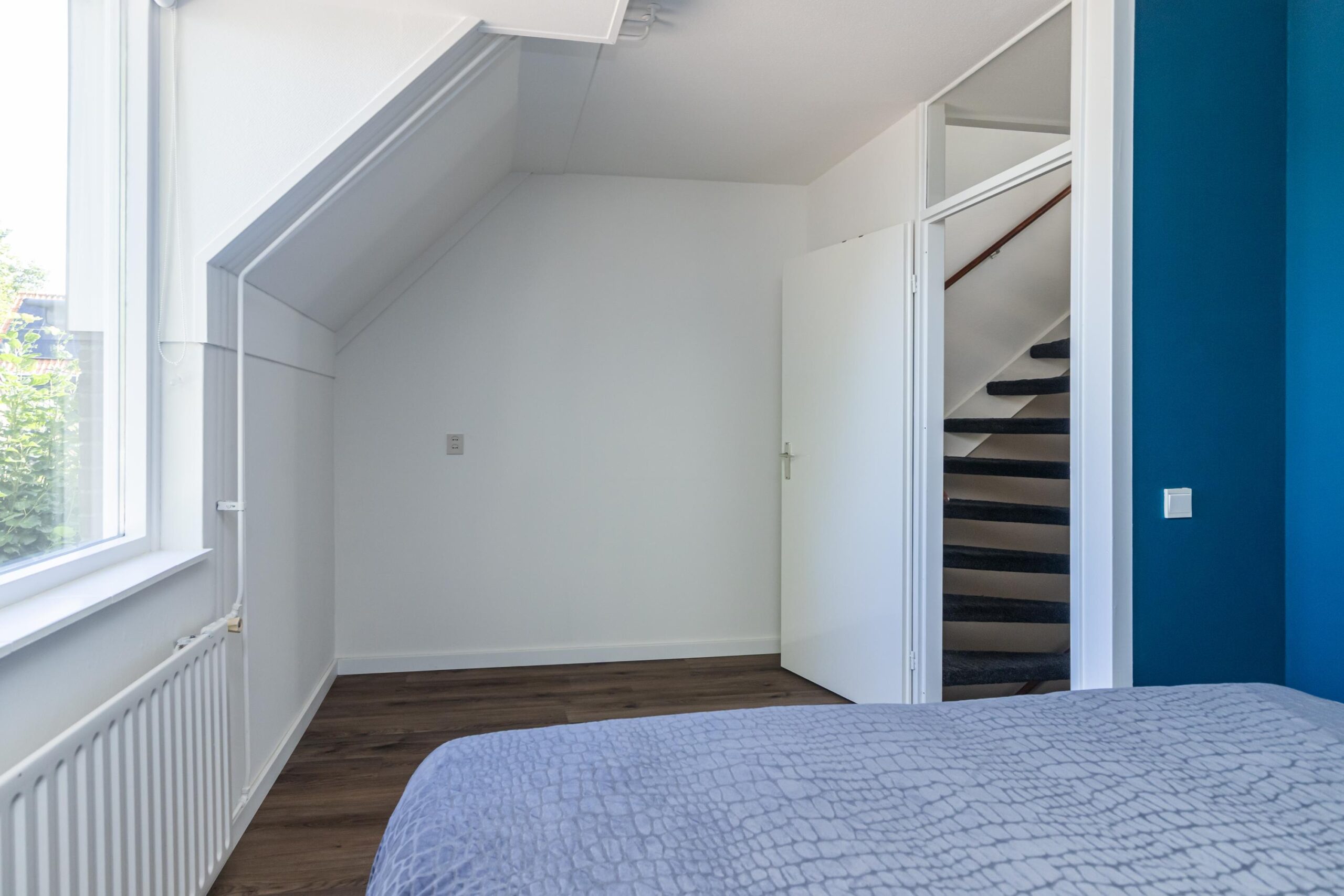De tweede verdieping beschikt over een ruime vierde slaapkamer met volop mogelijkheden. Op de overloop bevindt zich de aansluiting voor wasmachine en droger. Daarnaast is er handige bergruimte achter de knieschotten, ideaal voor het opbergen van spullen die je niet dagelijks nodig hebt.