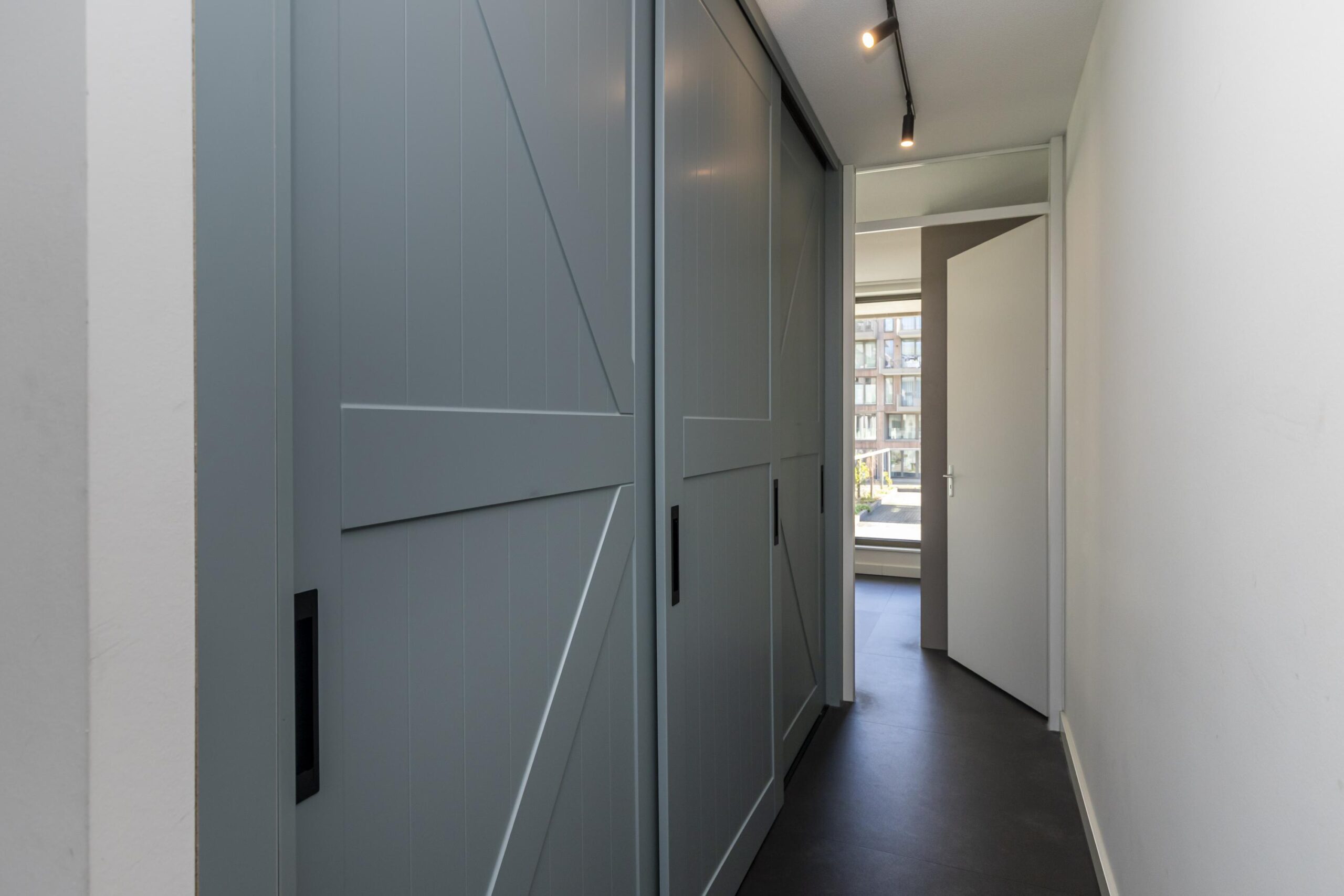 Op de bovenste woonlaag zijn drie slaapkamers. Aan de achterzijde liggen twee slaapkamers en aan de voorzijde de royale hoofdslaapkamer. De badkamer ligt centraal en is zowel vanuit de gang als de hoofdslaapkamer toegankelijk. Hier vind je een inloopdouche, wastafelmeubel en een tweede toilet. Op de overloop is een extra inbouwkast voor nog meer opbergruimte. De aansluiting voor de wasmachine en droger bevinden zich in een inpandige kast.