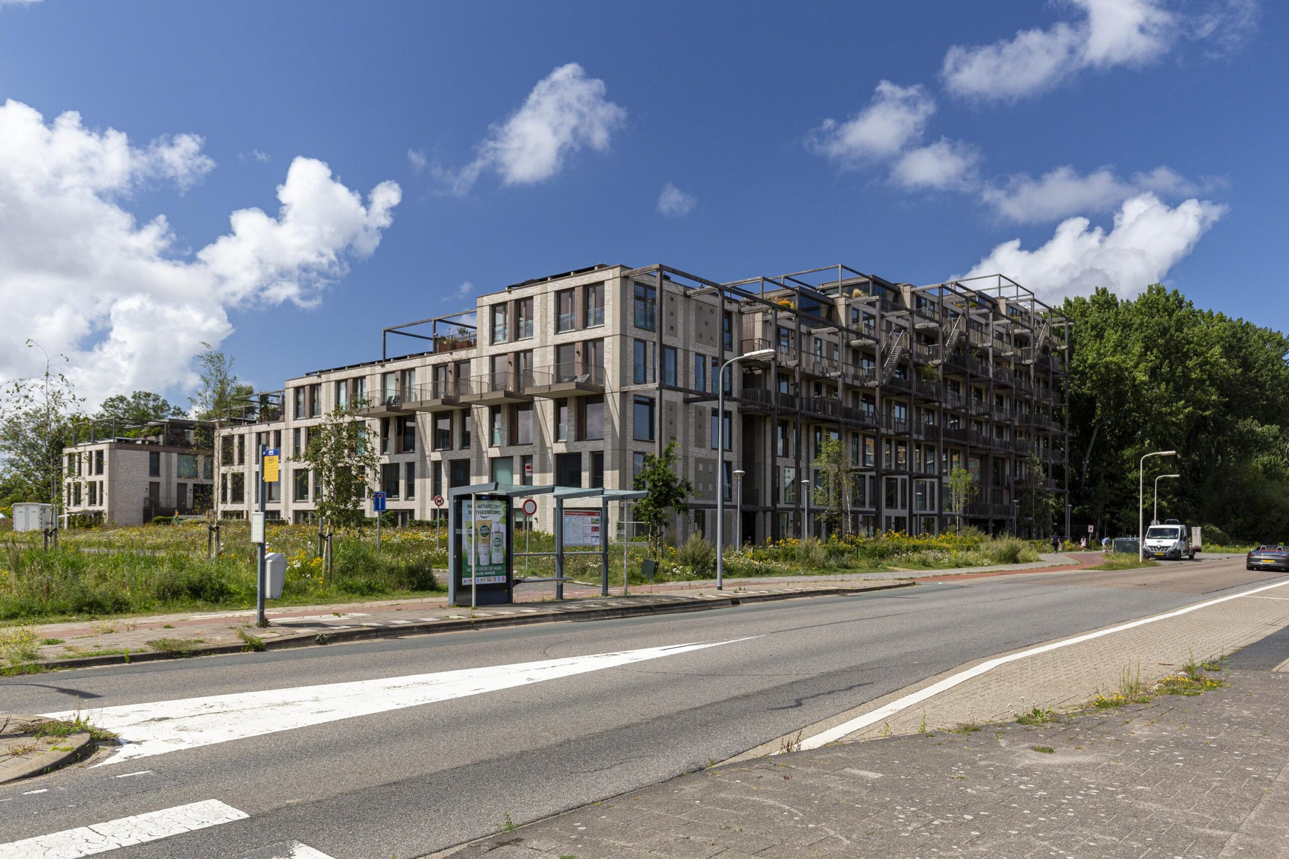 Living in Proeftuin Erasmusveld means more than just a house. You are part of a sustainable and social living environment with various shared spaces. There is a communal space for joint or private activities, a guest room for visitors, a laundry bar with communal washing machines and a study that you can reserve. The communal deck has seating areas and flower boxes, and you can grow your own vegetables in the vegetable garden. Behind the building is a spacious playground.
