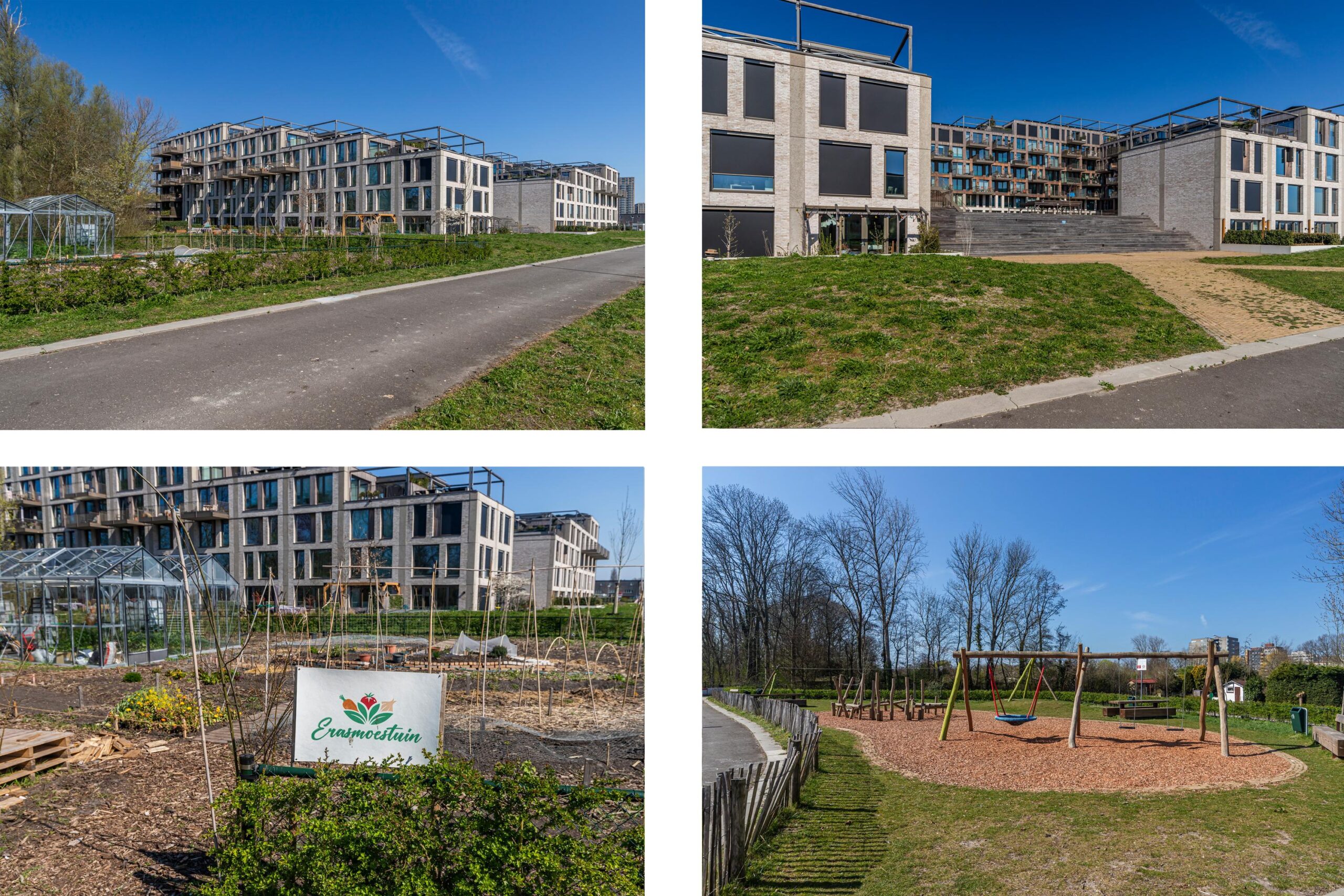 Wonen in Proeftuin Erasmusveld betekent meer dan alleen een huis. Je maakt deel uit van een duurzame en sociale woonomgeving met diverse gedeelde ruimtes. Zo is er een collectieve ruimte voor gezamenlijke of privéactiviteiten, een logeerkamer voor gasten, een wasbar met gemeenschappelijke wasmachines en een werkkamer die je kunt reserveren. Op het gemeenschappelijke dek zijn zitjes en bloembakken, en in de moestuin kun je zelf groenten verbouwen. Achter het gebouw ligt een ruime speeltuin.