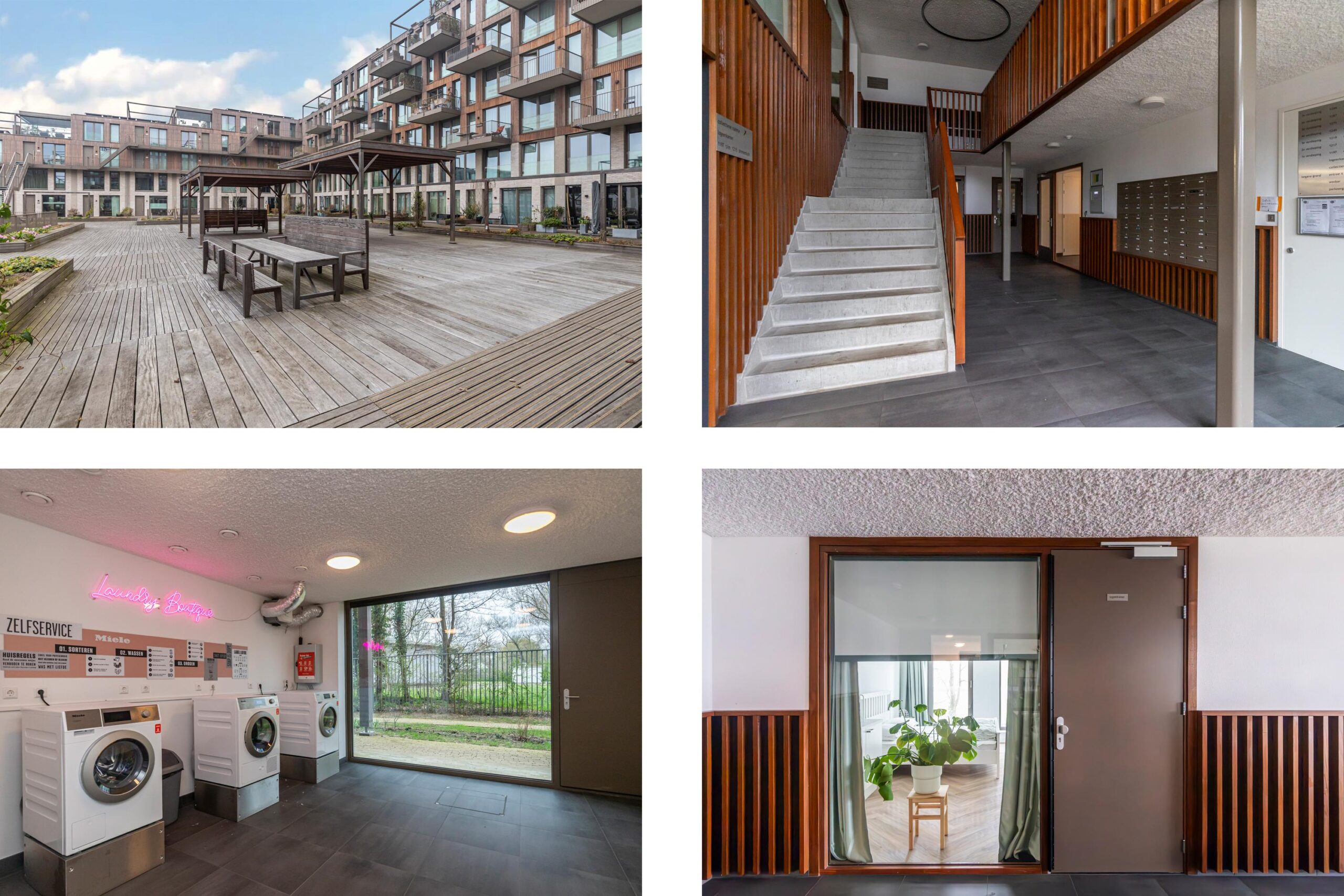 Daarnaast is er een gedeelde logeerkamer voor bezoek, een centrale wasruimte en een algemene woonkamer. Handig geregeld en een fijne aanvulling op je wooncomfort.