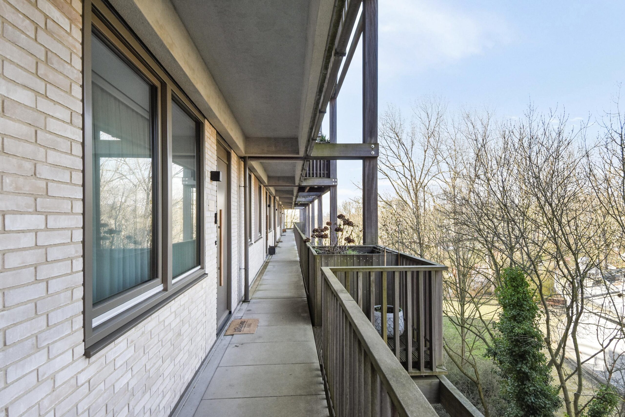 Via de galerij bereikt u de entree van de woning. De overloop geeft toegang tot de meterkast, een wasruimte/berging met wasmachineaansluiting en het separate toilet met fontein.