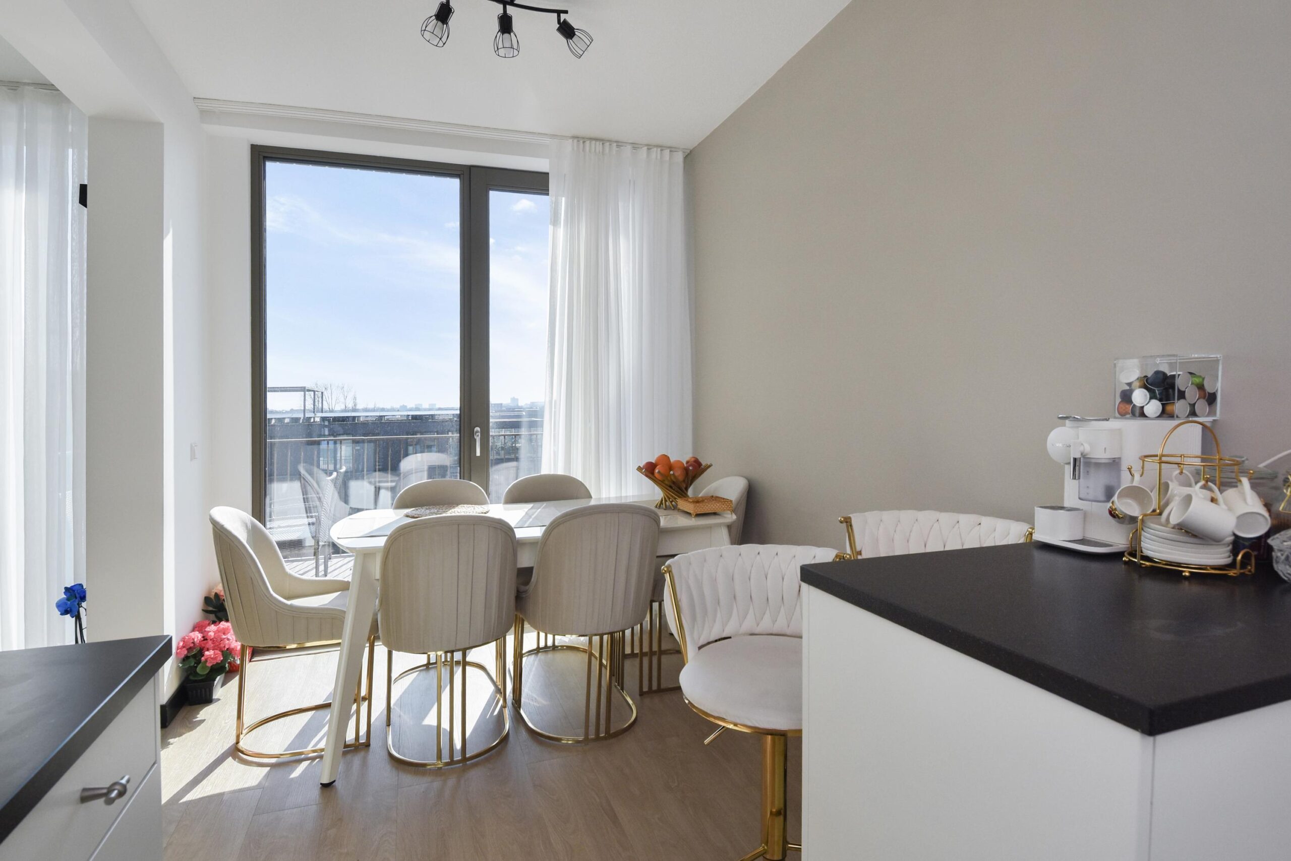 De woonkamer is licht en ruim en biedt toegang tot een extra berging waar zich de WTW-unit en de warmtepomp bevinden. Aansluitend aan de woonkamer ligt de woonkeuken, uitgevoerd met een koelkast, vriezer, vaatwasser, 4-pits inductiekookplaat, afzuigkap en combimagnetron. Vanuit de woonkeuken is er directe toegang tot het zonnige balkon op het zuidwesten, waar u in de middag en avond heerlijk kunt genieten van de zon.