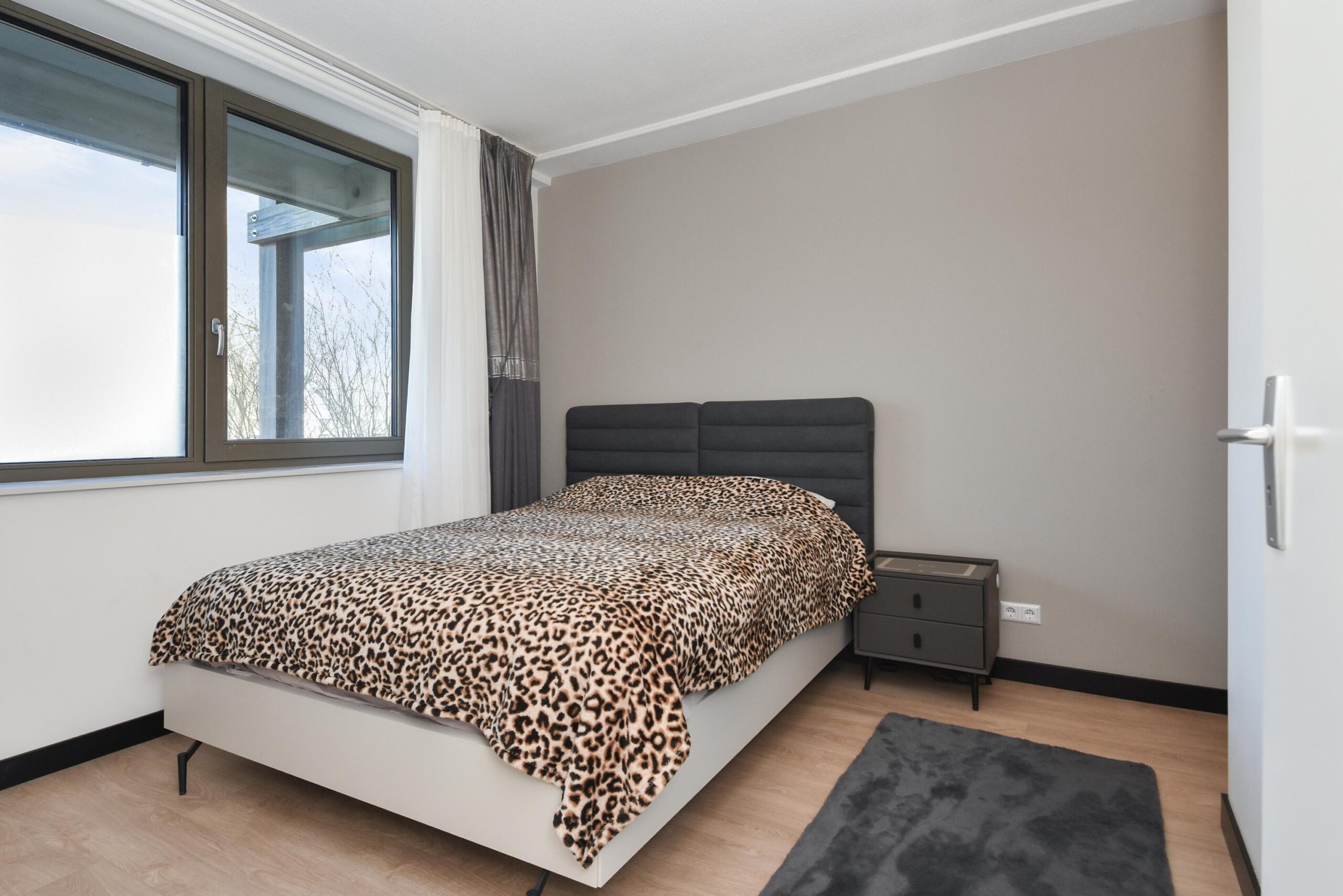 Aan de voorzijde bevinden zich twee slaapkamers. De hoofdslaapkamer is voorzien van een praktische walk-in closet. De tweede slaapkamer is eveneens goed van formaat en geschikt als slaap-, werk- of logeerkamer.