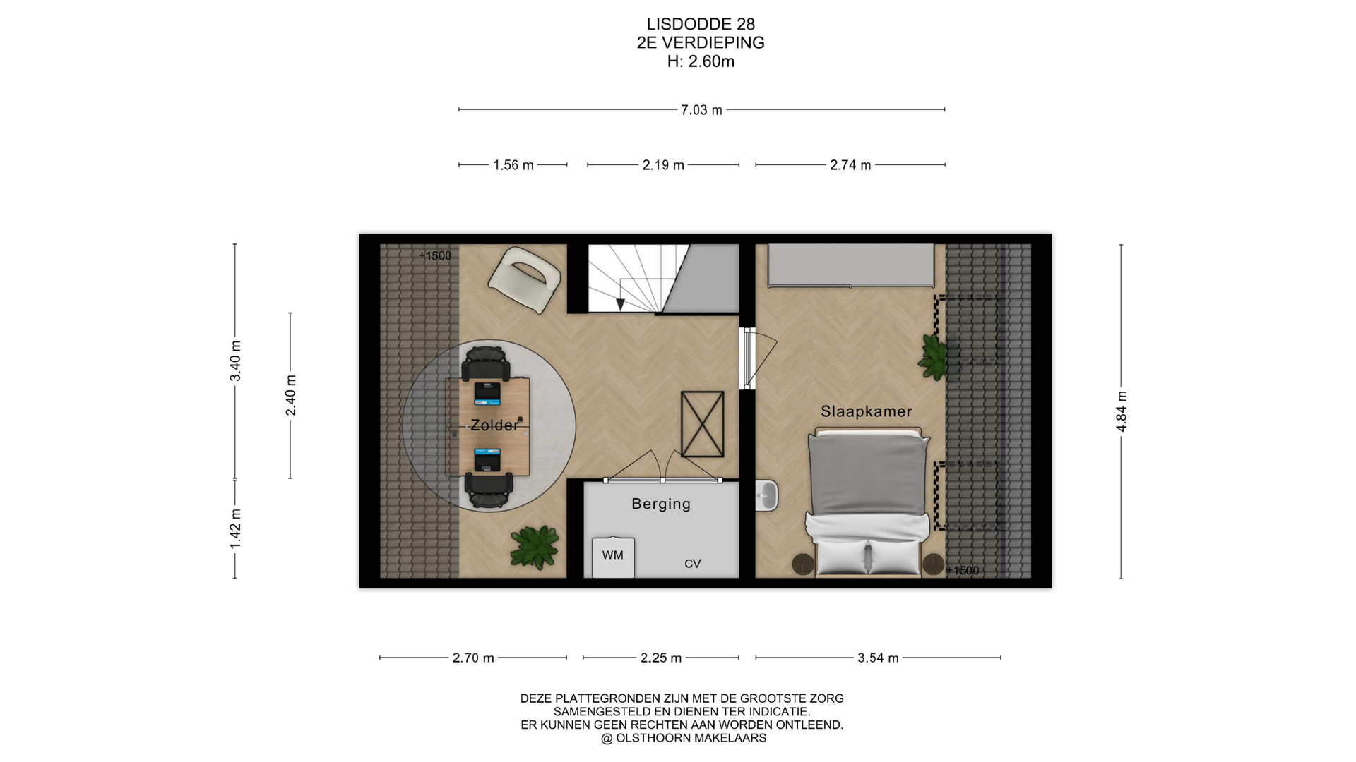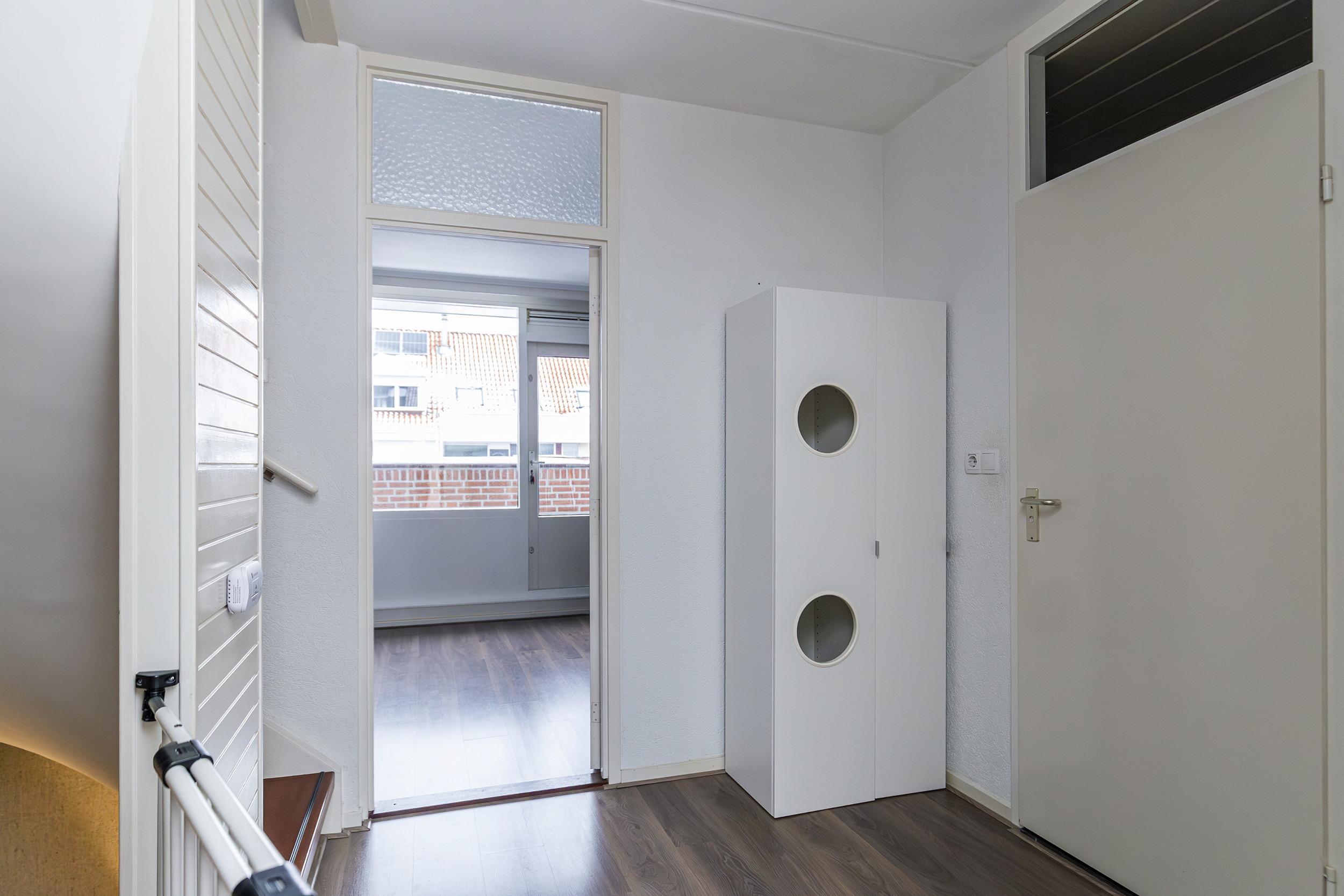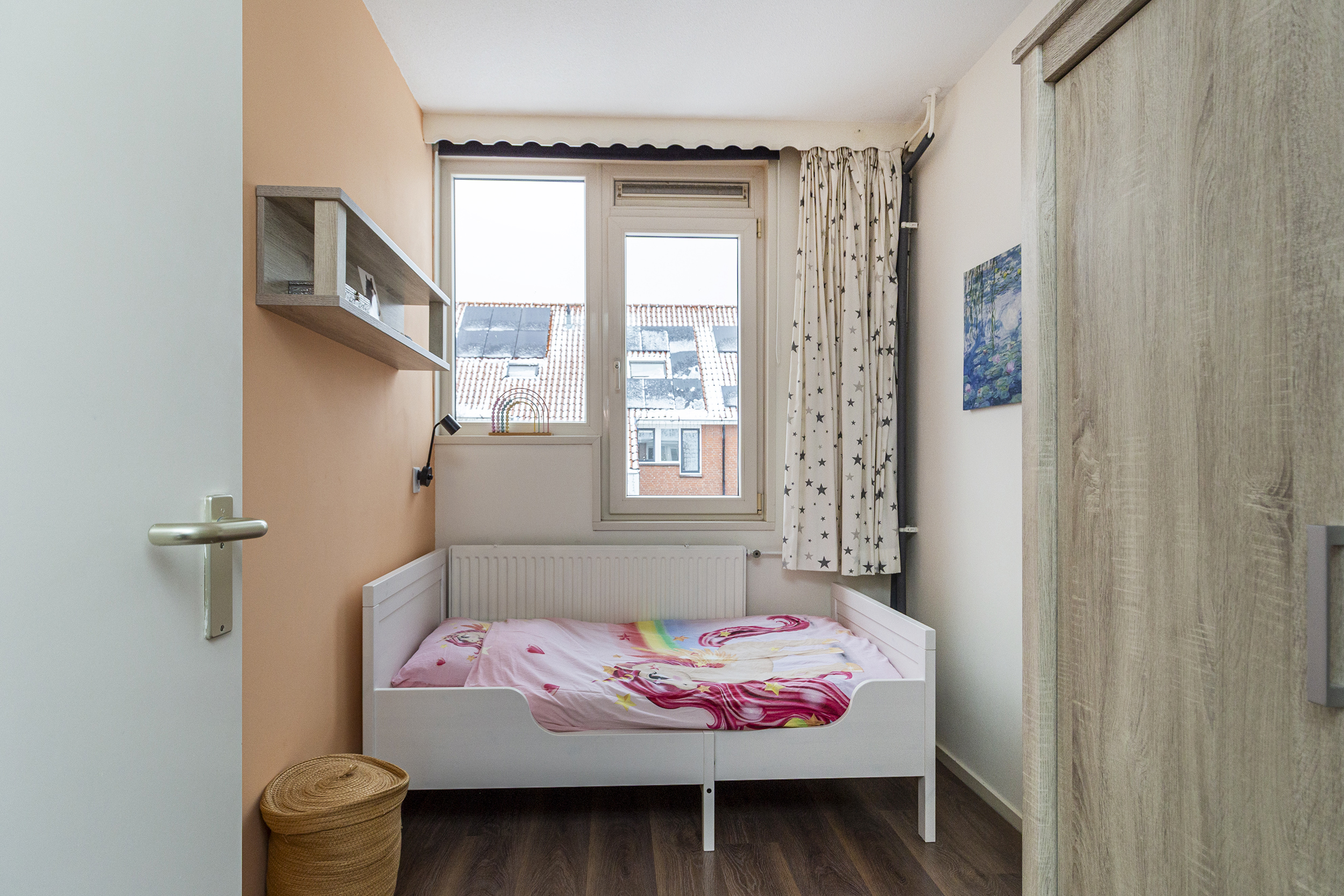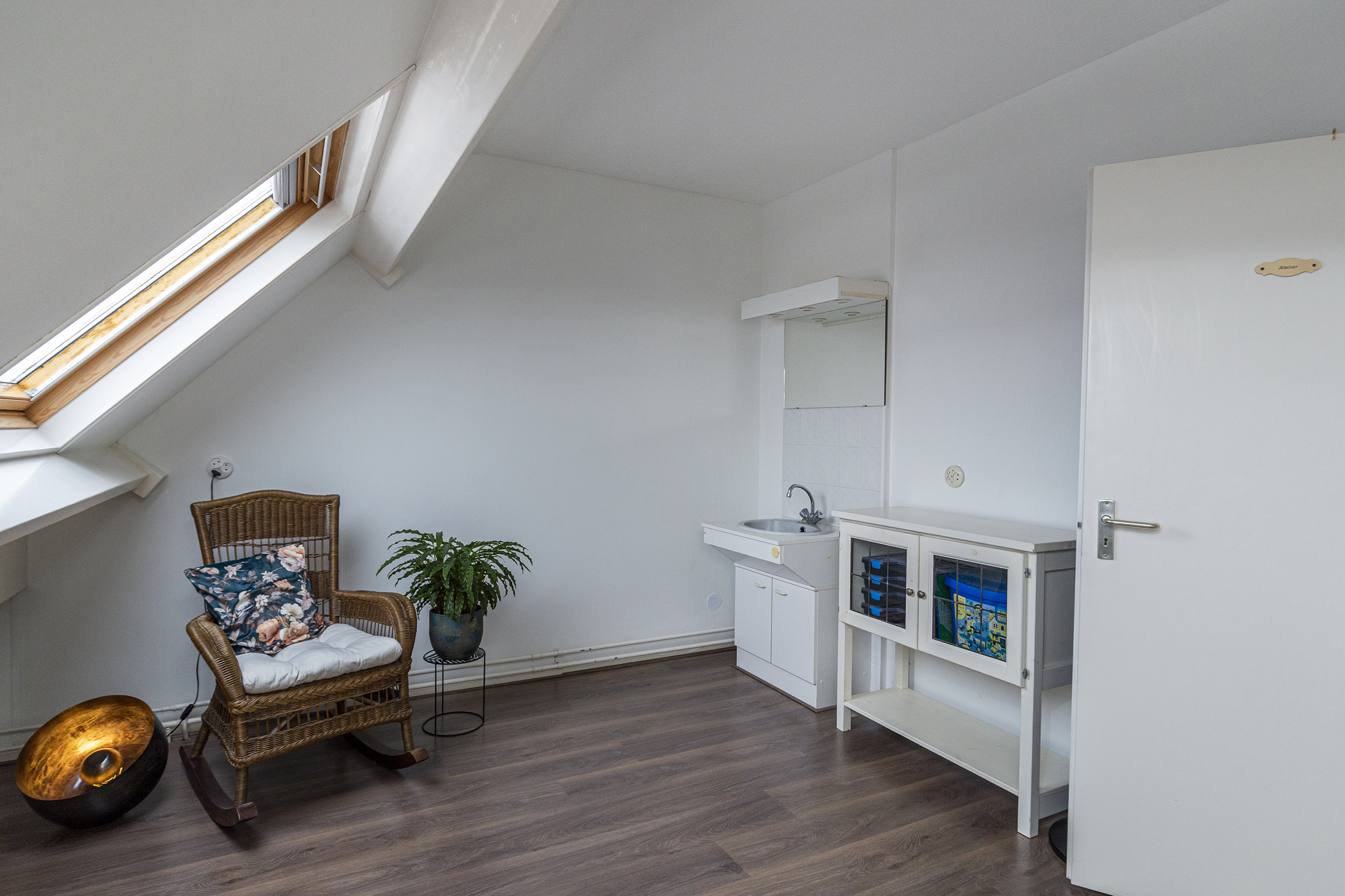 De tweede verdieping beschikt over een grote overloop met berging, waar de wasmachine en droger kunnen worden geplaatst. Tevens bevindt zich hier een technische ruimte waar de aansluitingen van de c.v.-combiketel en de opstelplaats van de mechanische ventilatie unit zijn geïnstalleerd. Vanaf de overloop is de bergvliering bereikbaar middels een vlizotrap. De vierde slaapkamer, gelegen aan de achterzijde van de woning, is voorzien van een wastafel, twee Velux dakramen die zorgen voor veel natuurlijk licht, en een ingebouwde kast, wat de kamer extra functionaliteit en comfort biedt.