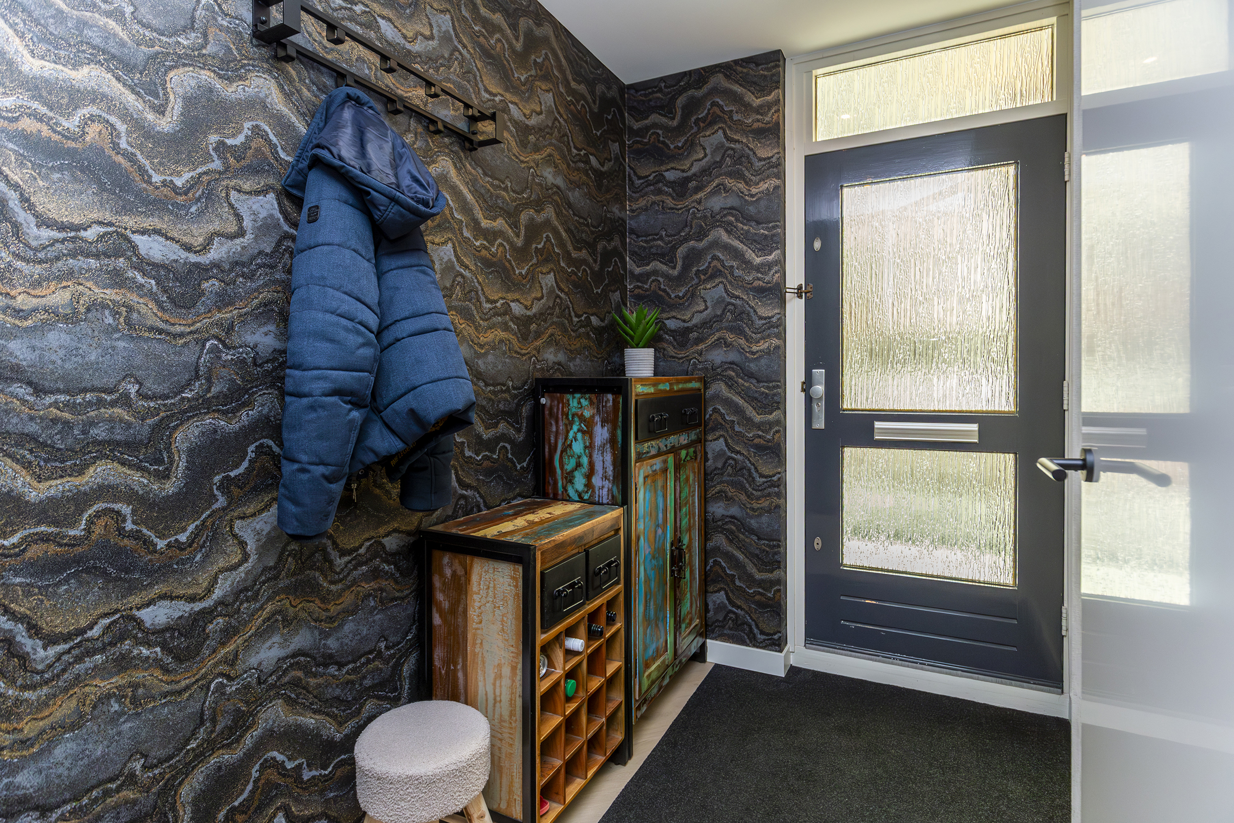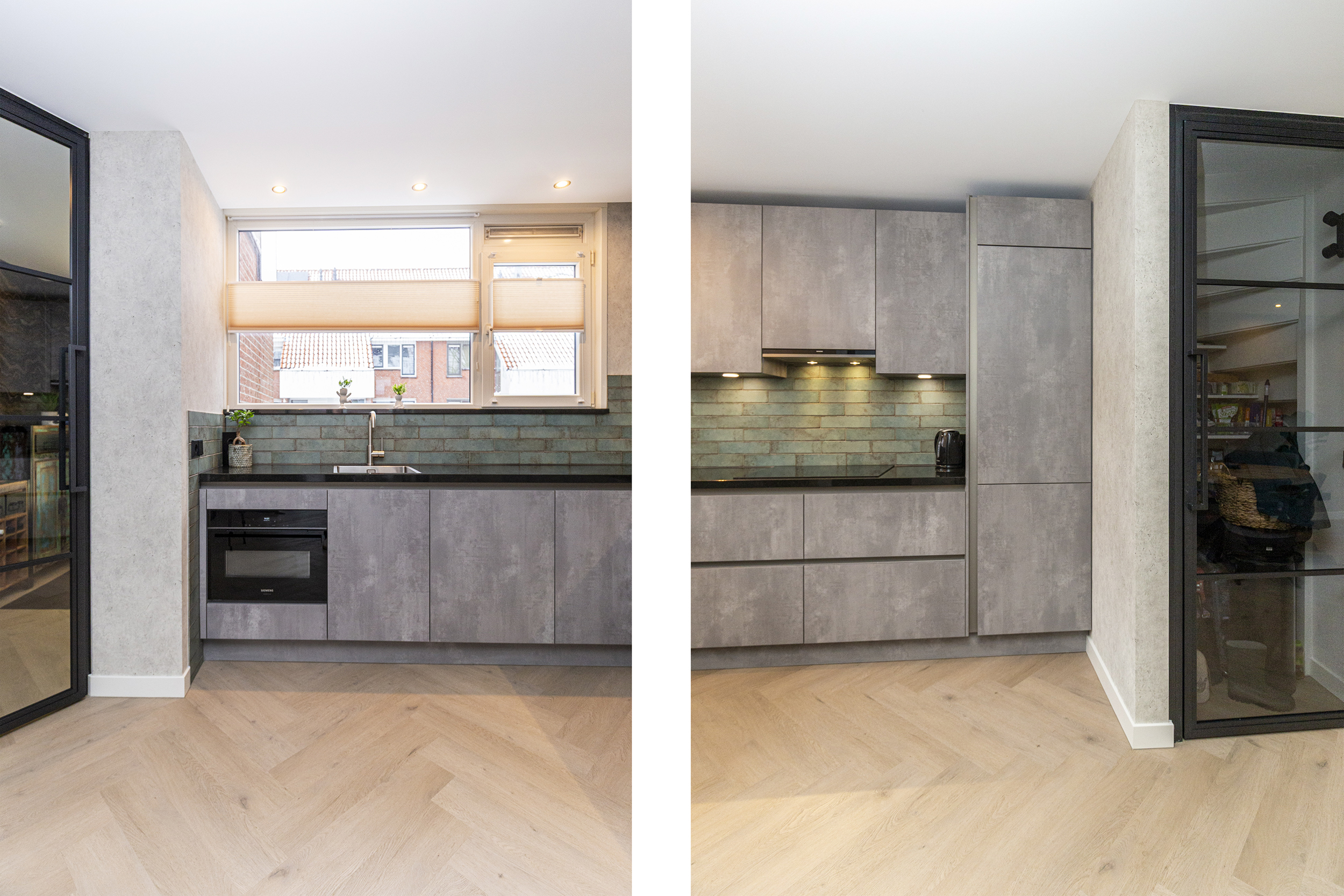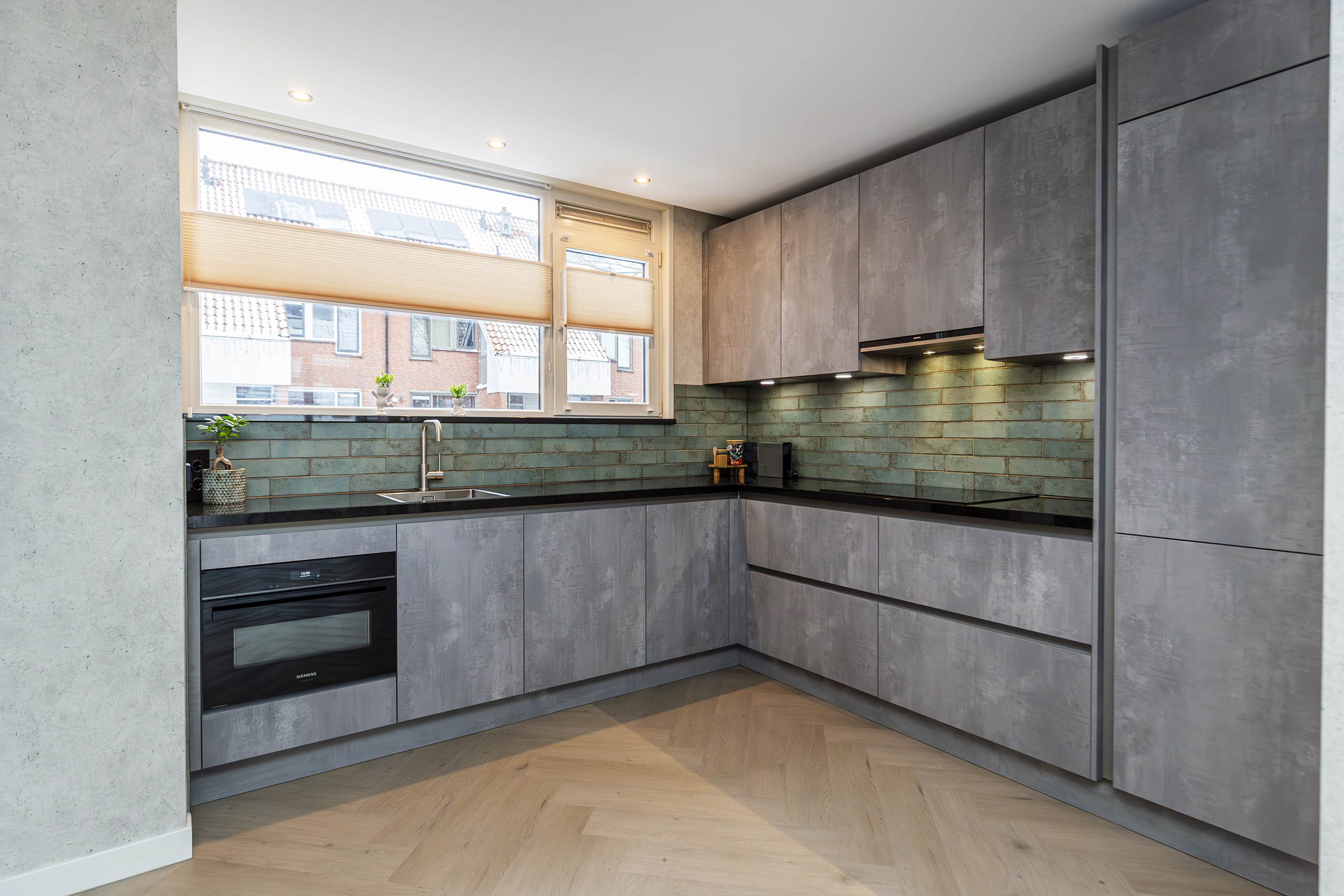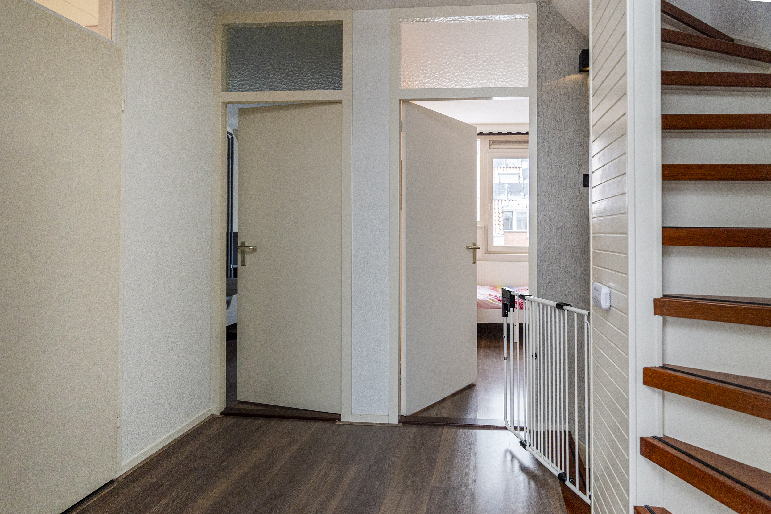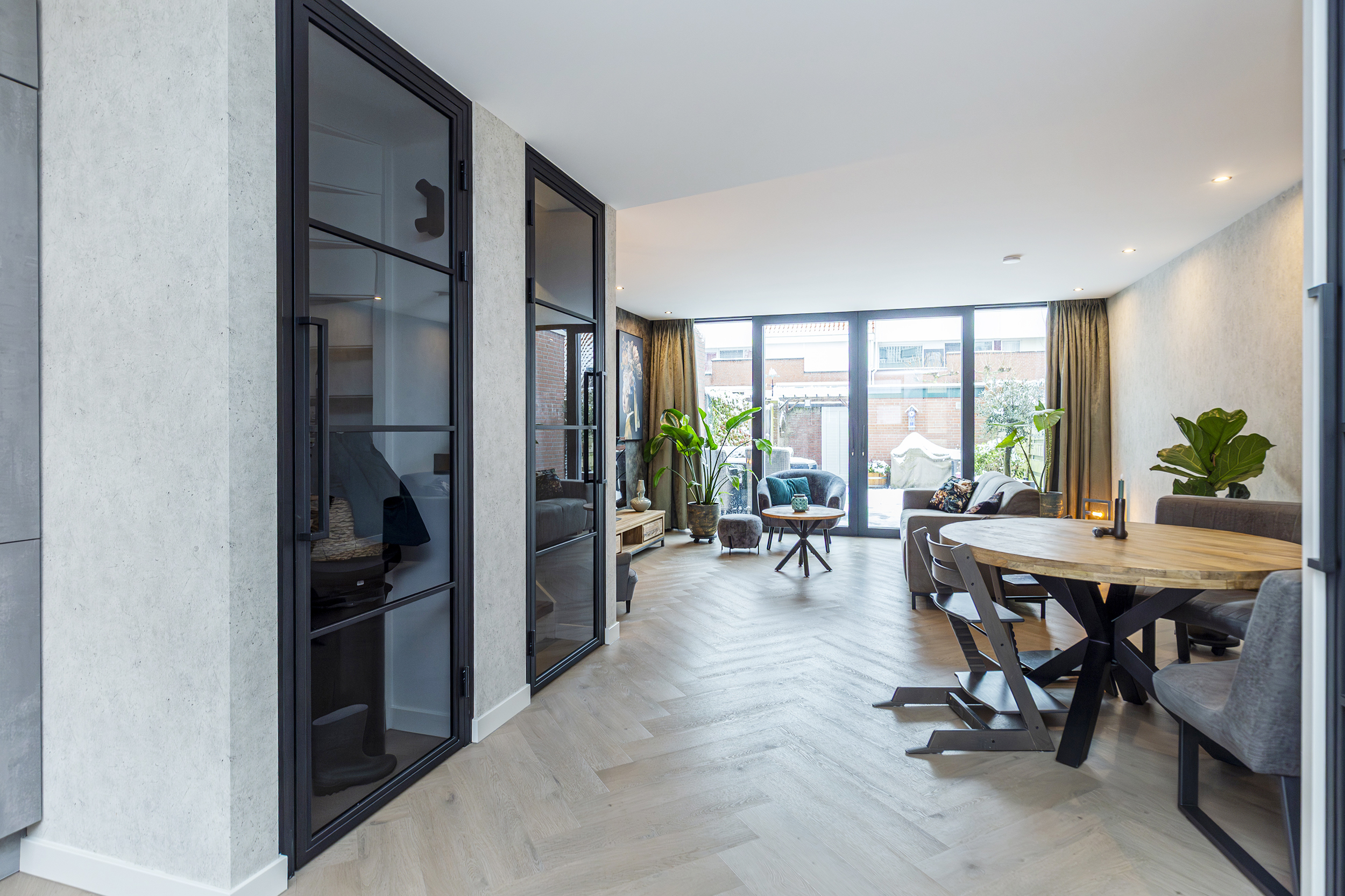 De begane grond van deze woning is in het najaar van 2024 grondig gerenoveerd en voorzien van hoogwaardige afwerkingen. De nieuwe, moderne keuken is uitgerust met inbouwapparatuur en biedt veel werkruimte. Verder is de vloer op de begane grond vervangen door een prachtige PVC vissengraatvloer, die samen met de vloerverwarming zorgt voor zowel luxe als comfort. Alle binnendeuren zijn vervangen door stijlvolle stalen deuren met glas, wat een industriële uitstraling geeft aan de ruimte. Het verlaagde plafond is voorzien van ingebouwde spots, wat zorgt voor een strakke, moderne sfeer. De grote glazen achterpui met triple glas en aluminium kozijnen biedt niet alleen veel daglicht, maar zorgt ook voor minder warmteverlies, wat bijdraagt aan de energiezuinigheid van de woning. Vanuit de lichte woonkamer heb je toegang tot de onderhoudsvriendelijke achtertuin, een fijne plek om te ontspannen. Achterin de tuin staat een praktische berging en is er een achterom. De trap naar de eerste verdieping is toegankelijk via een smaakvolle stalen deur, die de industriële uitstraling van de begane grond verder versterkt.