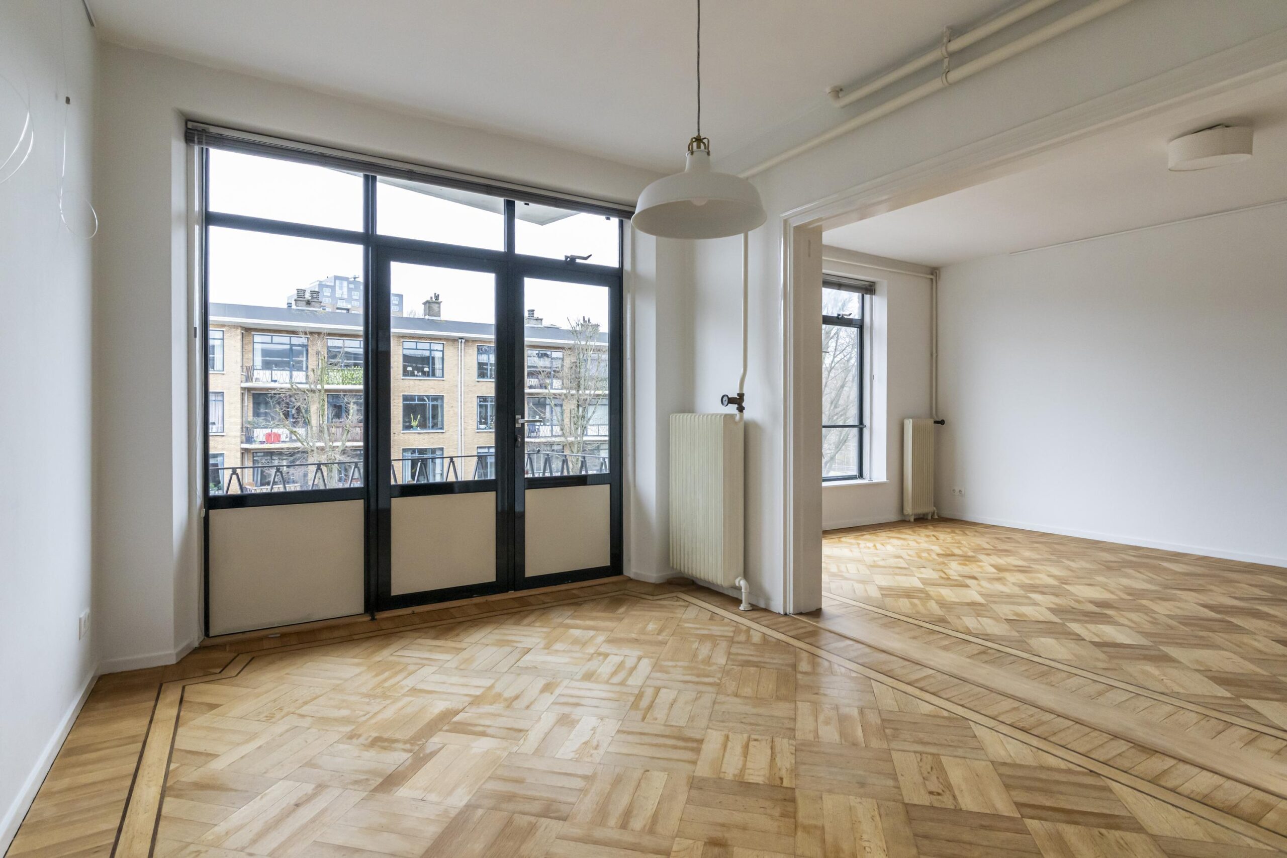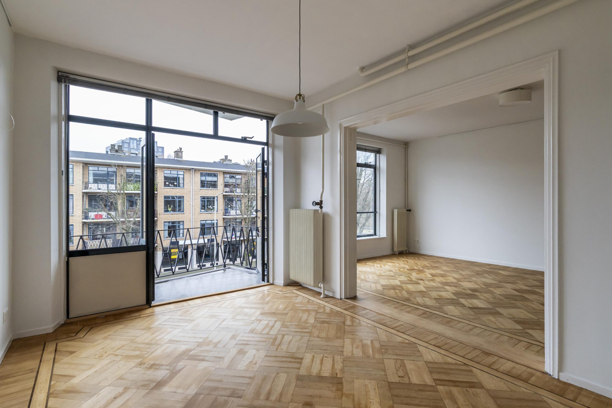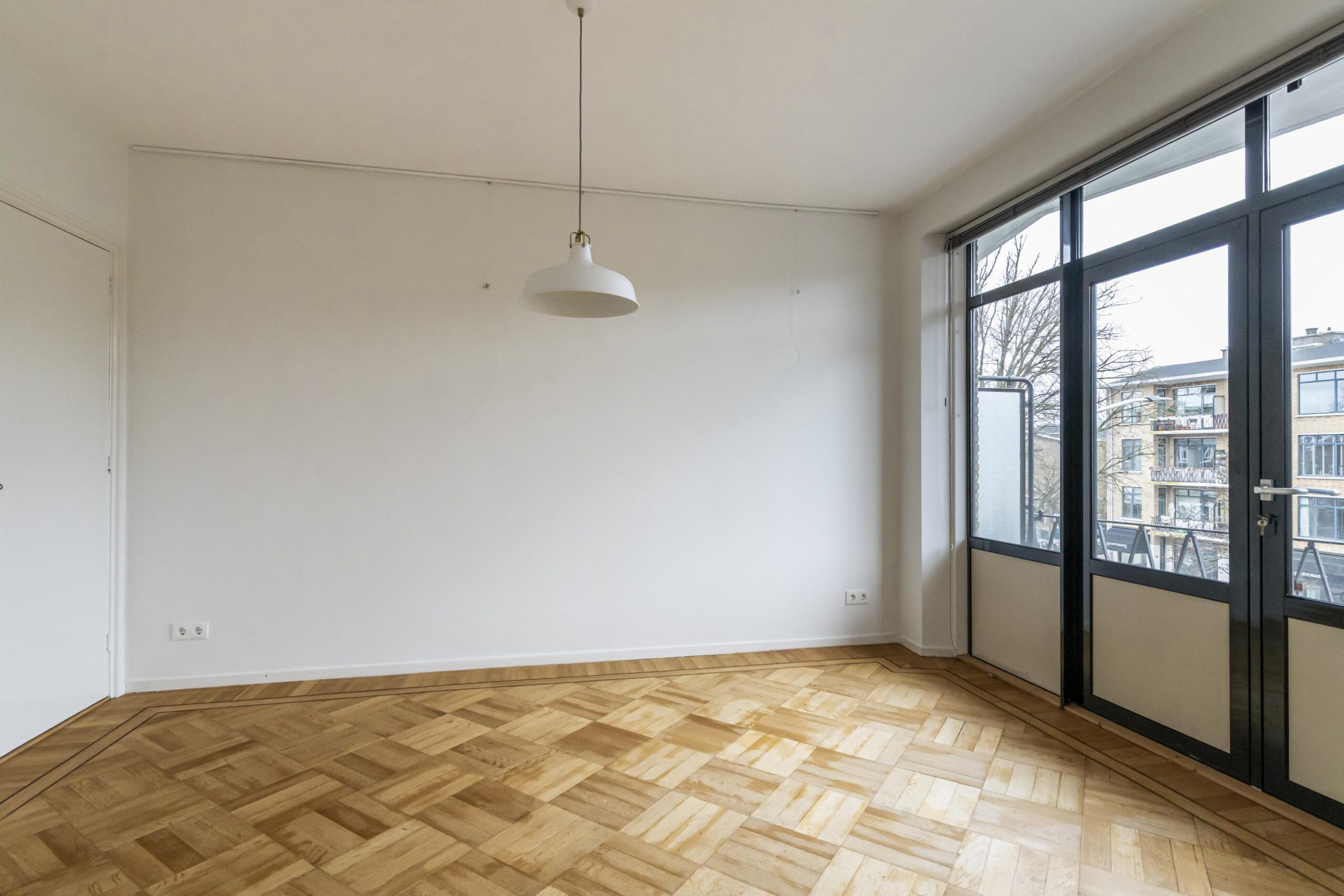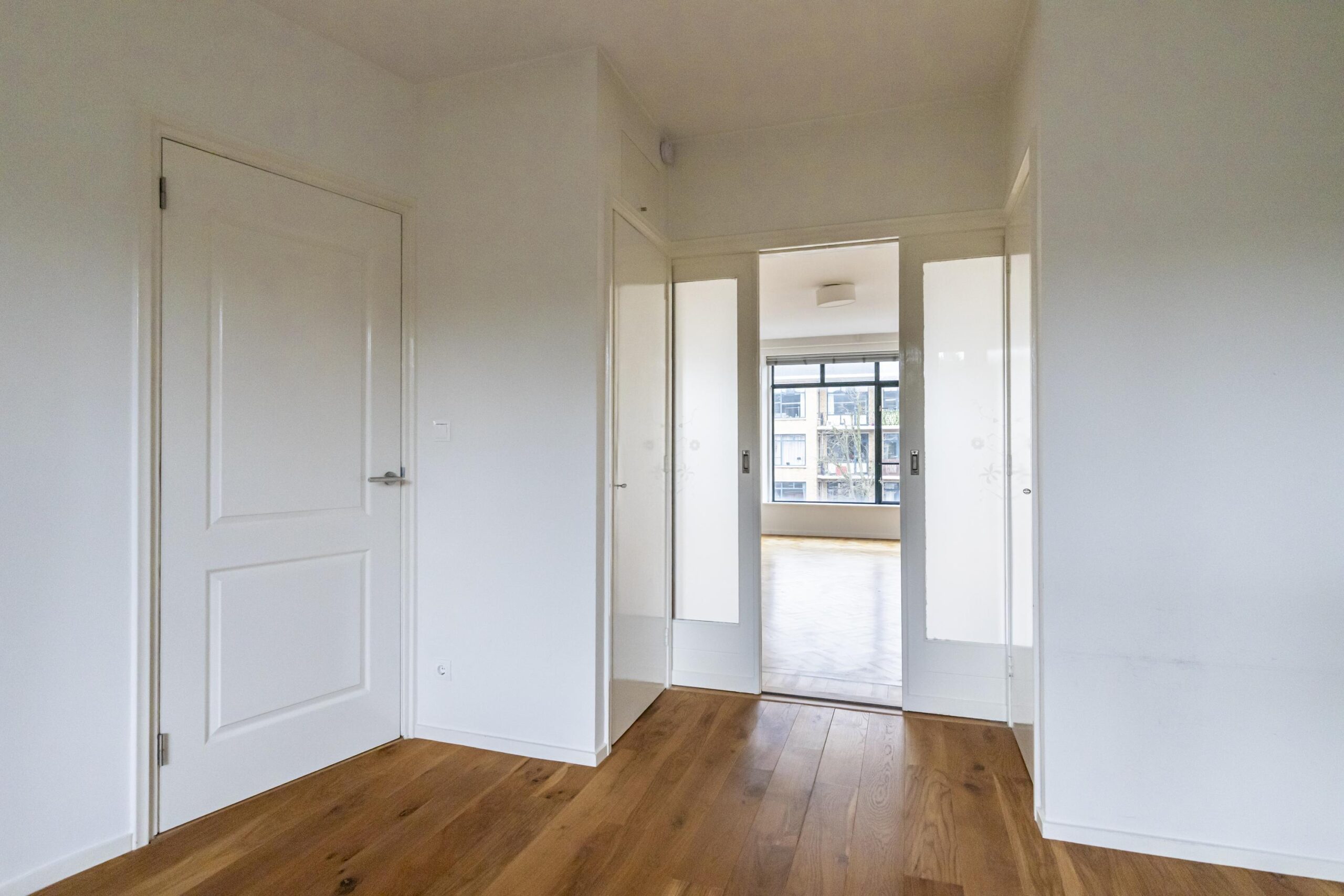 De woonkamer bevindt zich aan de voorzijde van het appartement en staat in open verbinding met de eetkamer. Dankzij de royale opzet en grote raampartijen is dit een lichte en aangename leefruimte. Vanuit de woon-/eetkamer geven openslaande deuren toegang tot het balkon, dat gunstig is gelegen op het zuidwesten en daardoor volop zon biedt.
