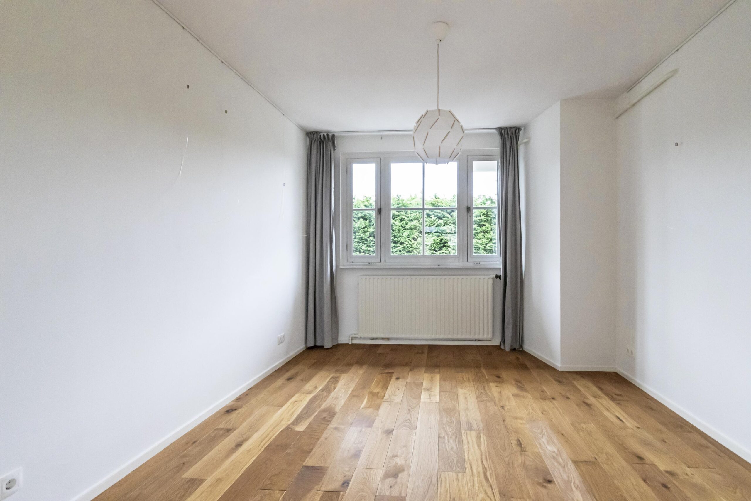 De riante slaapkamer is aan de achterzijde van het appartement gelegen en voorzien van vaste inbouwkasten, wat zorgt voor veel praktische bergruimte.