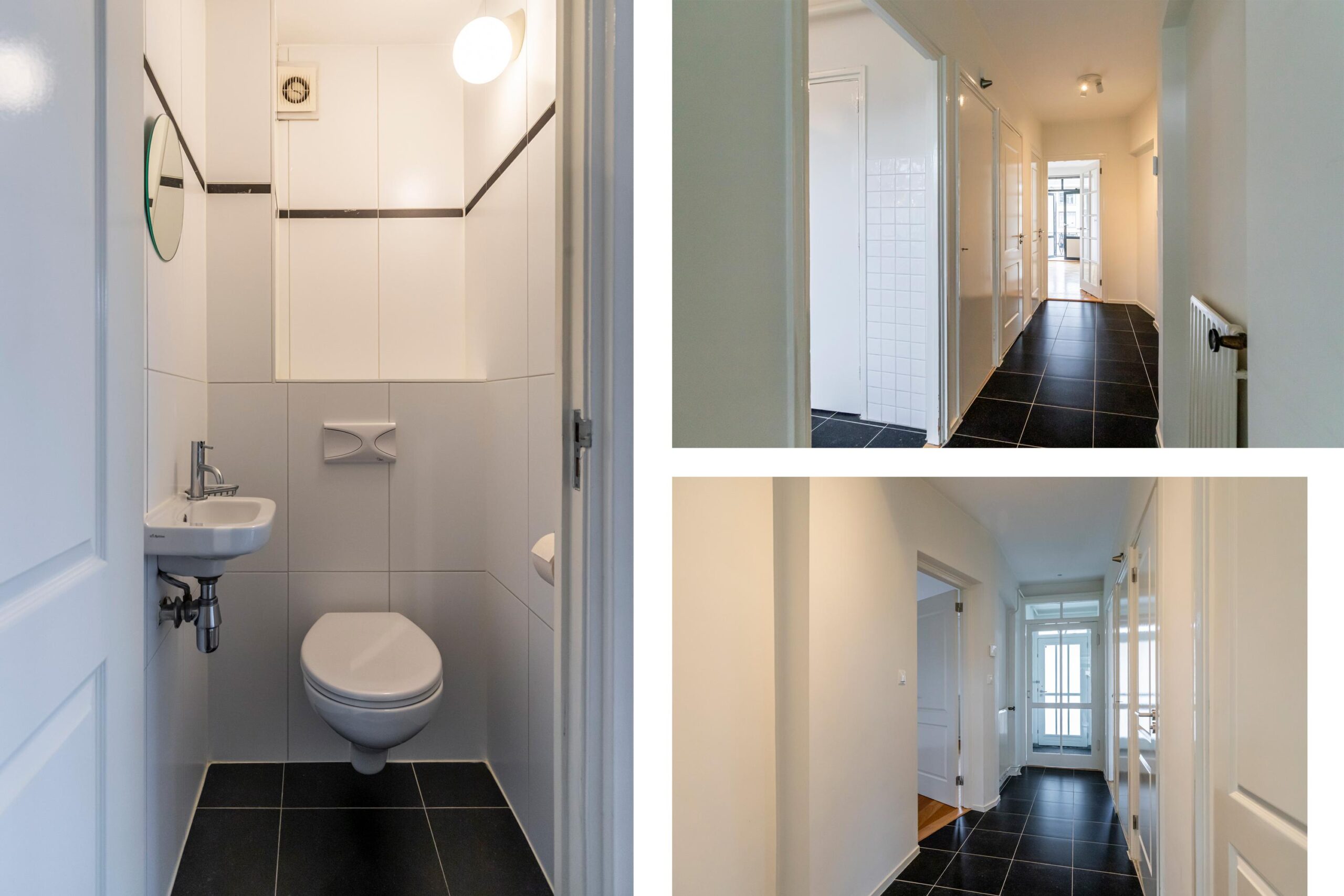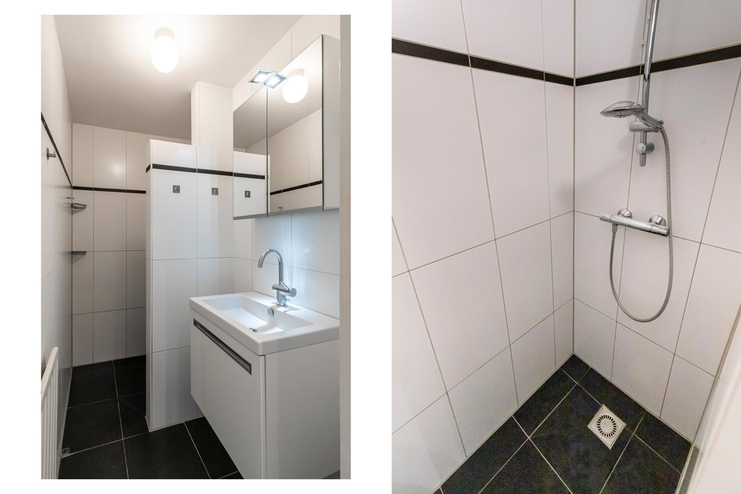 Vanuit de hal zijn het separate toilet en de moderne badkamer bereikbaar. De badkamer is strak afgewerkt en beschikt over een ruime inloopdouche en een wastafel.