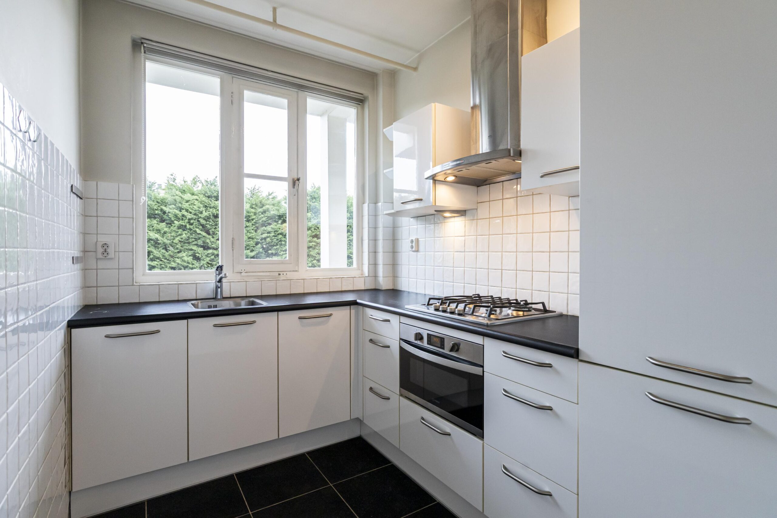 De keuken is separaat gelegen en praktisch ingericht. Deze moderne keuken is voorzien van diverse inbouwapparatuur en biedt voldoende werk- en bergruimte. Vanuit de keuken is tevens de vaste kast met aansluiting voor de wasmachine bereikbaar.