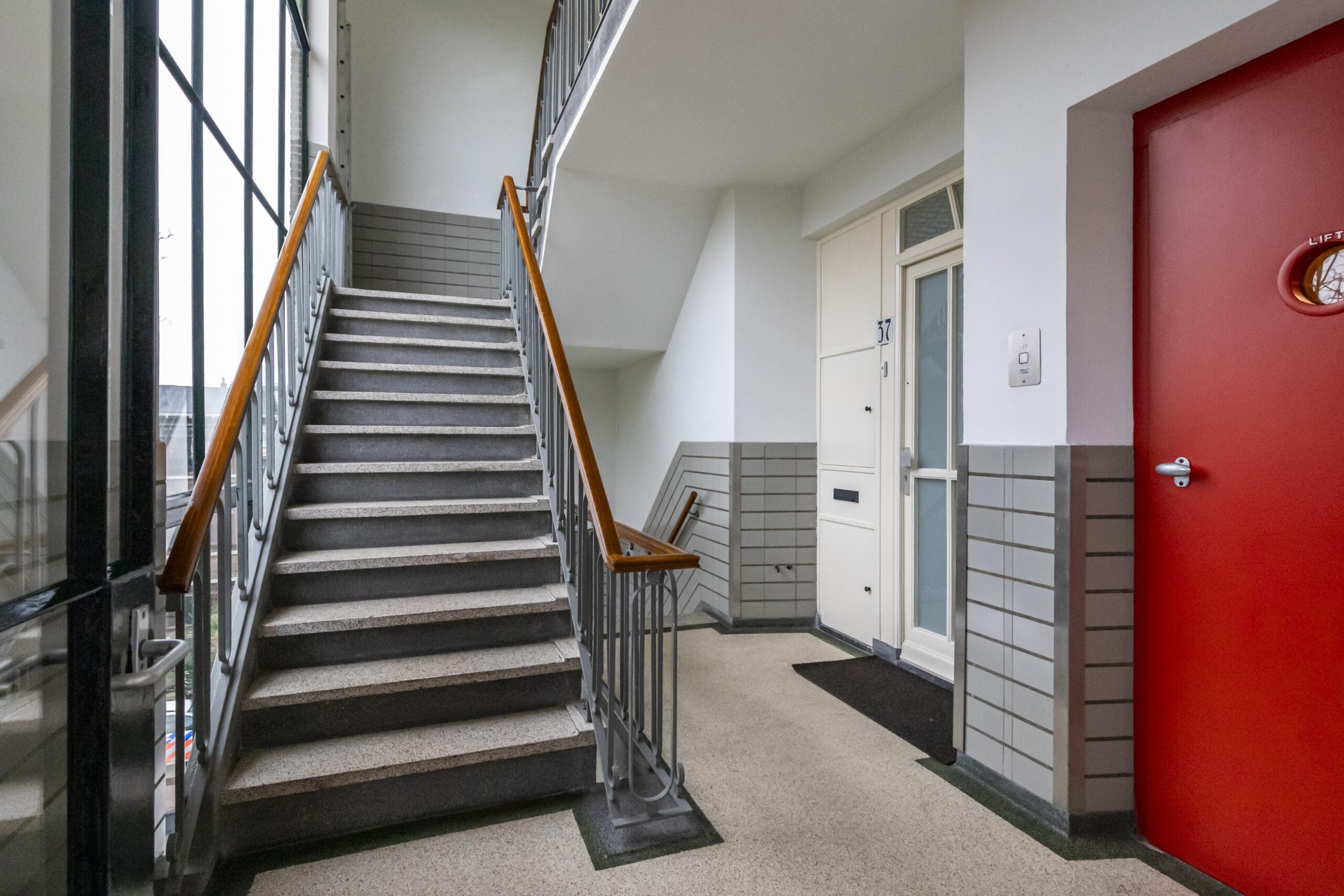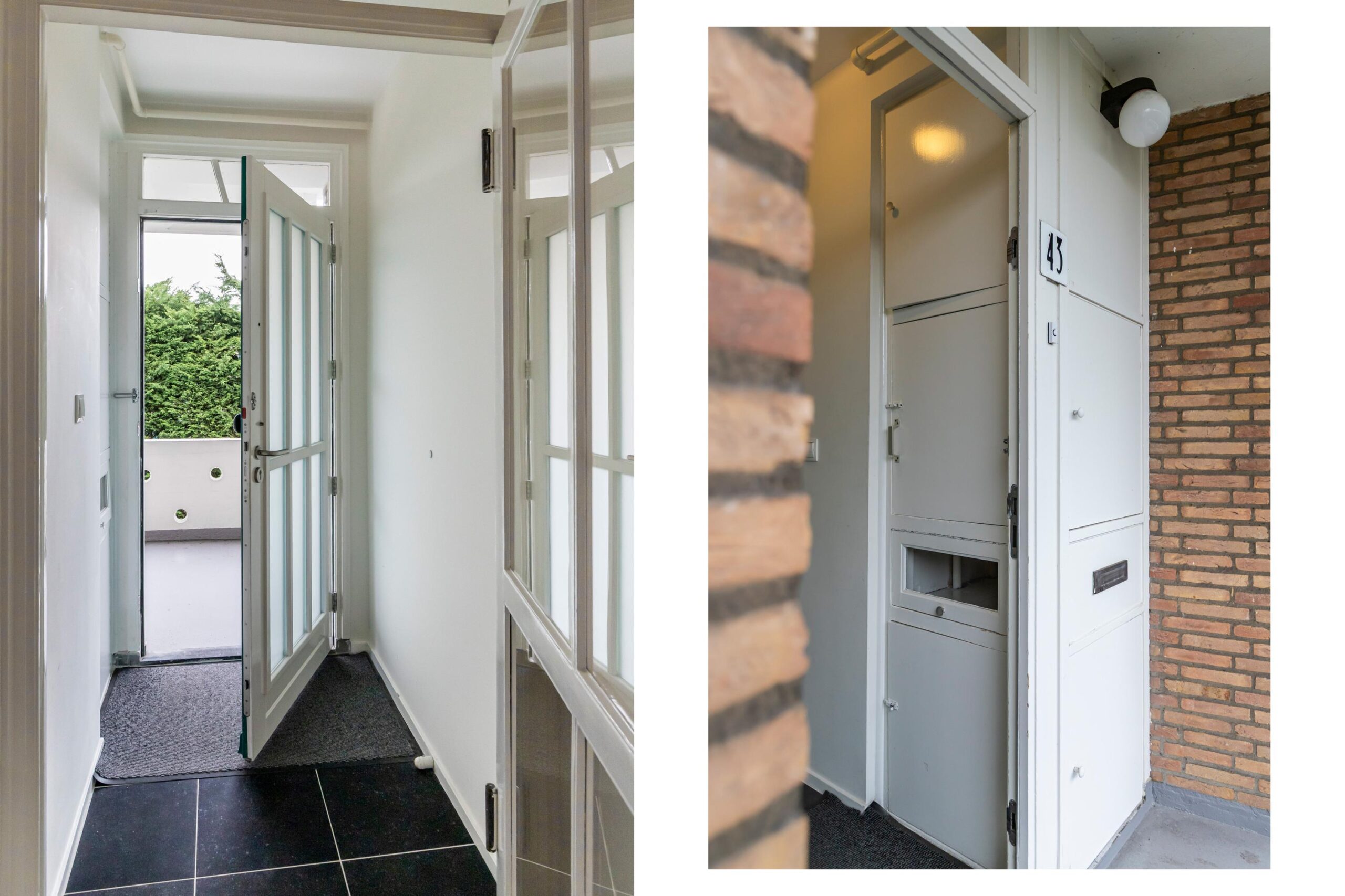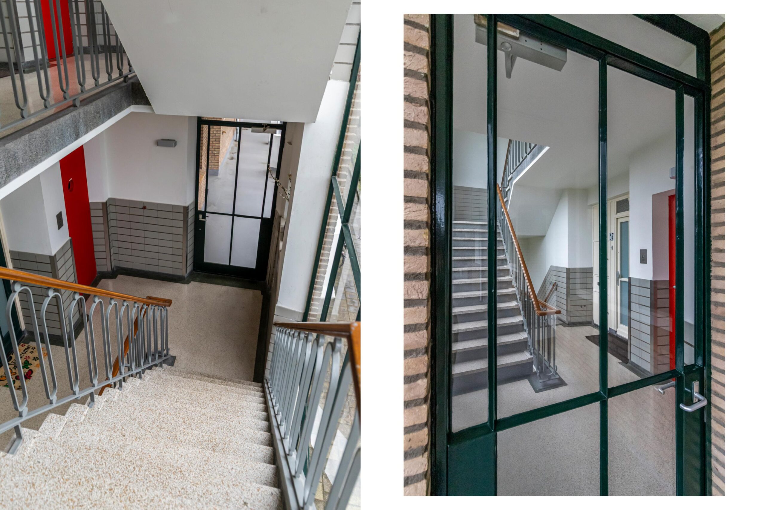 Via de gezamenlijke entree met brievenbussen en bellentableau bereik je het appartement met de lift of het trappenhuis.