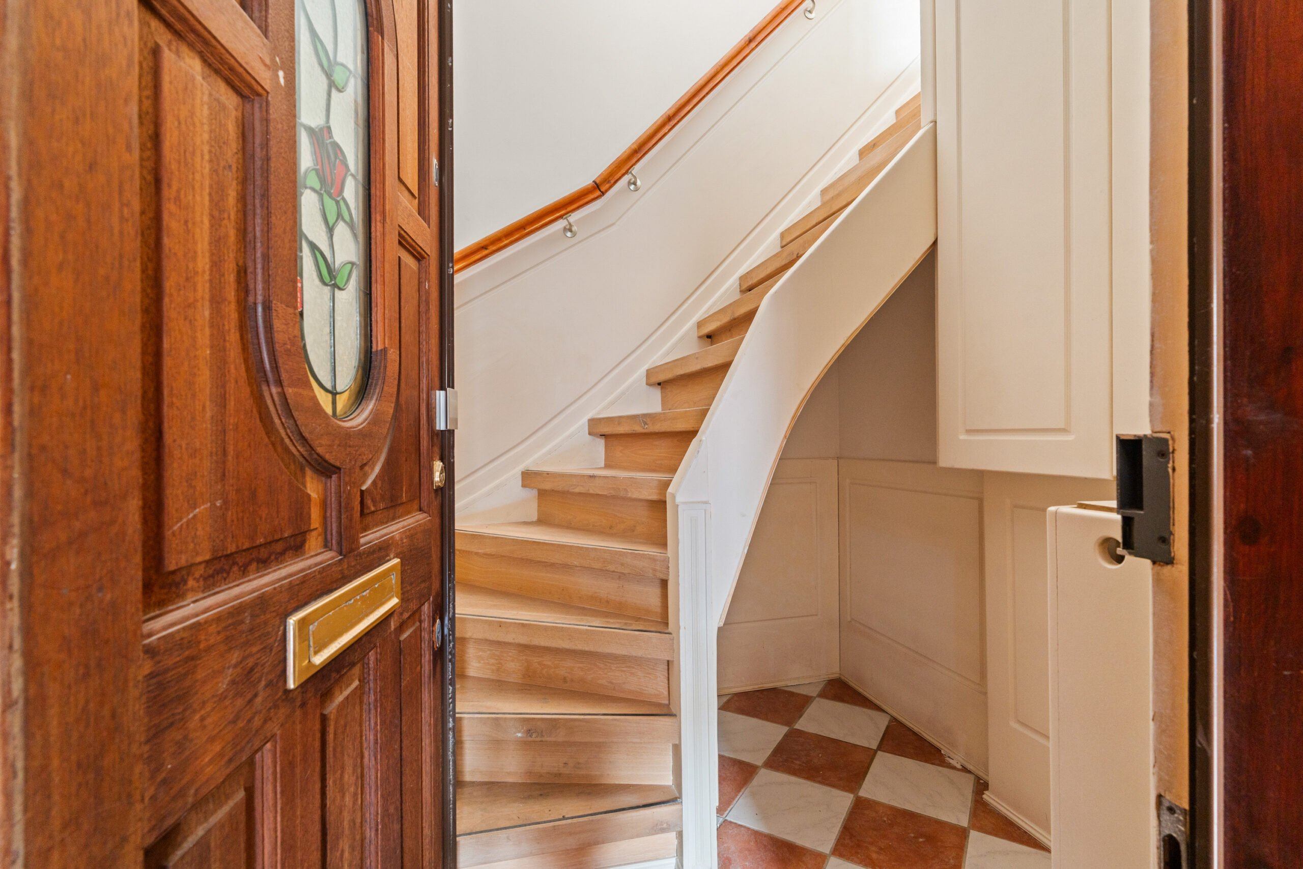 Via de entree op de eerste woonlaag bereik je via een de trap de tweede woonlaag waar het woongedeelte zich bevindt.