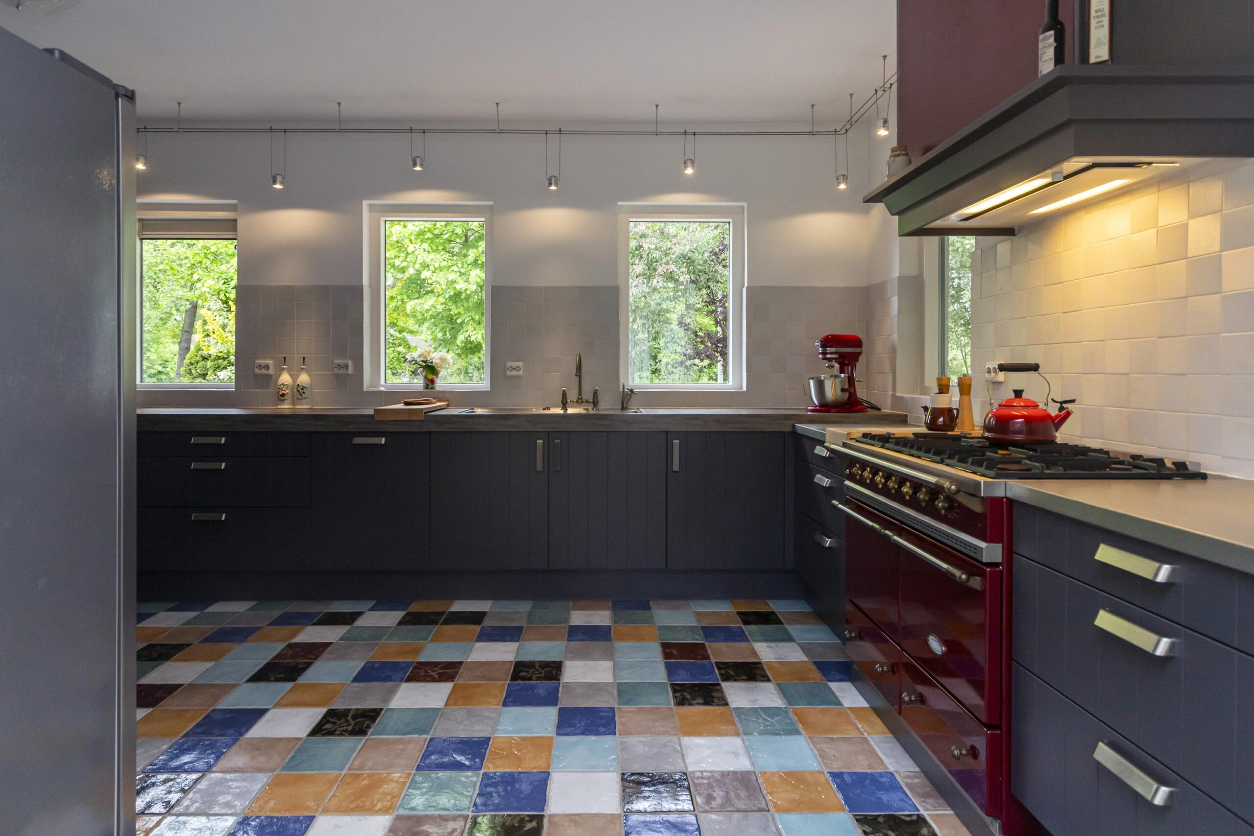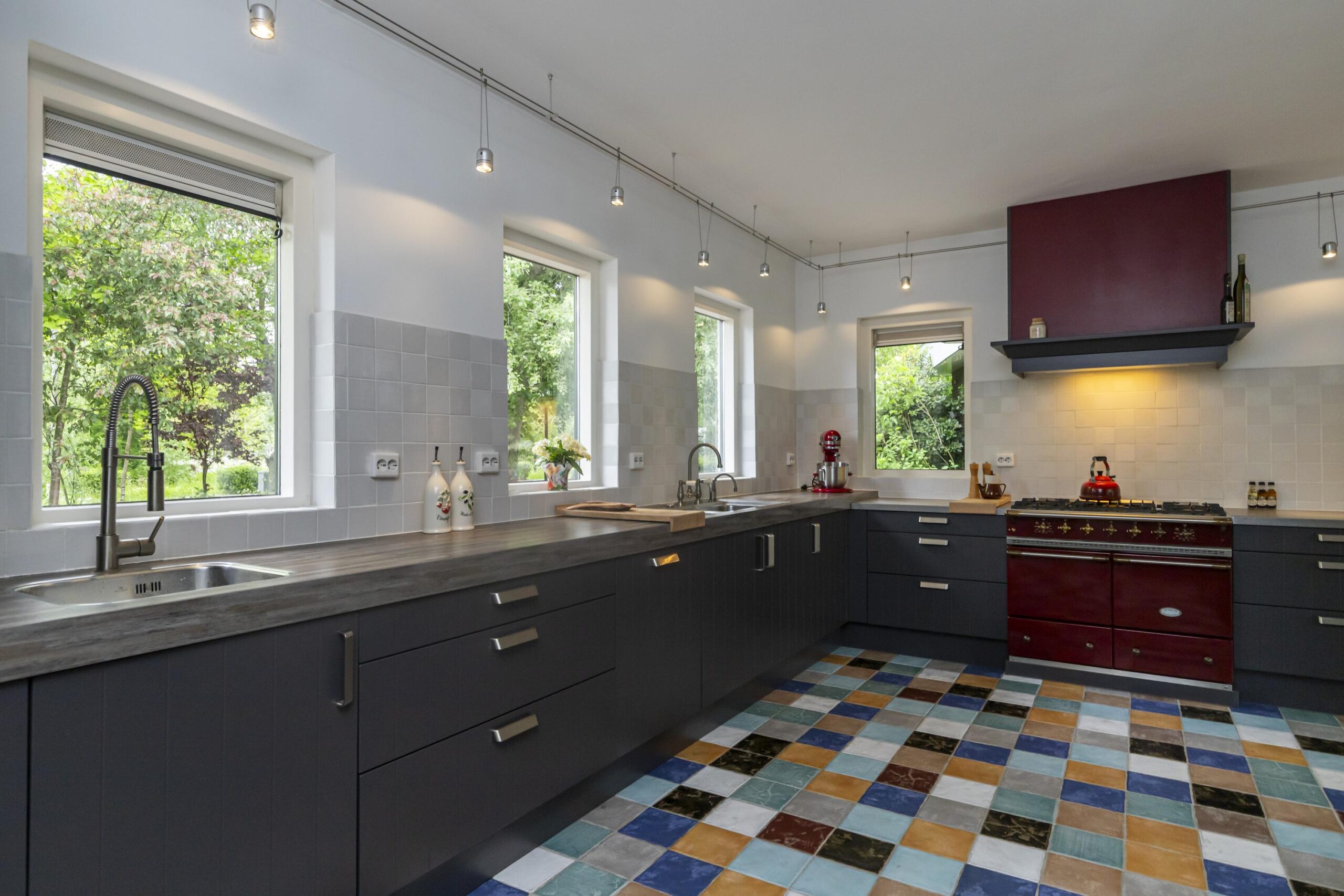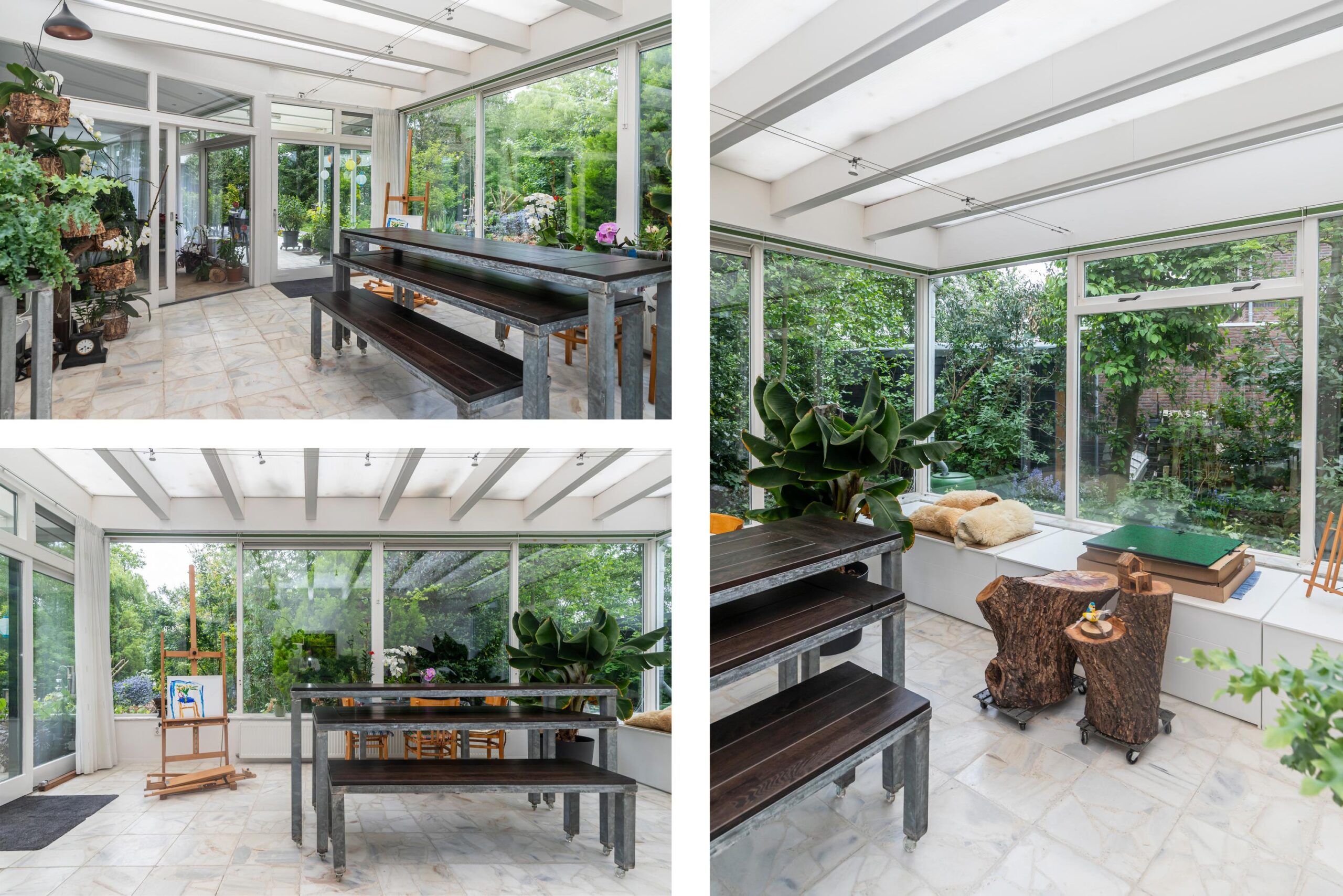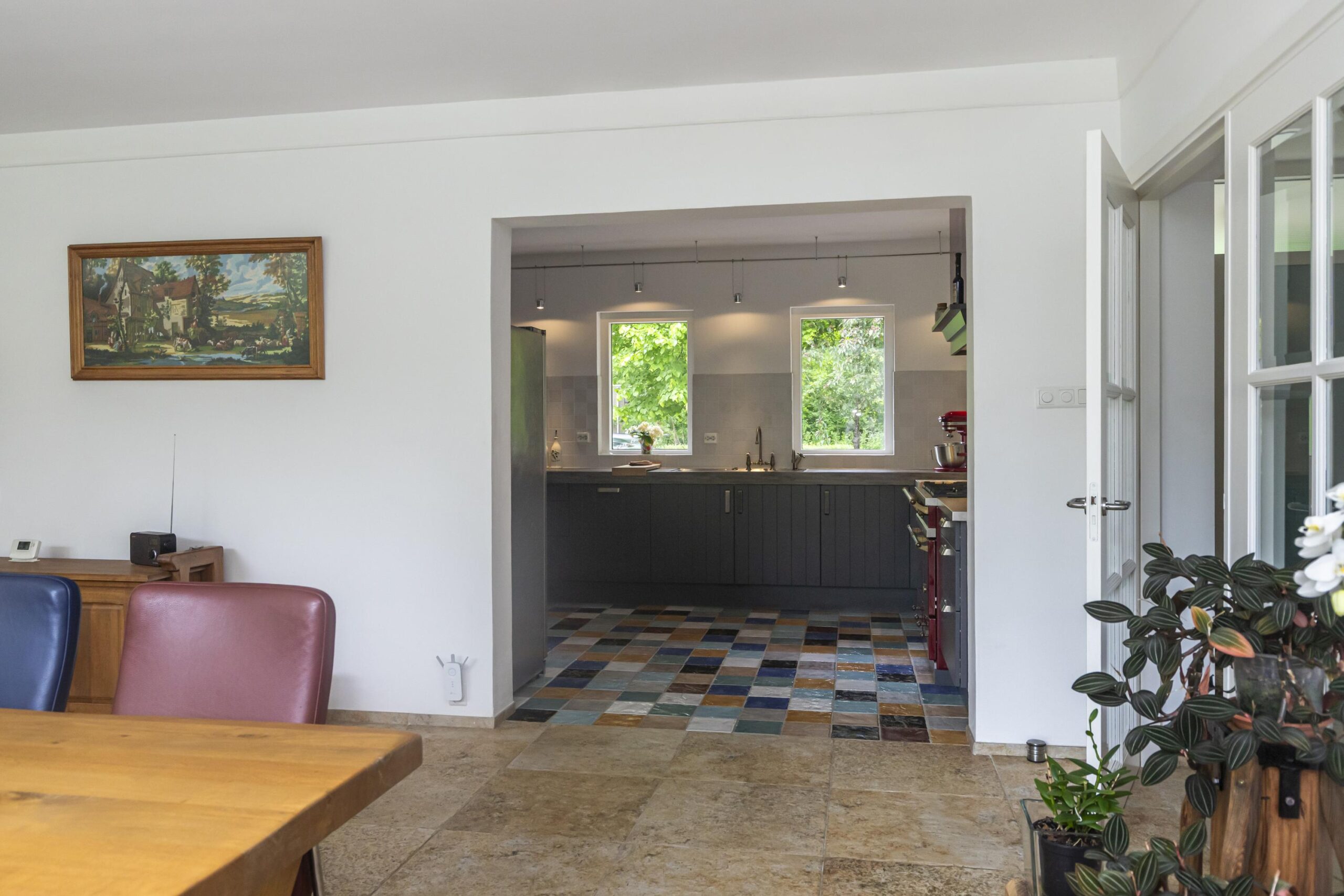Aansluitend aan de woonkamer bevindt zich een serre, die veel mogelijkheden biedt. Deze lichte ruimte kan perfect dienen als atelier, hobbyruimte of gewoon als een rustige plek om te ontspannen en van de tuin te genieten. De woonkeuken met bijkeuken is van alle gemakken voorzien en biedt voldoende ruimte voor gezellige diners voor te bereiden.