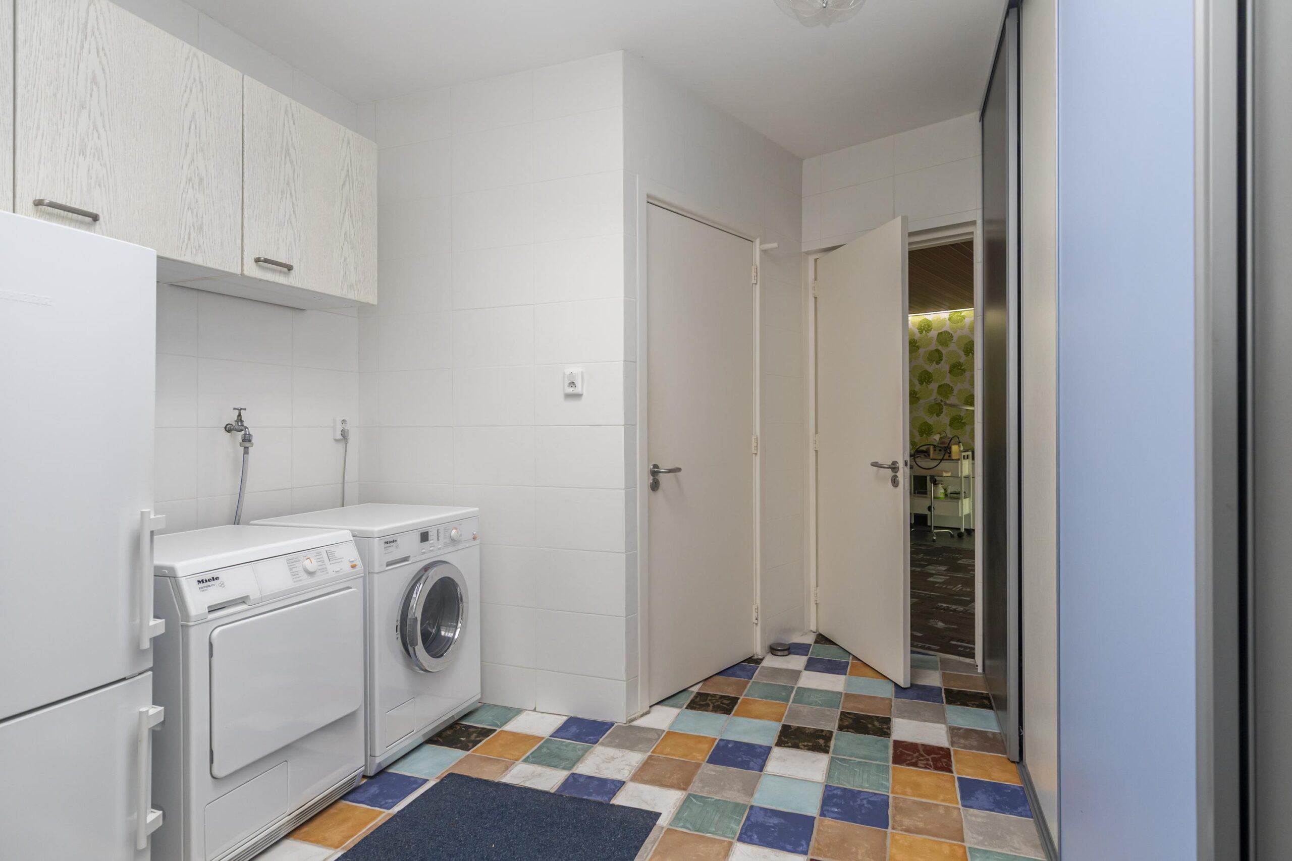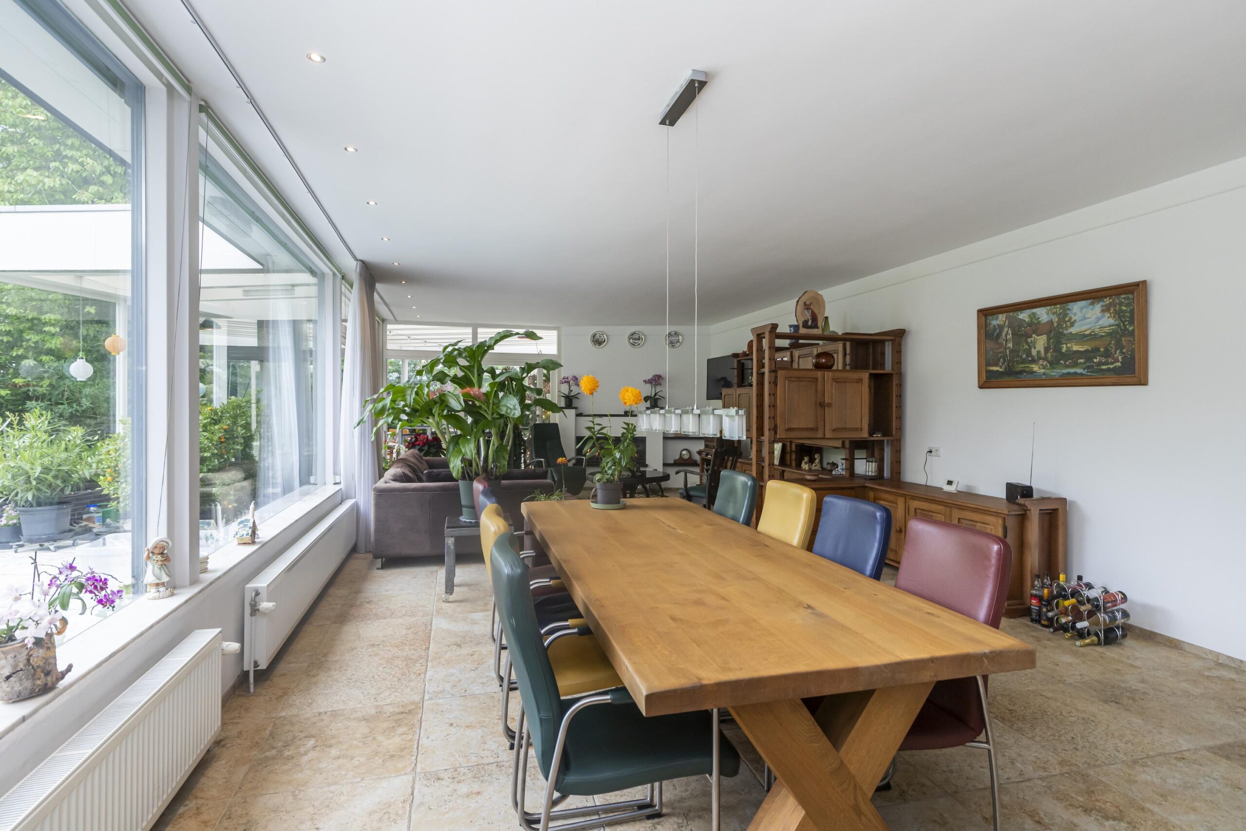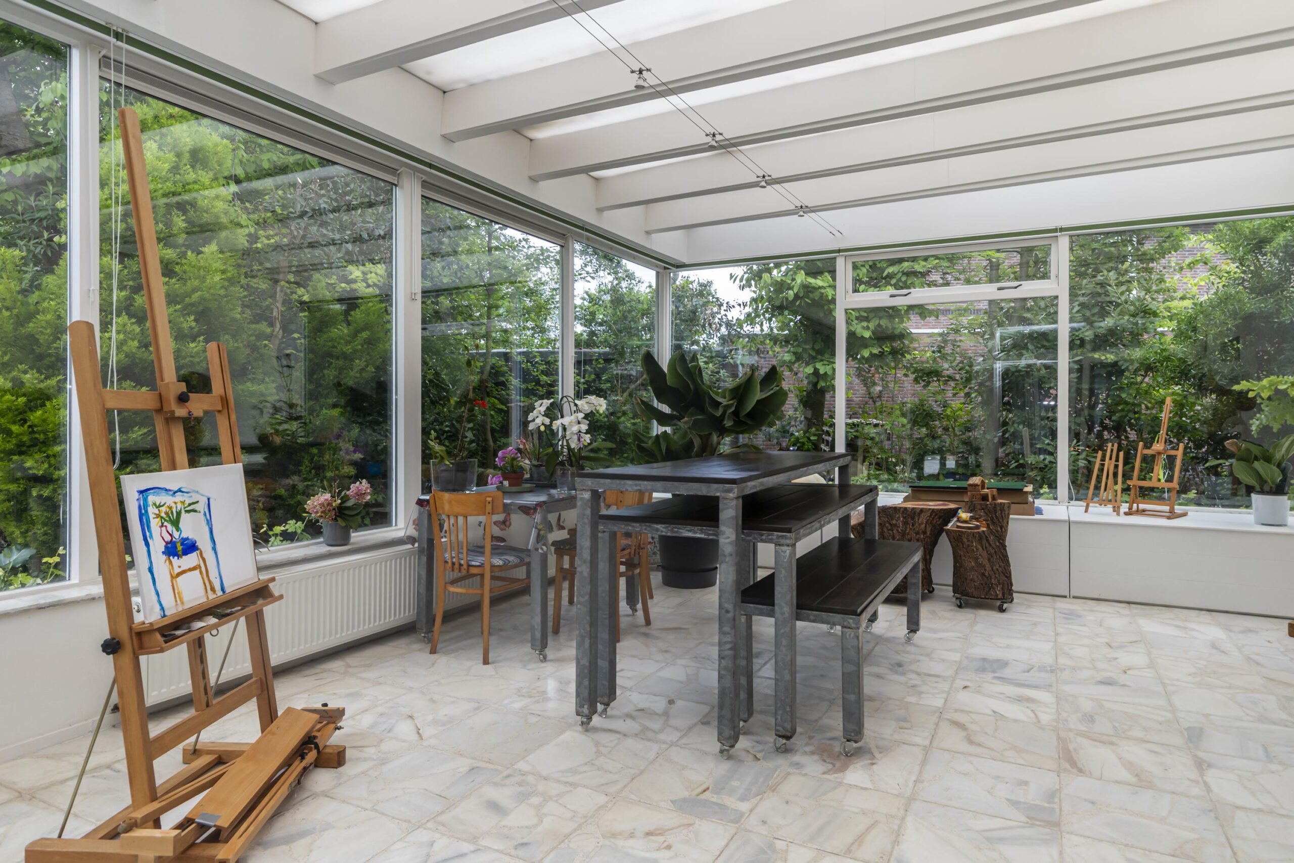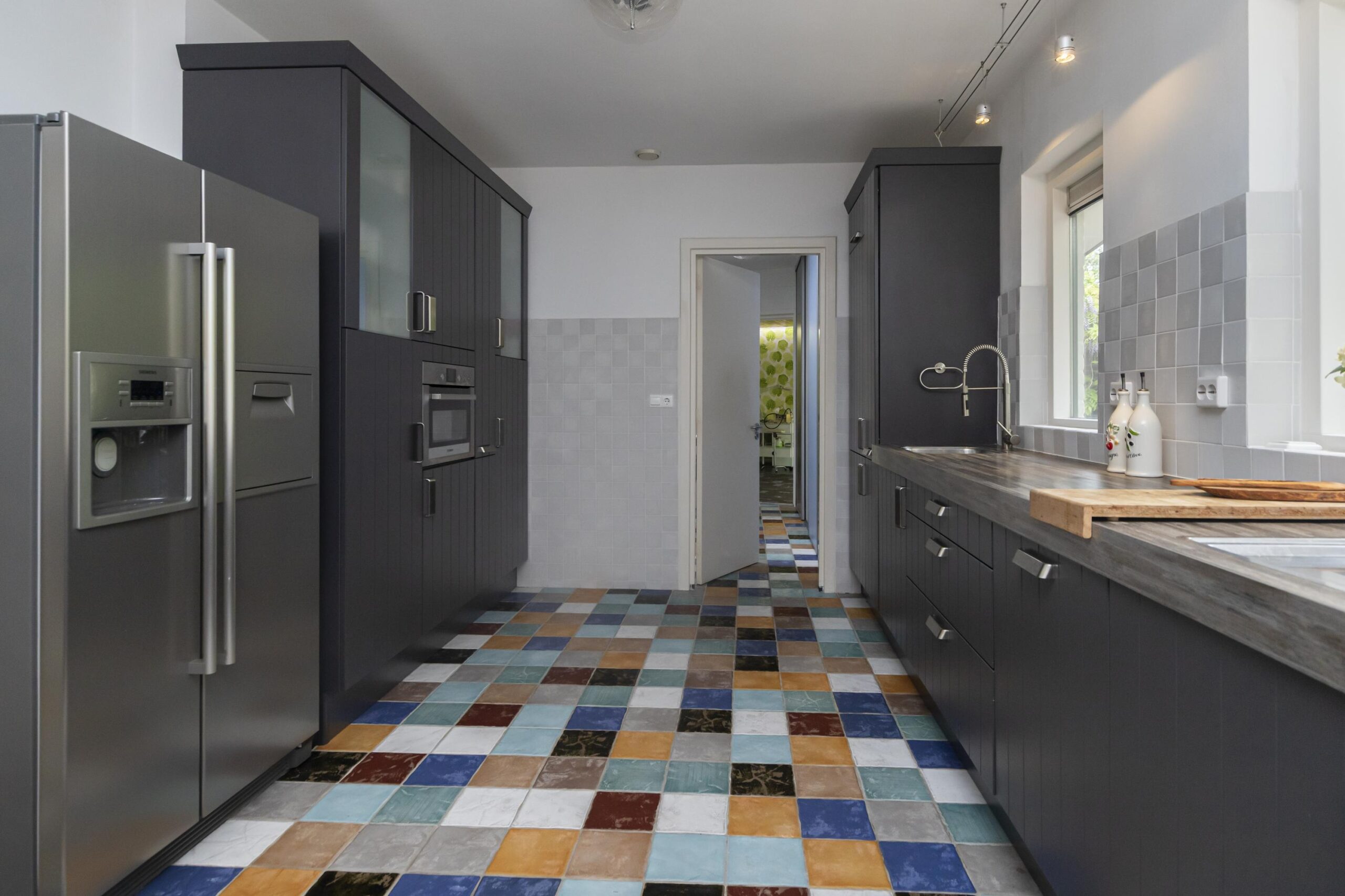 Aansluitend aan de woonkamer bevindt zich een serre, die veel mogelijkheden biedt. Deze lichte ruimte kan perfect dienen als atelier, hobbyruimte of gewoon als een rustige plek om te ontspannen en van de tuin te genieten. De woonkeuken met bijkeuken is van alle gemakken voorzien en biedt voldoende ruimte voor gezellige diners voor te bereiden.