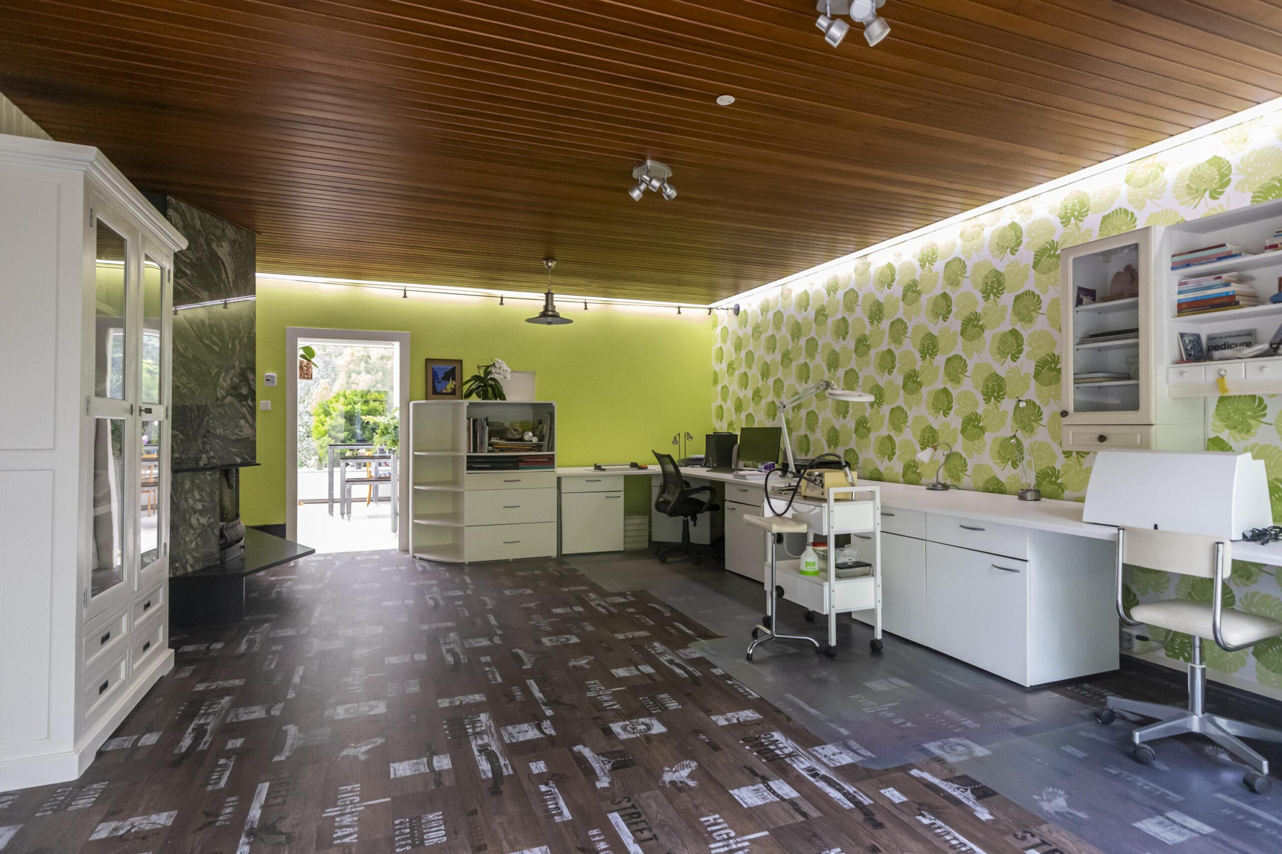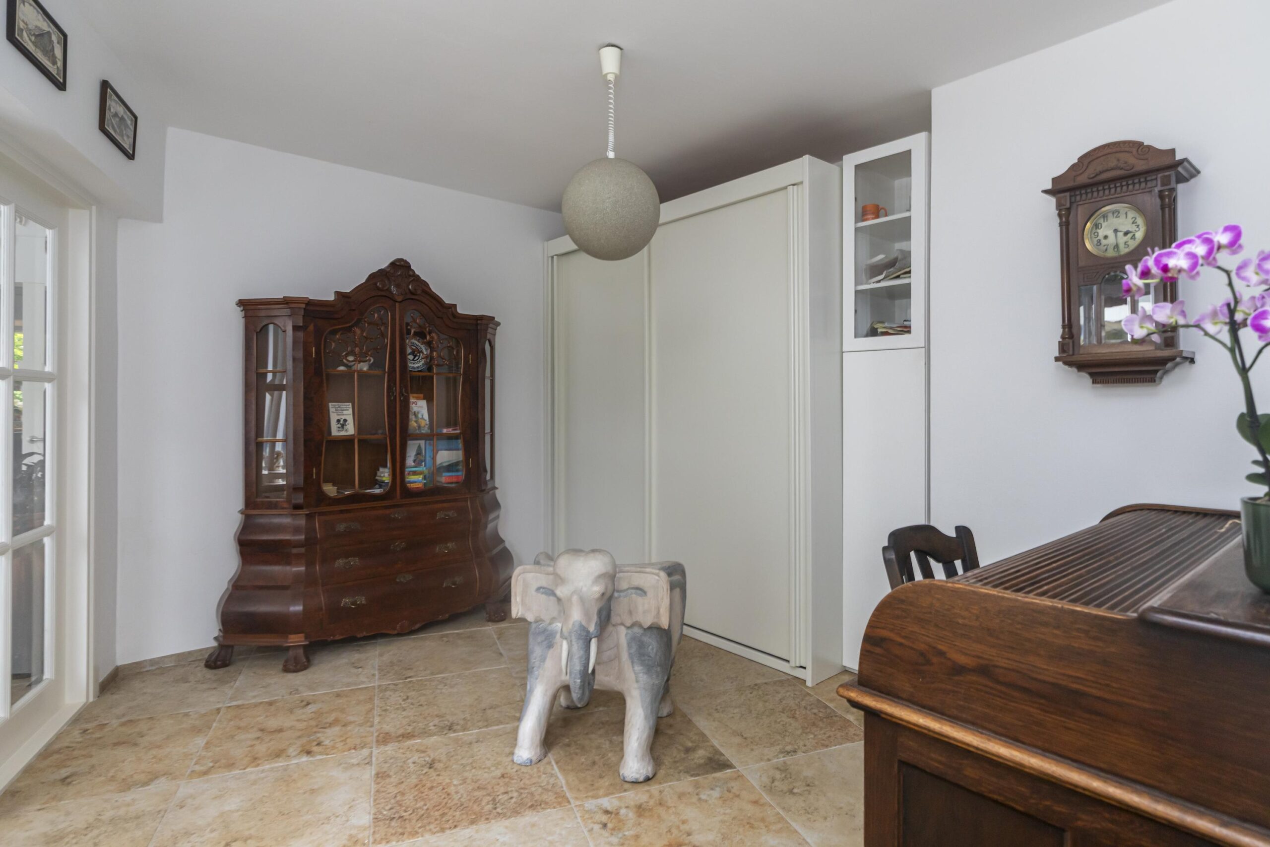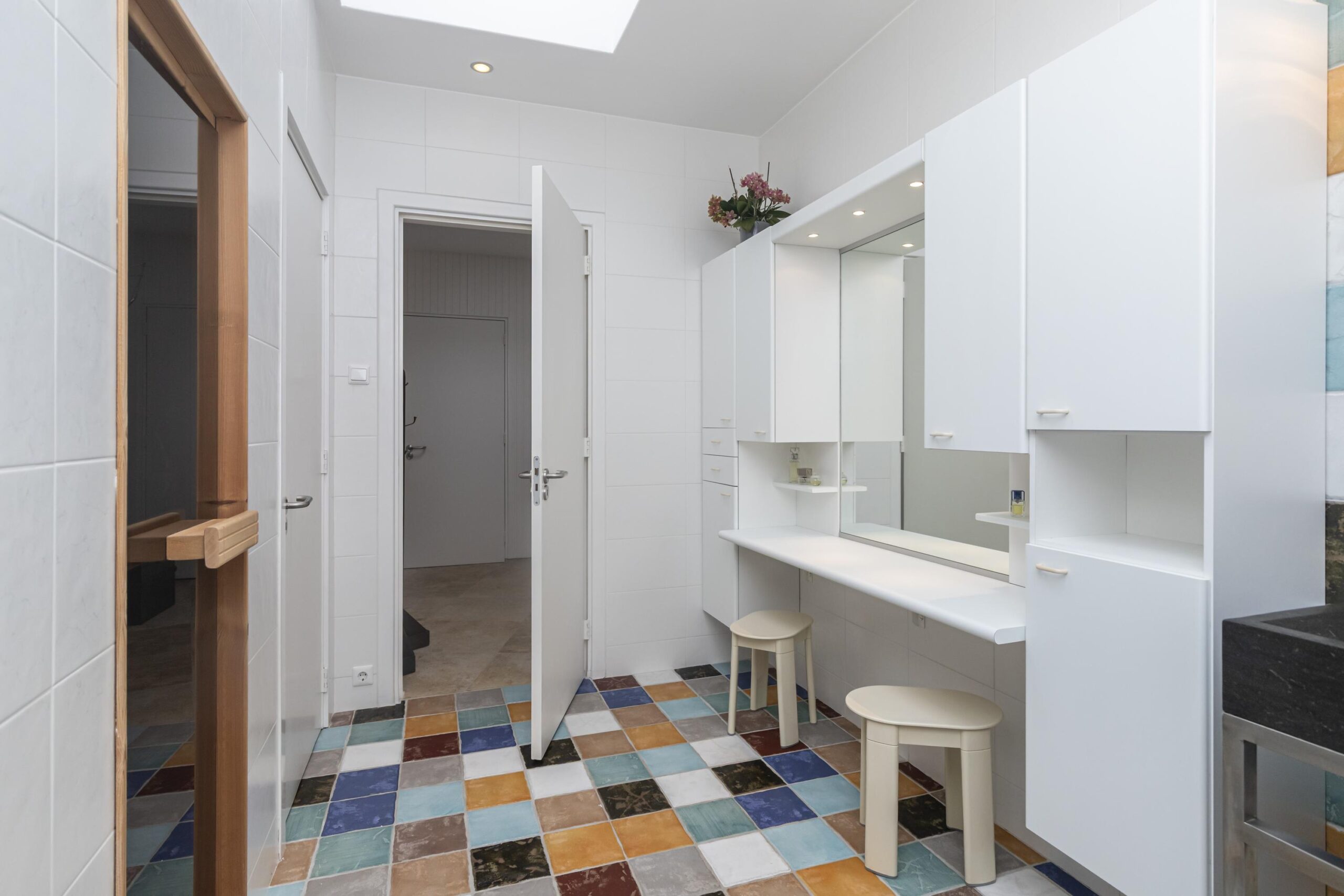 Vanuit de woonkamer heb je ook toegang tot twee verschillende werkkamers, die prima kunnen dienen als kantoor of studeerruimte. Beide kamers biedt veel privacy en is daardoor een rustige werkplek. Aansluitend aan één van de werkkamer bevindt zich een slaapkamer, die ideaal is voor gasten of als privéruimte. De slaapkamer heeft een eigen badkamer, die van alle gemakken is voorzien. De badkamer heeft een sauna, toilet, wastafel en een douche, wat het tot een comfortabele suite maakt voor extra luxe en privacy.