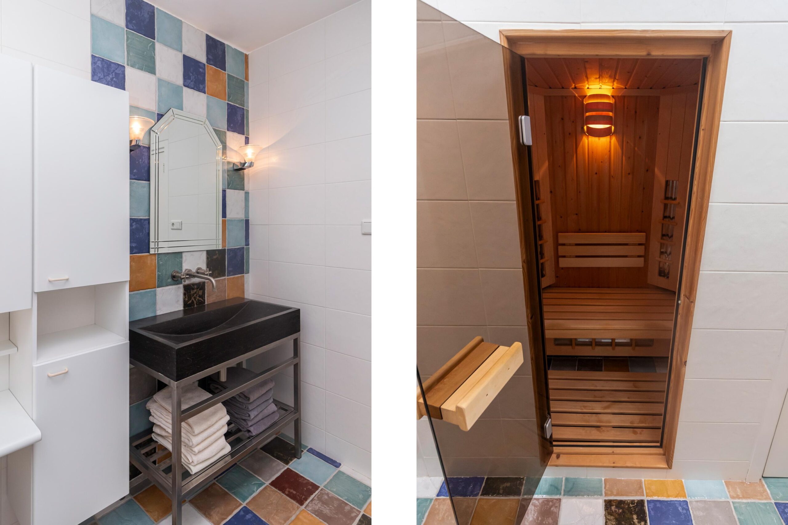 - Badkamervoorzieningen Toilet, douche, bidet, dubbele wastafel, sauna, ligbad, toilet, douche, wastafelmeubel