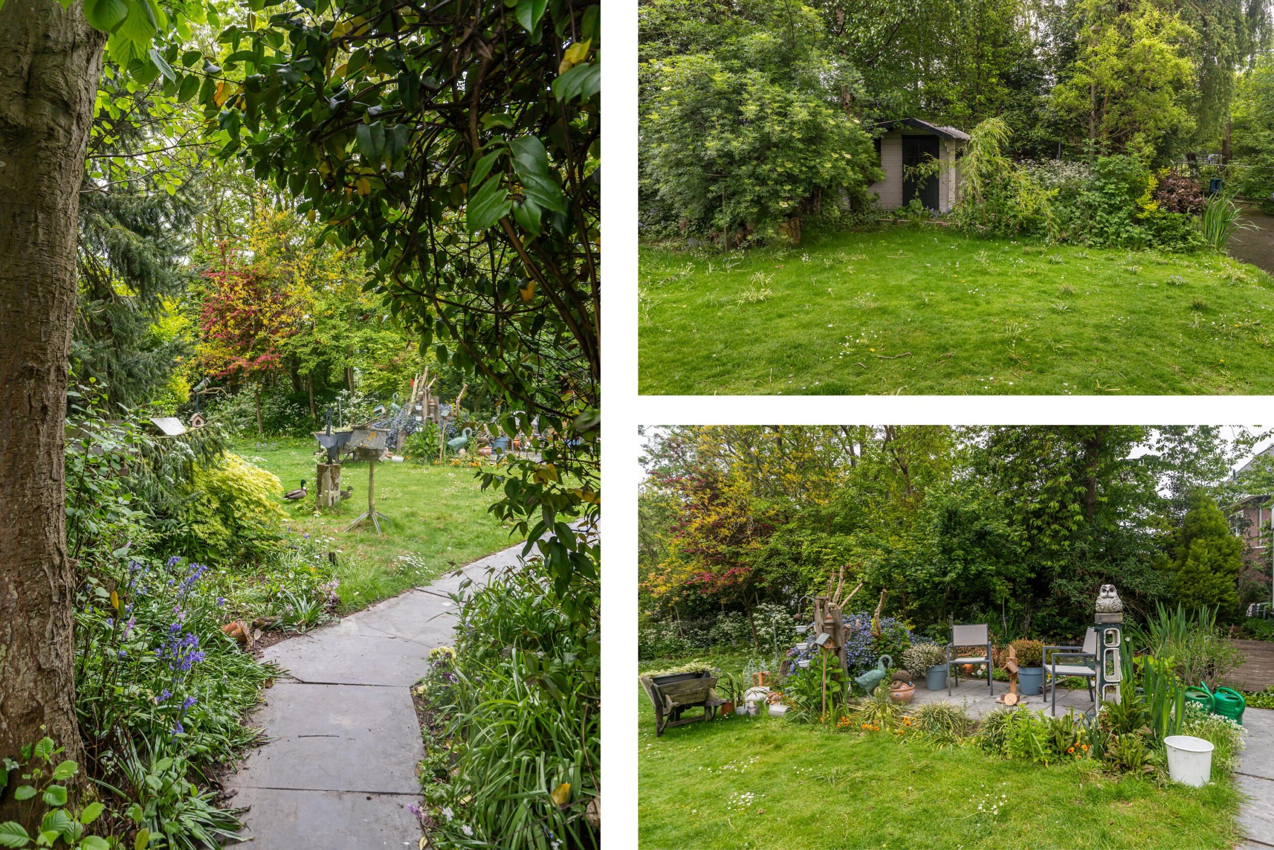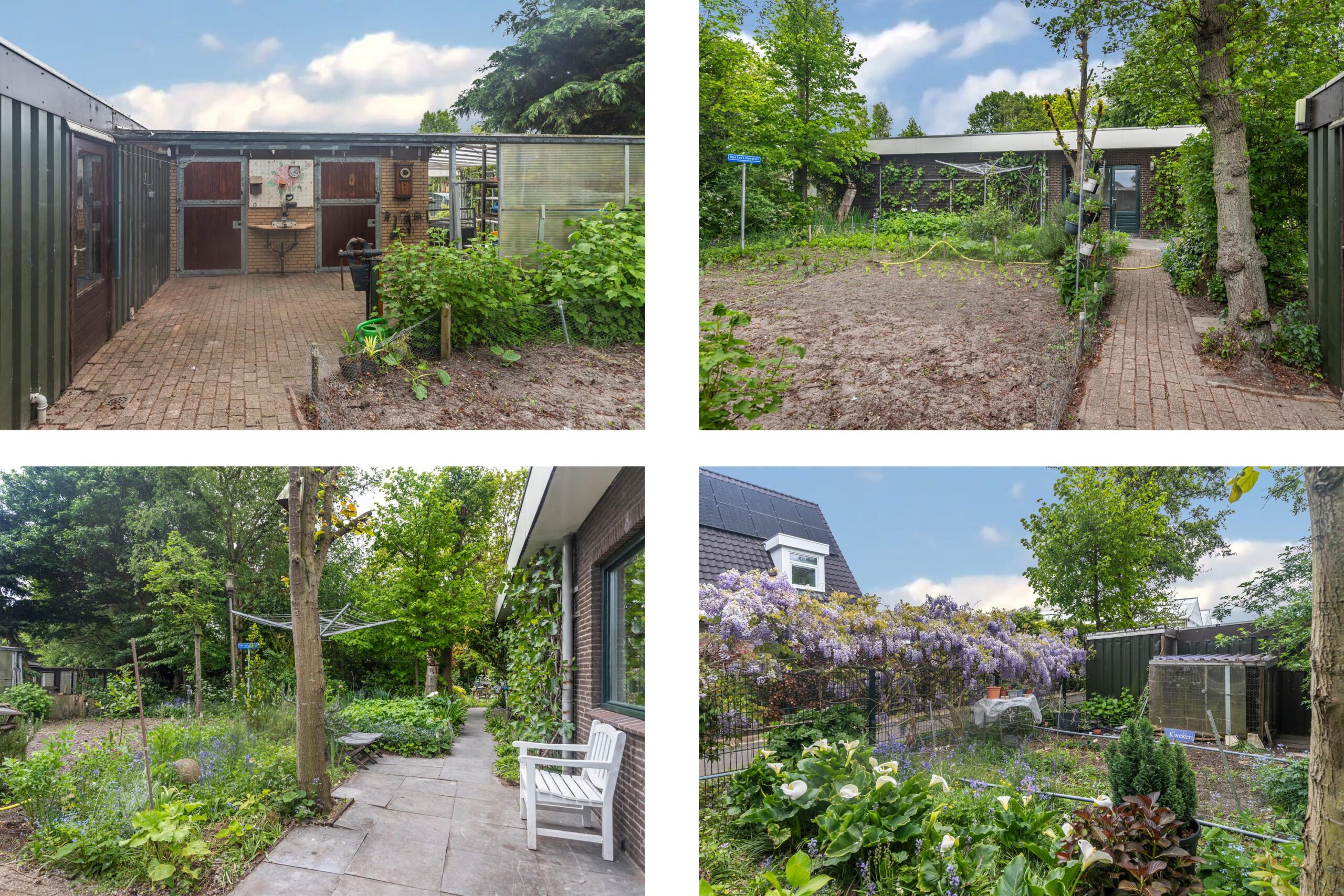 De woning beschikt over een prachtige buitenruimte van maar liefst 2970 m², die volop mogelijkheden biedt voor privacy, rust en recreatie. De tuin is een groene oase met volwassen bomen die zorgen voor beschutting en een prettige sfeer. Aan de voorzijde is er een ruime oprit met parkeergelegenheid voor meerdere voertuigen, evenals toegang tot de garage en bijgebouwen. Een bijzonder kenmerk van de tuin is het waterpartijtje, dat een rustgevende uitstraling geeft en vooral in de zomer voor extra sfeer zorgt. De uitgestrekte tuin biedt verder ruimte voor een moestuin, speelplek voor kinderen of een loungehoek voor gezellige avonden met vrienden en familie.
