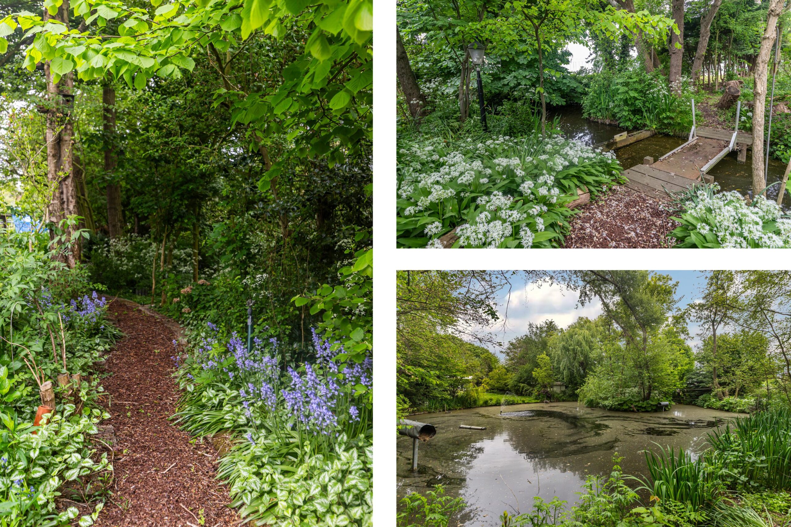 • Zeer ruime tuin rondom met volwassen groen, een waterpartij en een eigen (piraten)eiland