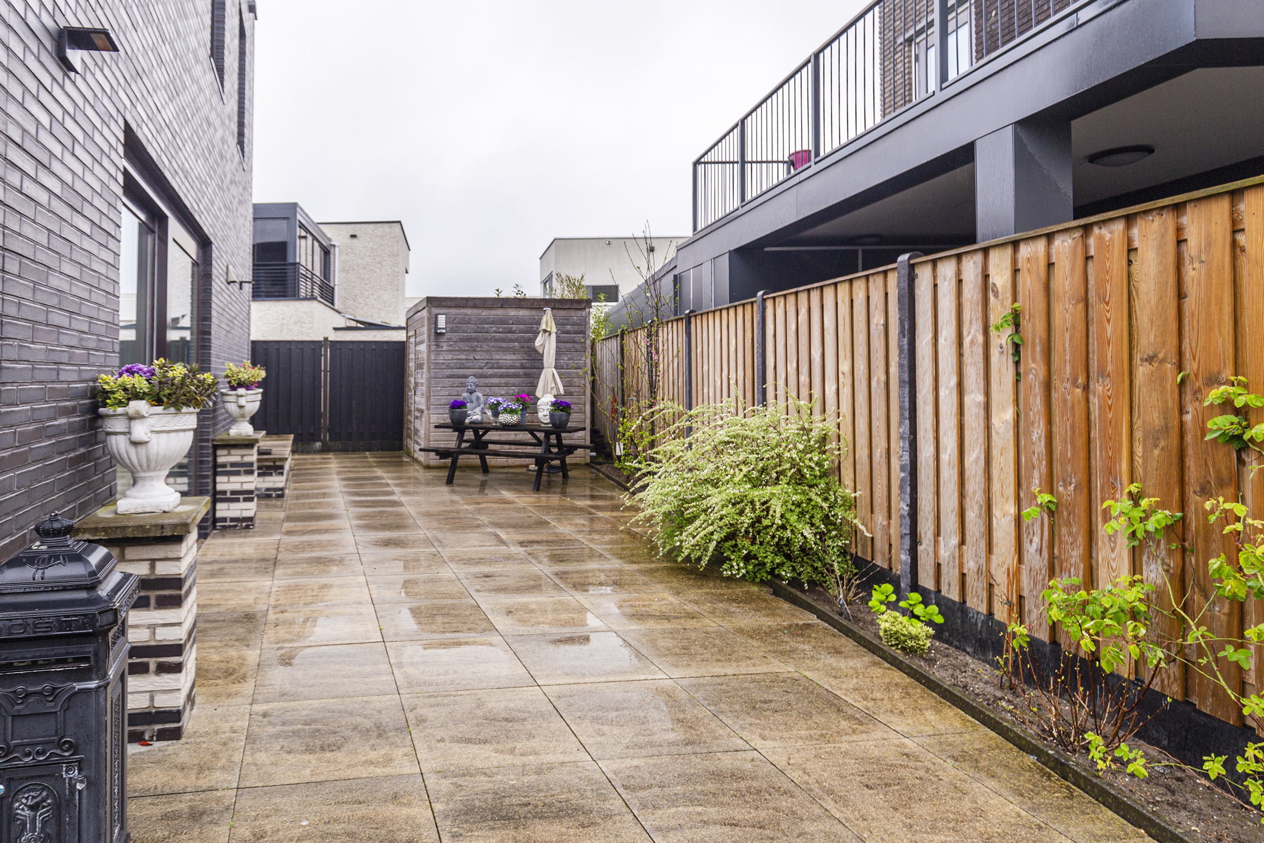 Rondom de woning ligt een royale tuin, waardoor je op ieder moment van de dag een plek in de zon of schaduw kunt kiezen. In de achtertuin is tevens een praktische houten berging aanwezig. De ligging in een rustige woonwijk zorgt voor veel privacy. Op eigen terrein is parkeergelegenheid aanwezig.