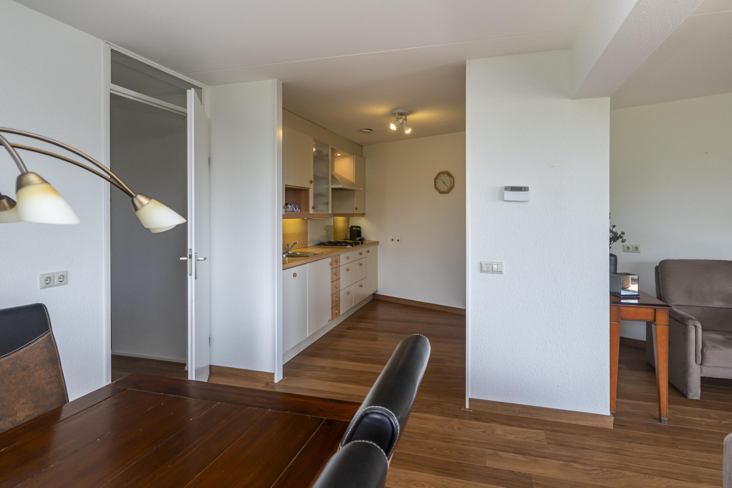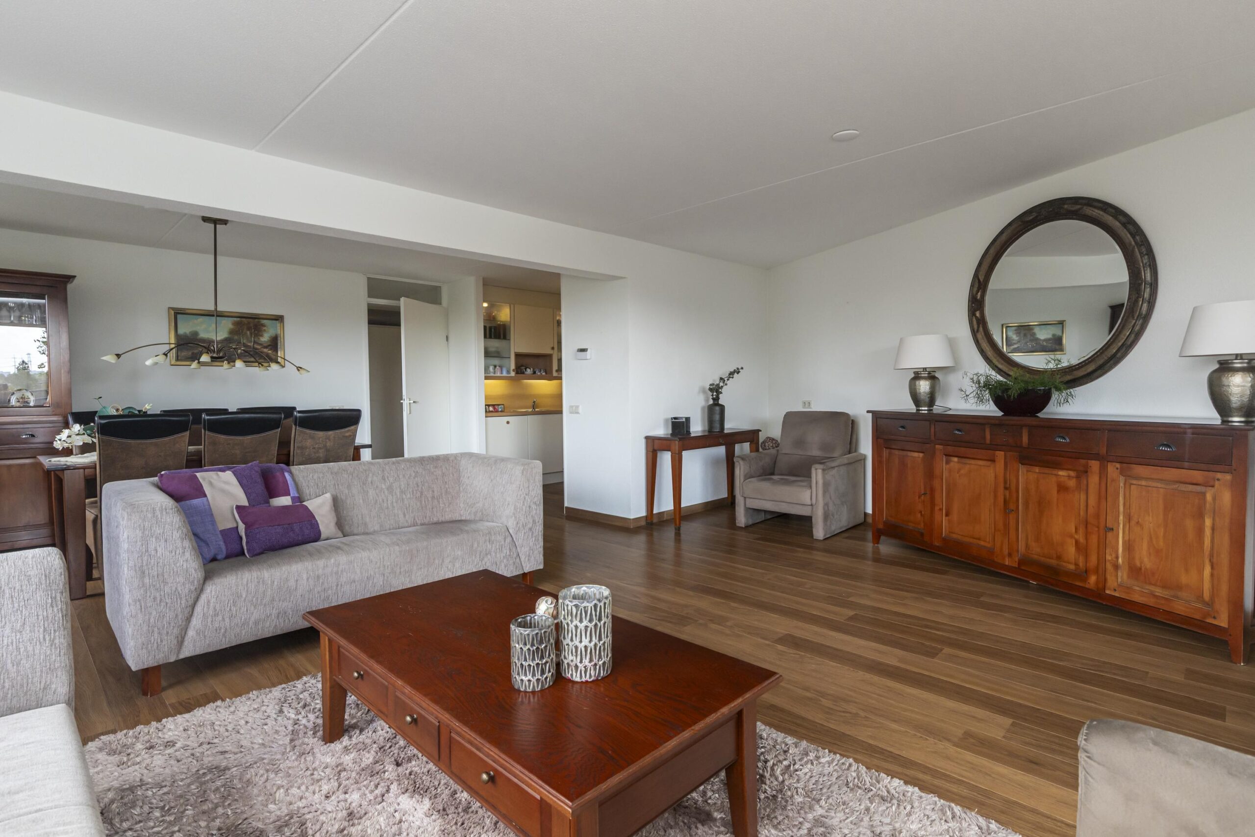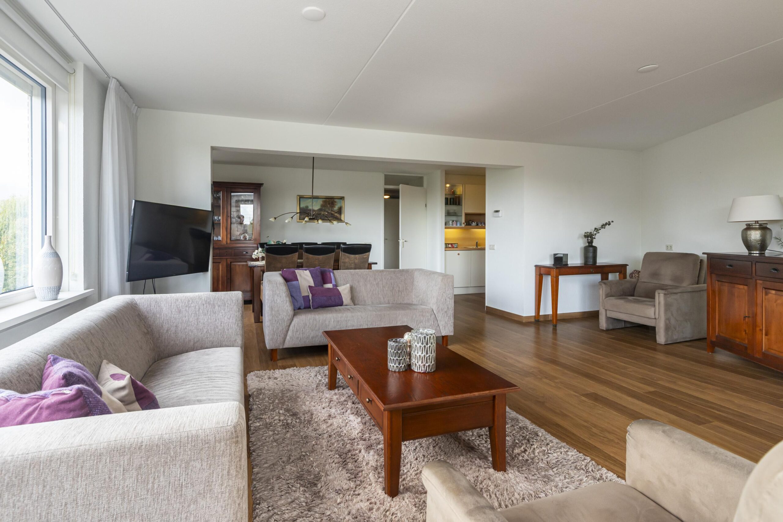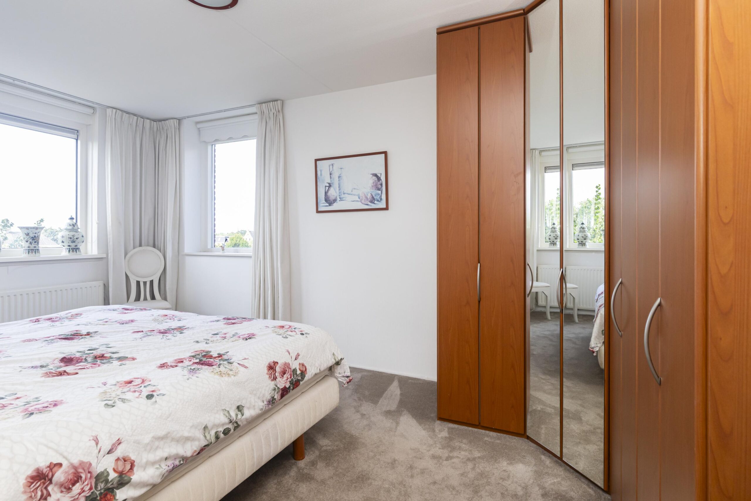 Via de schuifpui in de woonkamer bereikt u het zonnige balkon, gelegen op het zuidoosten. Hier geniet u volop van rust, privacy en het prachtige vrije uitzicht over het water en het groen.
