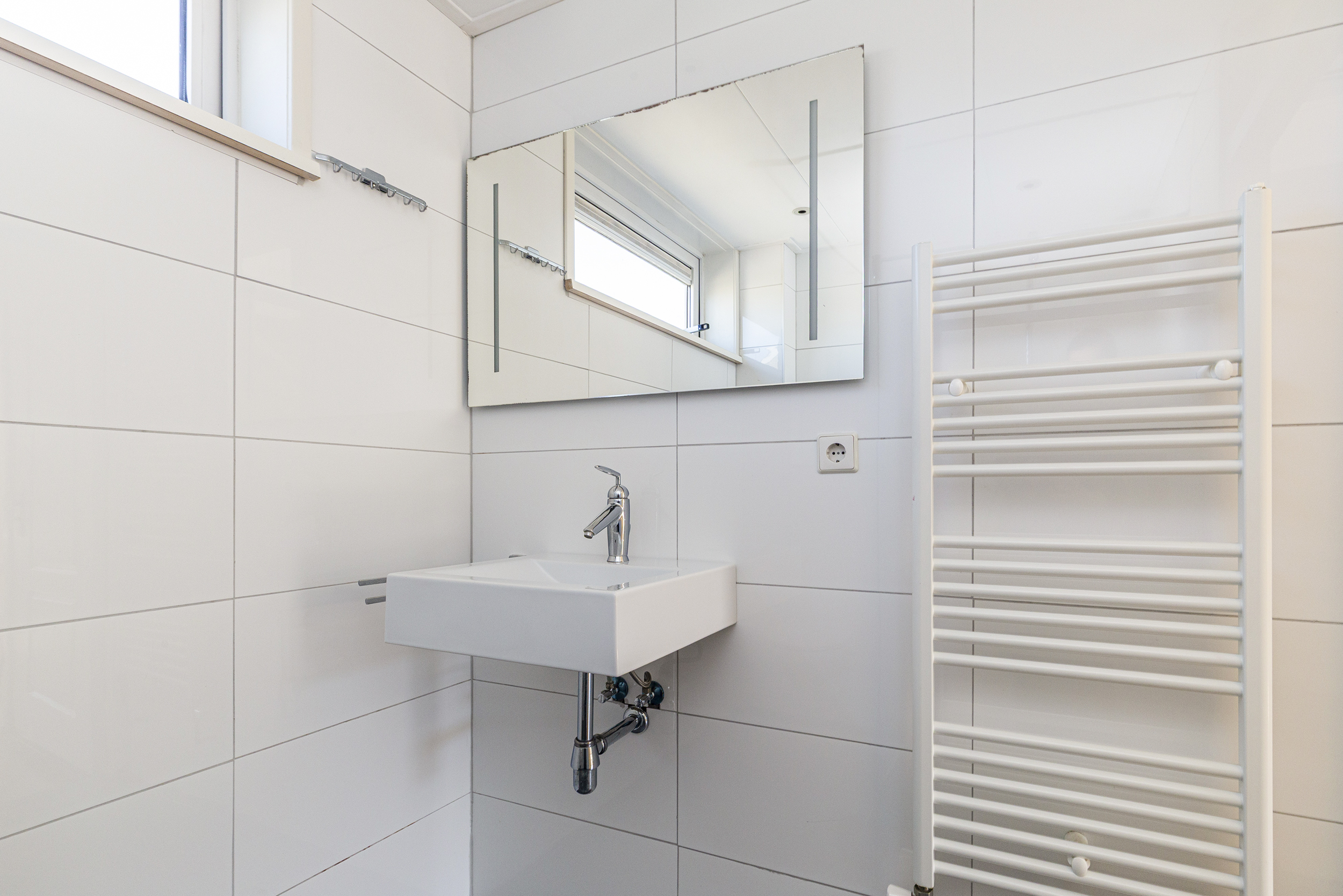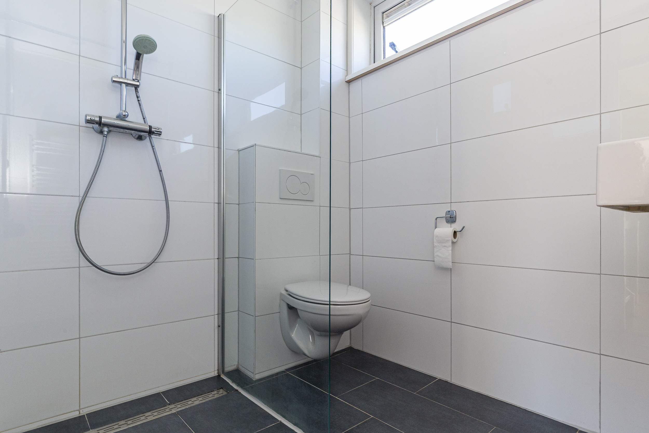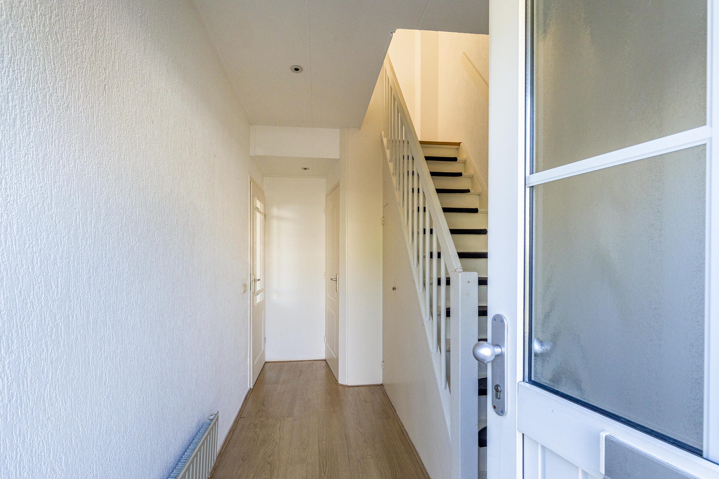 Op de eerste verdieping vind je drie volwaardige slaapkamers. De hoofdslaapkamer is ruim en licht en beschikt over een raam dat naar binnen opent. Daarnaast is er een tweede, ruime slaapkamer en een derde kamer die perfect geschikt is als kinderkamer, werkkamer of bijvoorbeeld een inloopkast. De badkamer is netjes en verzorgd en voorzien van een inloopdouche, een hangend toilet en een wastafel. Dankzij het aanwezige raam is er prettig daglicht.