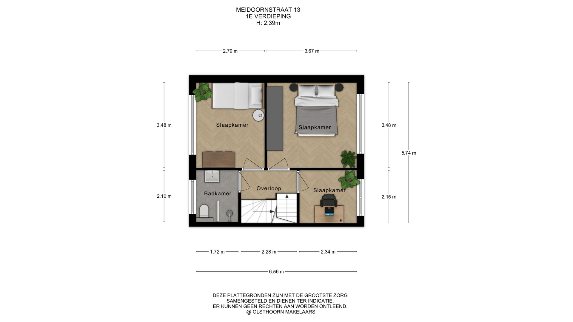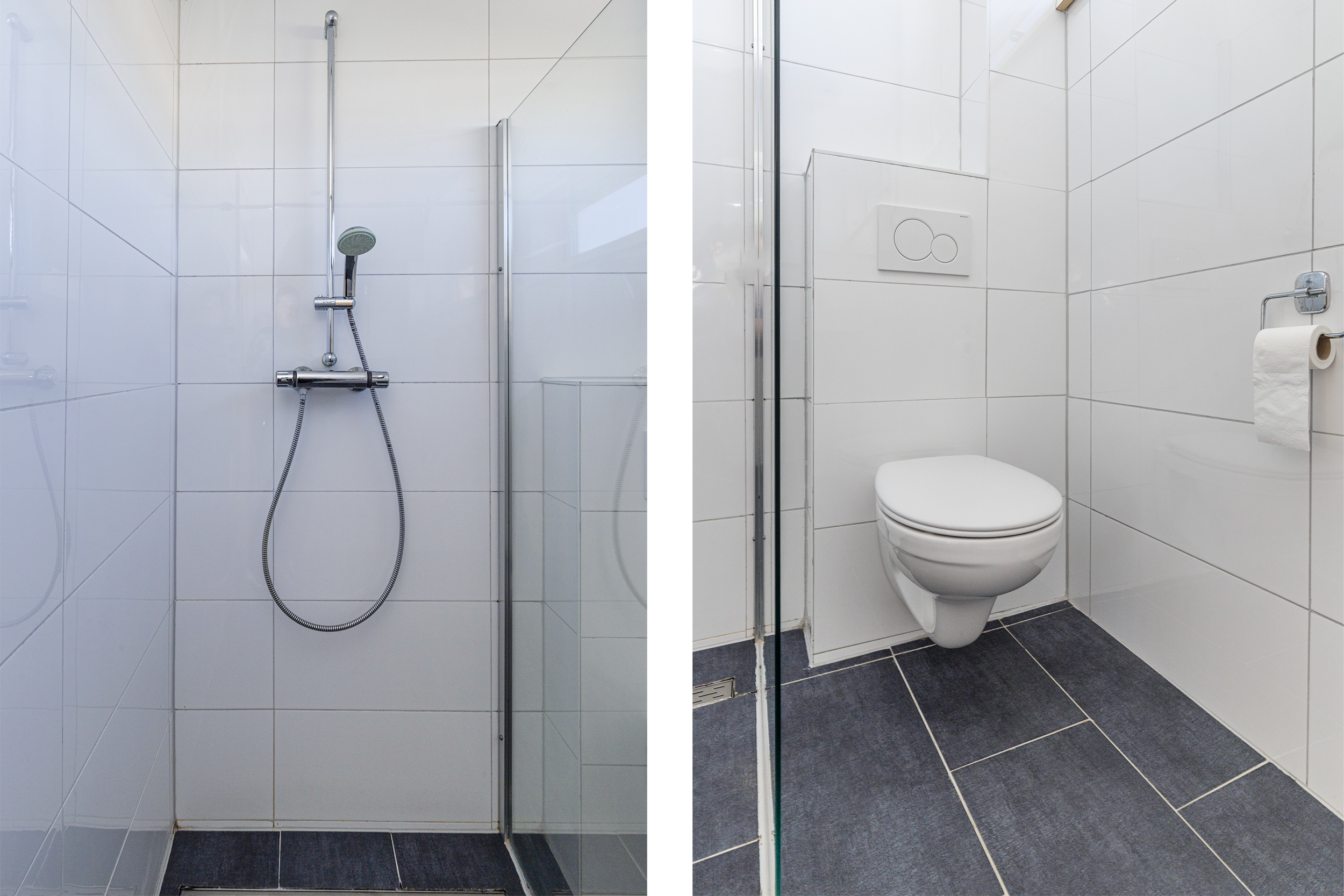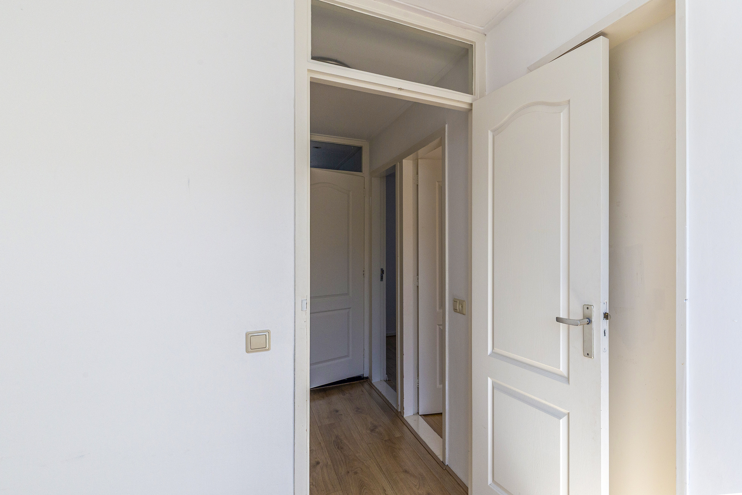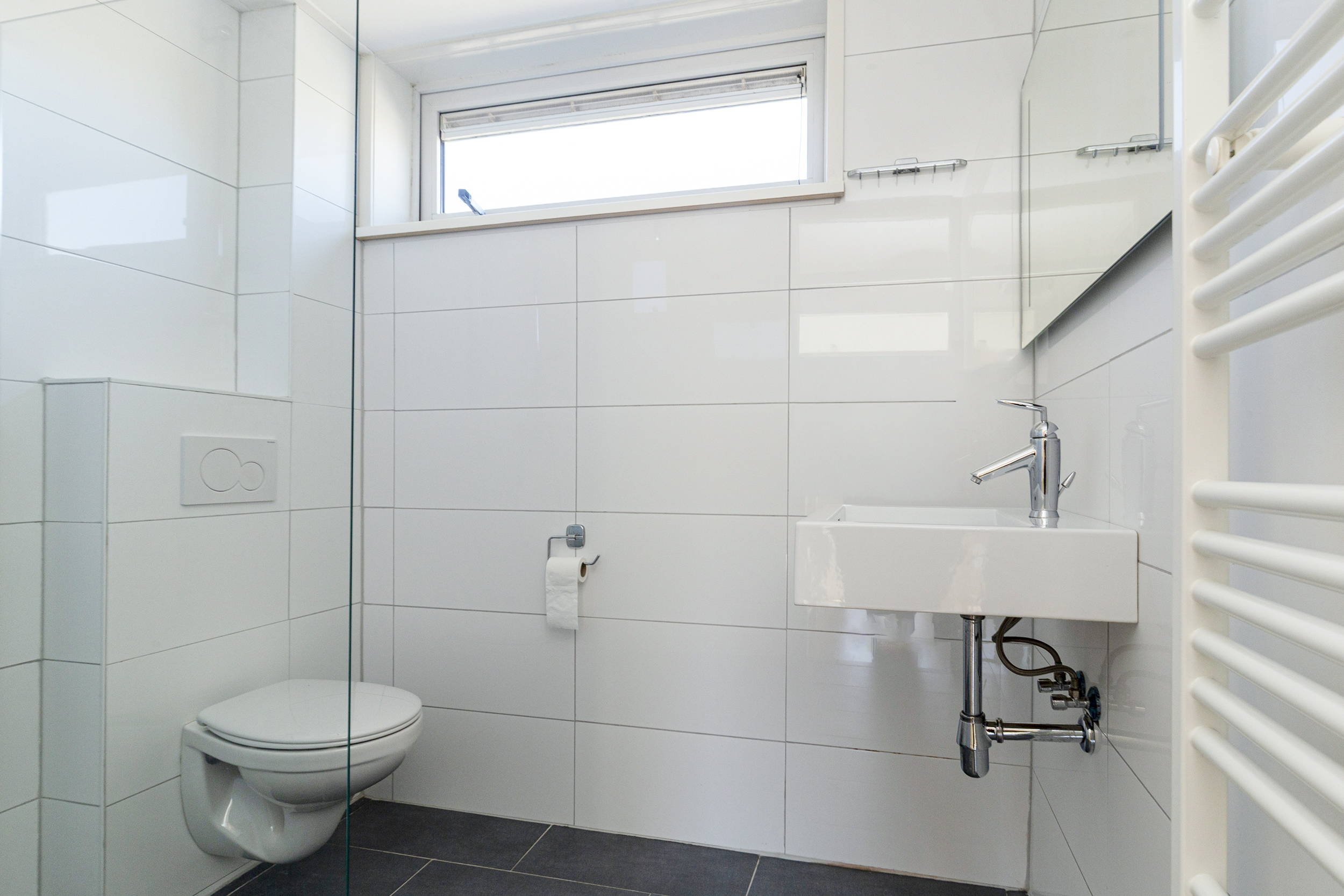 Op de eerste verdieping vind je drie volwaardige slaapkamers. De hoofdslaapkamer is ruim en licht en beschikt over een raam dat naar binnen opent. Daarnaast is er een tweede, ruime slaapkamer en een derde kamer die perfect geschikt is als kinderkamer, werkkamer of bijvoorbeeld een inloopkast. De badkamer is netjes en verzorgd en voorzien van een inloopdouche, een hangend toilet en een wastafel. Dankzij het aanwezige raam is er prettig daglicht.