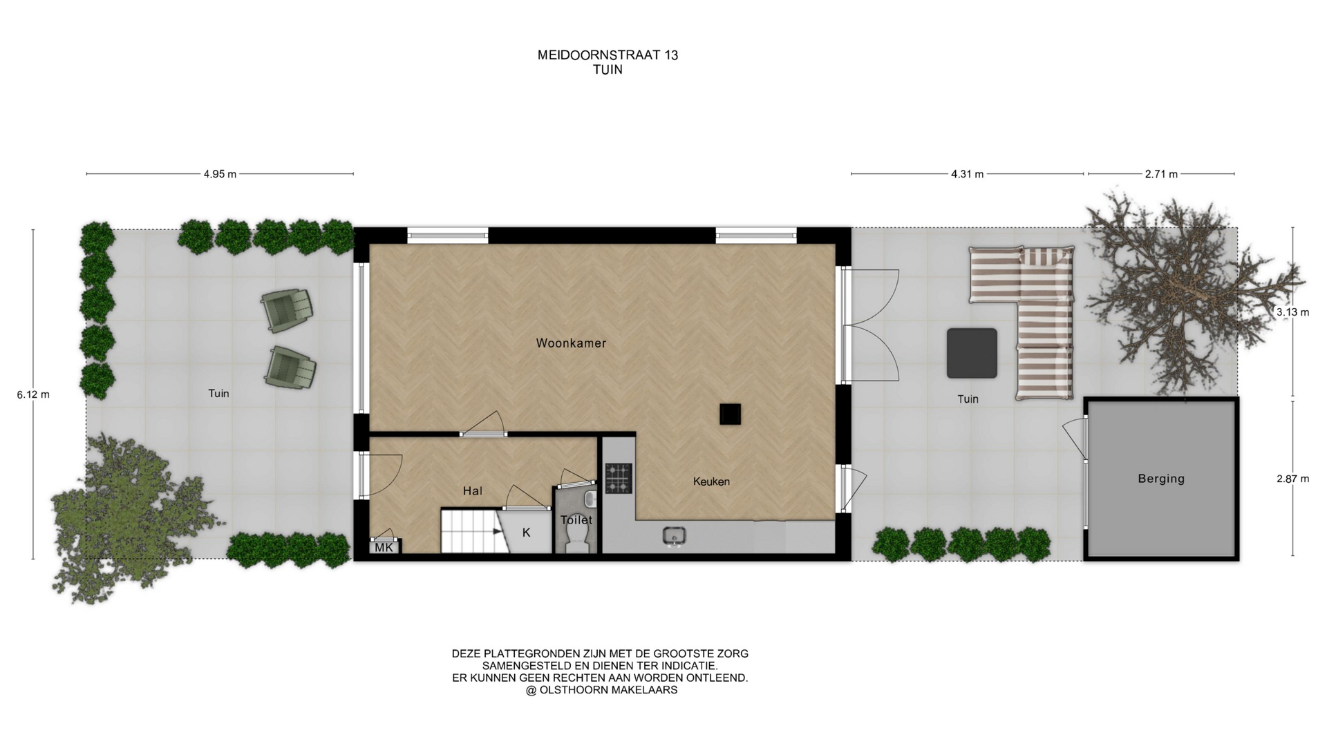 - Oppervlakte hoofdtuin 43 m2