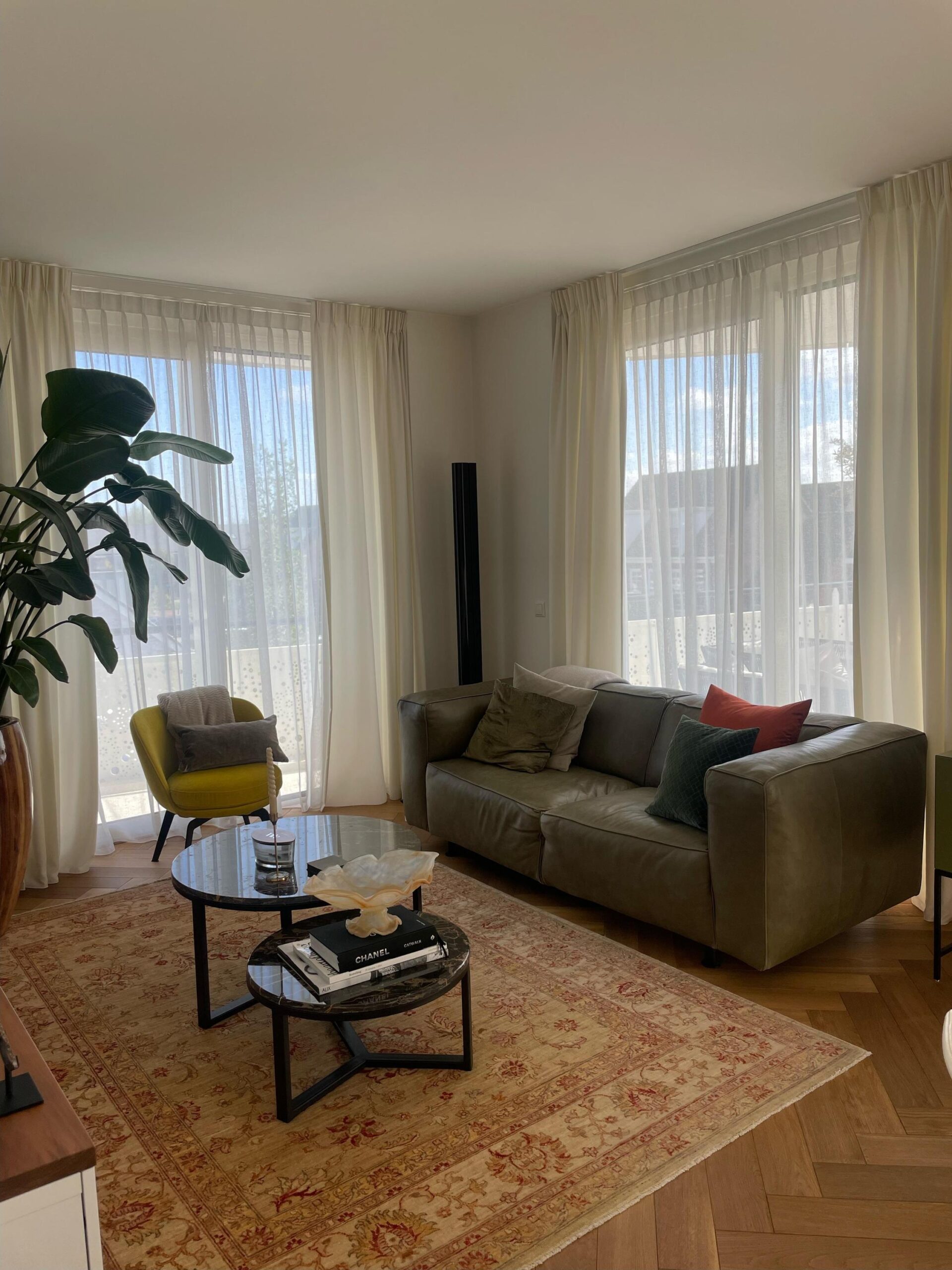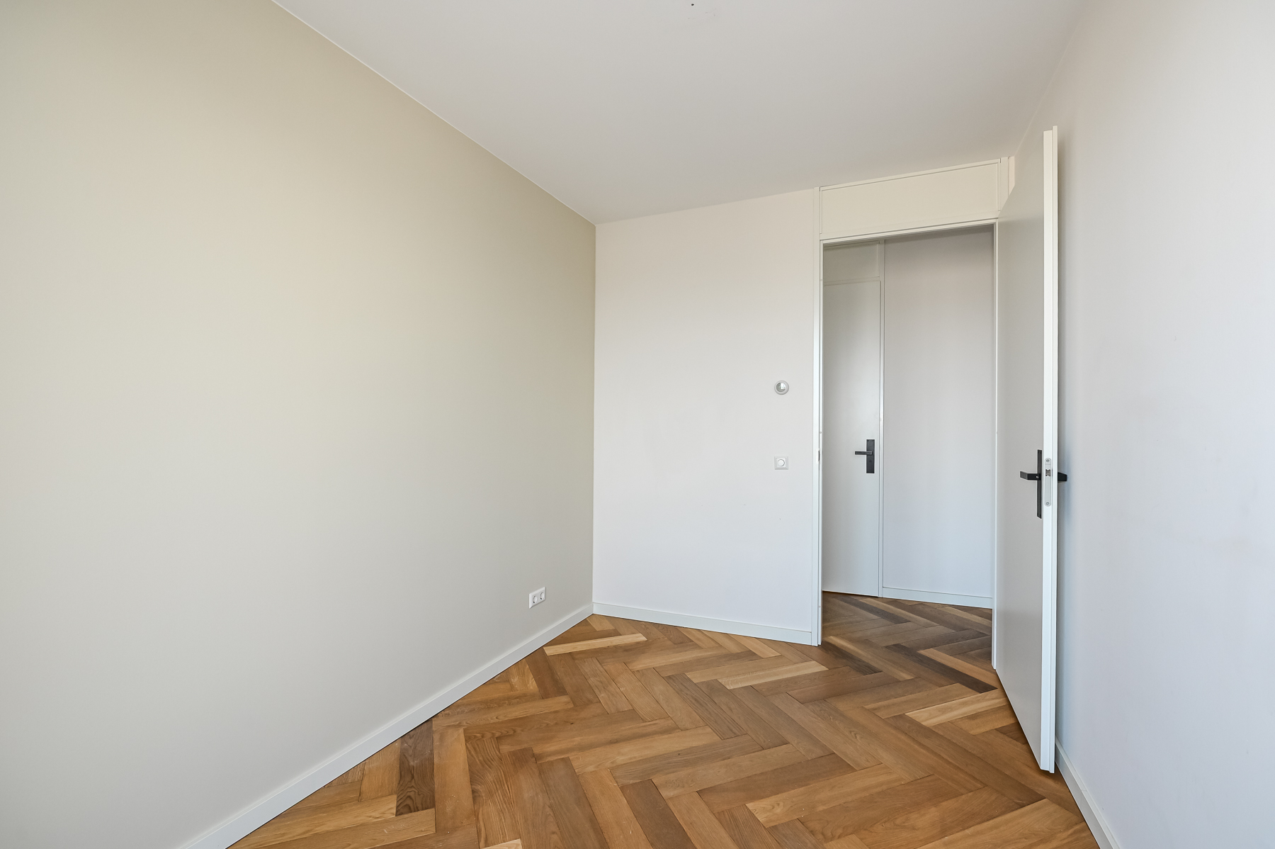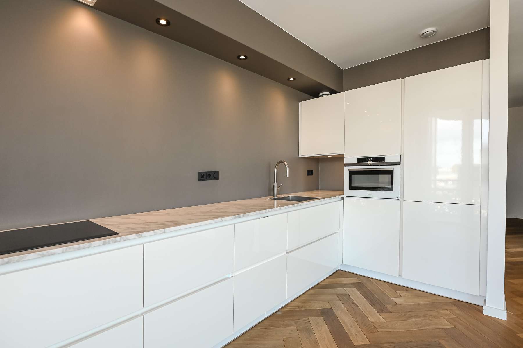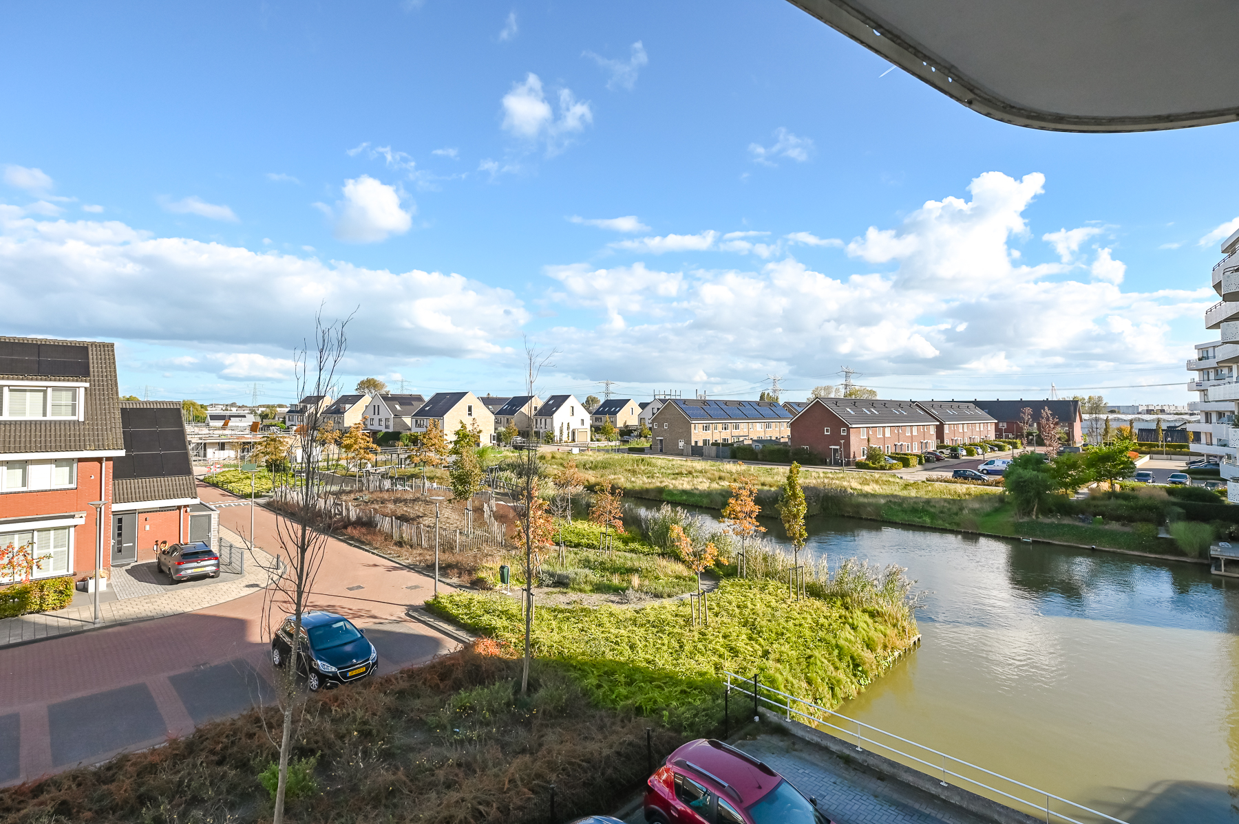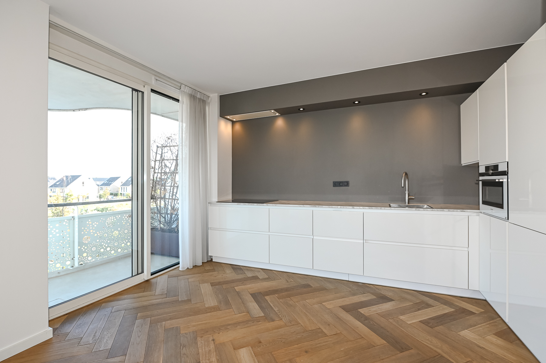 Het ruime balkon van ca. 33 m² ligt op het oosten, waardoor je ’s ochtends kunt genieten van het eerste licht. Doordat het een hoekappartement is en op de tweede verdieping ligt met schuifpuien, is er extra lichtinval en uitzicht.