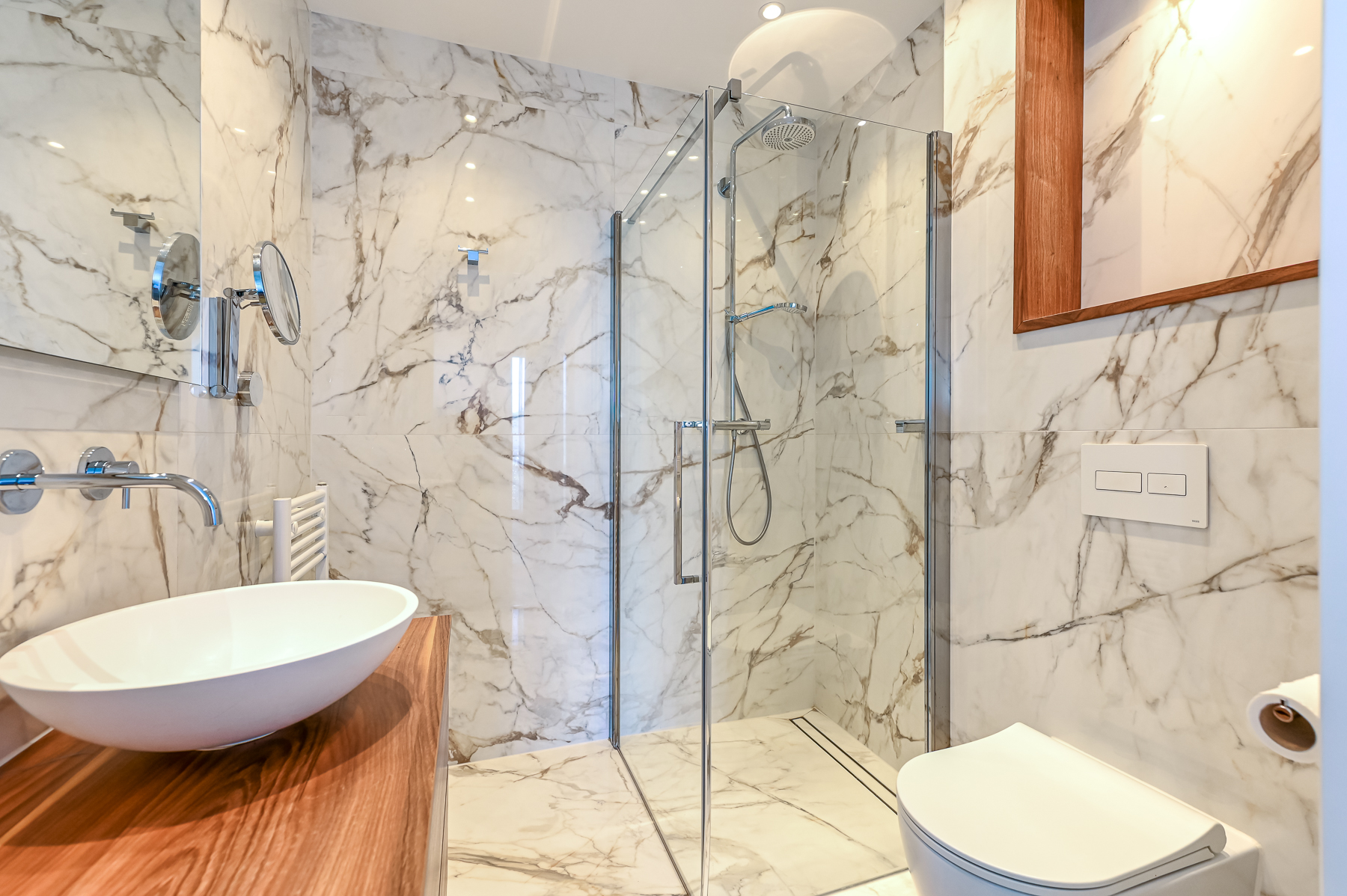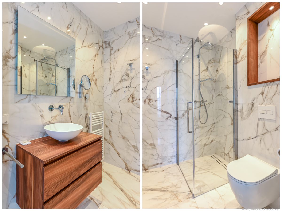 - Badkamervoorzieningen Toilet, wastafelmeubel, inloopdouche, vloerverwarming