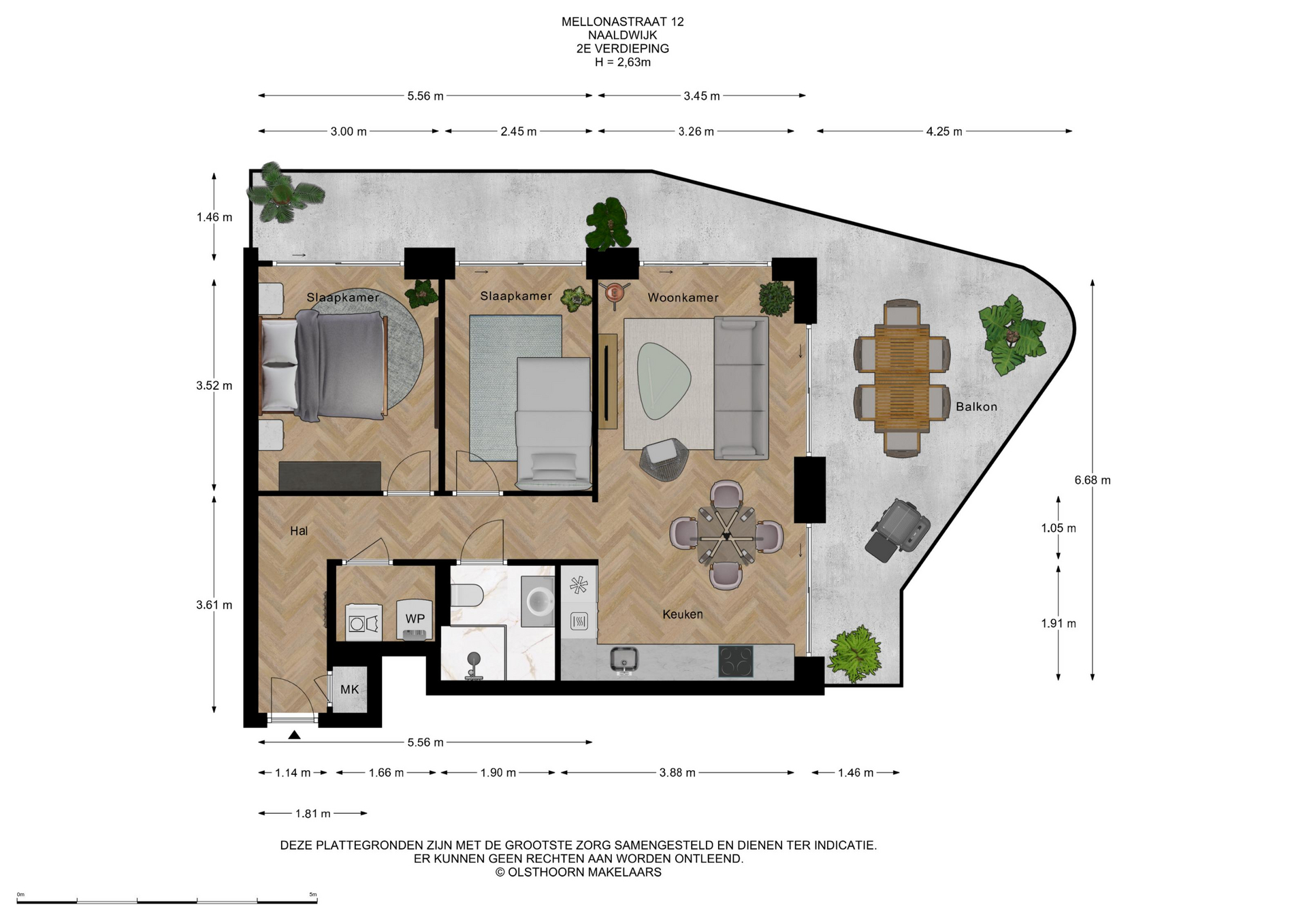 Licht en duurzaam appartement met twee slaapkamers visgraatvloer en groot balkon in het verzorgde complex Ibiza Plaza Naaldwijk