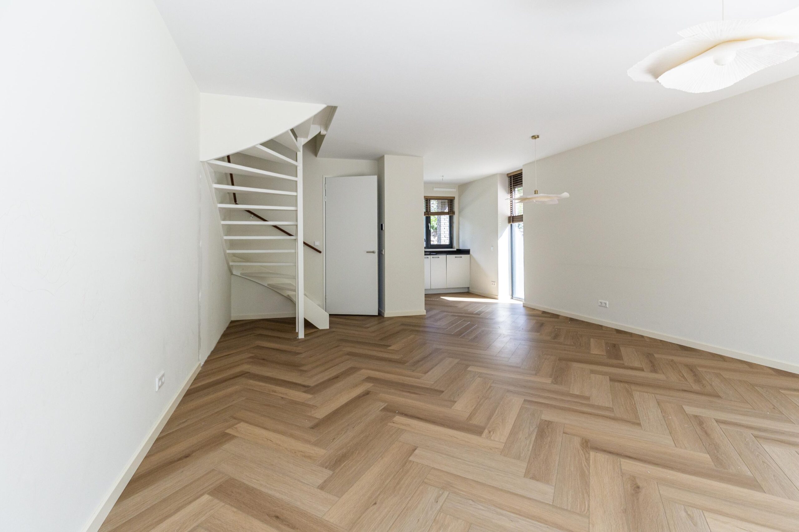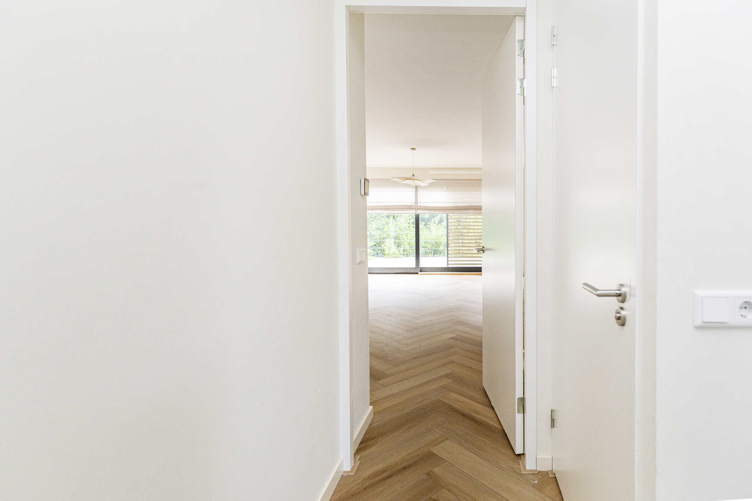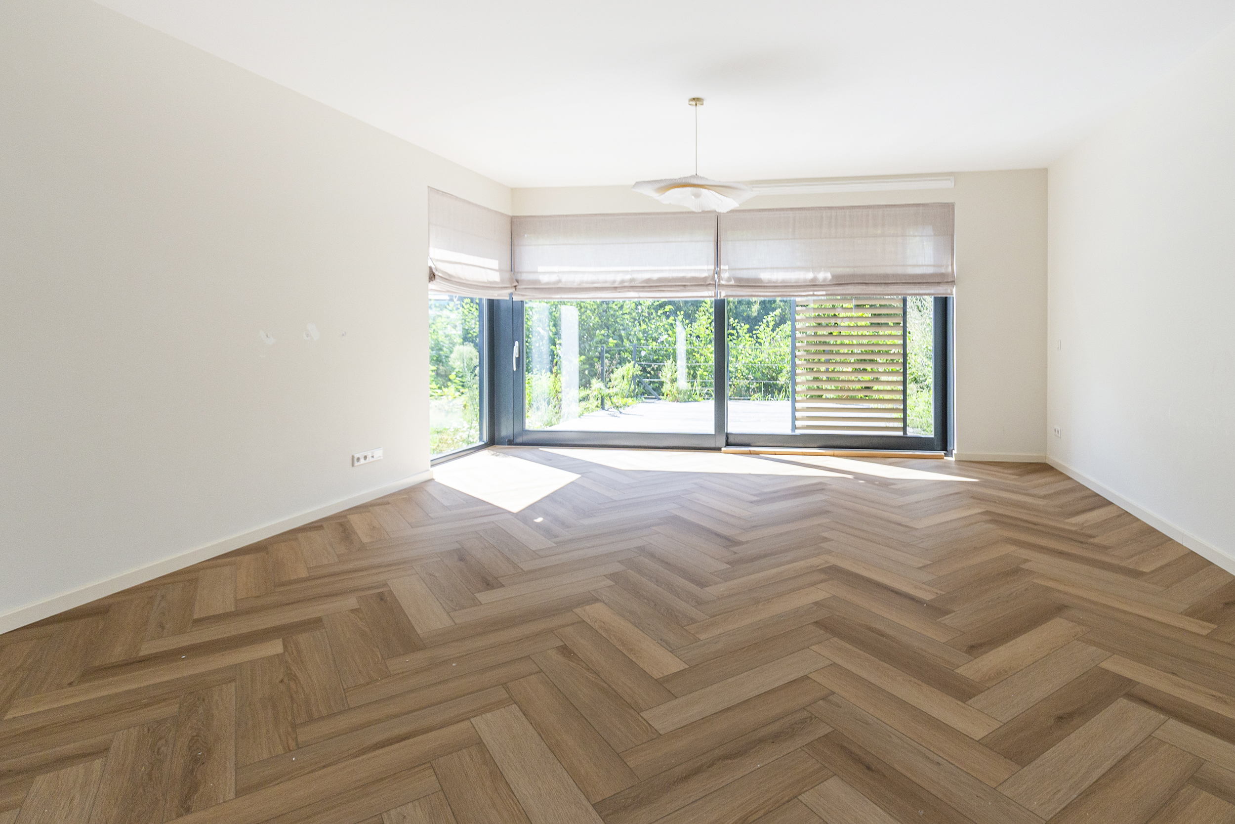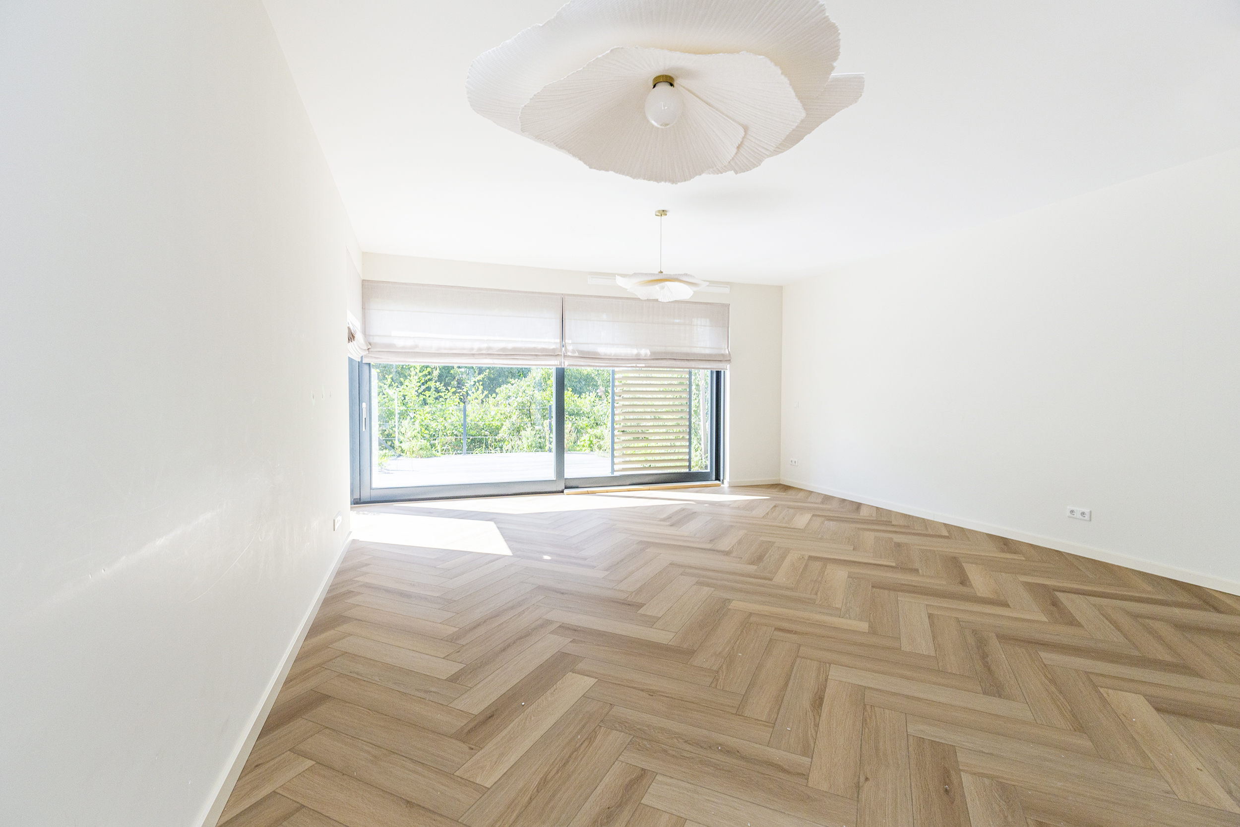 De lichte en ruime woonkamer is tuingericht en voorzien van een grote schuifpui naar het zonnige terras aan het water, een fijne plek om in alle rust te genieten van het buitenleven.
