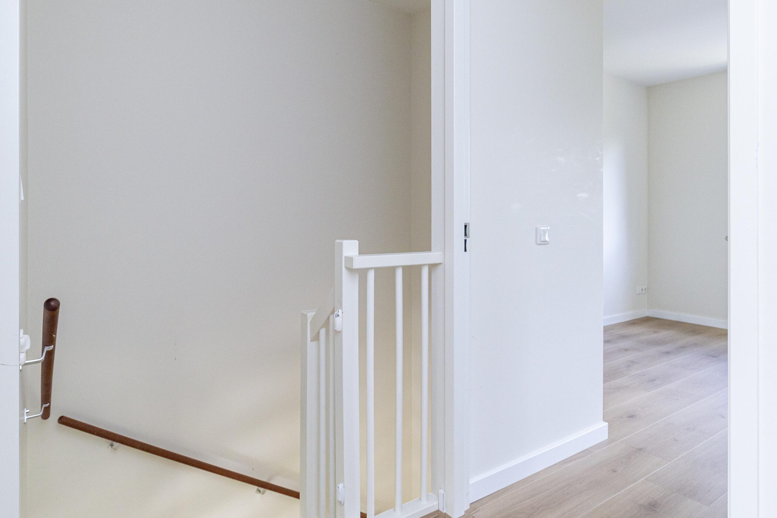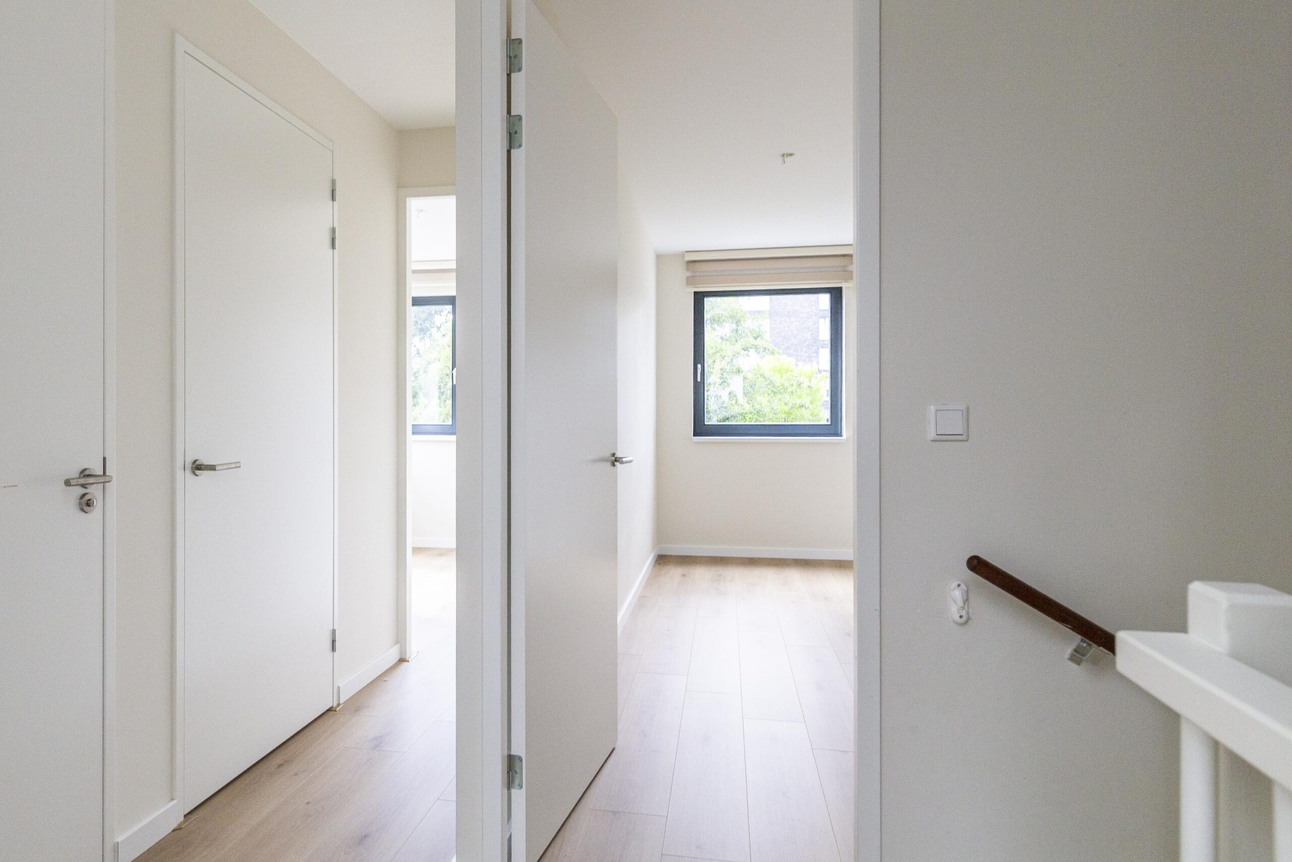 De overloop biedt toegang tot drie slaapkamers: één aan de voorzijde en twee aan de achterzijde. De badkamer is stijlvol betegeld en voorzien van een inloopdouche, ligbad, wastafelmeubel en handdoekradiator. Ook op deze verdieping is een separaat toilet met fontein aanwezig.