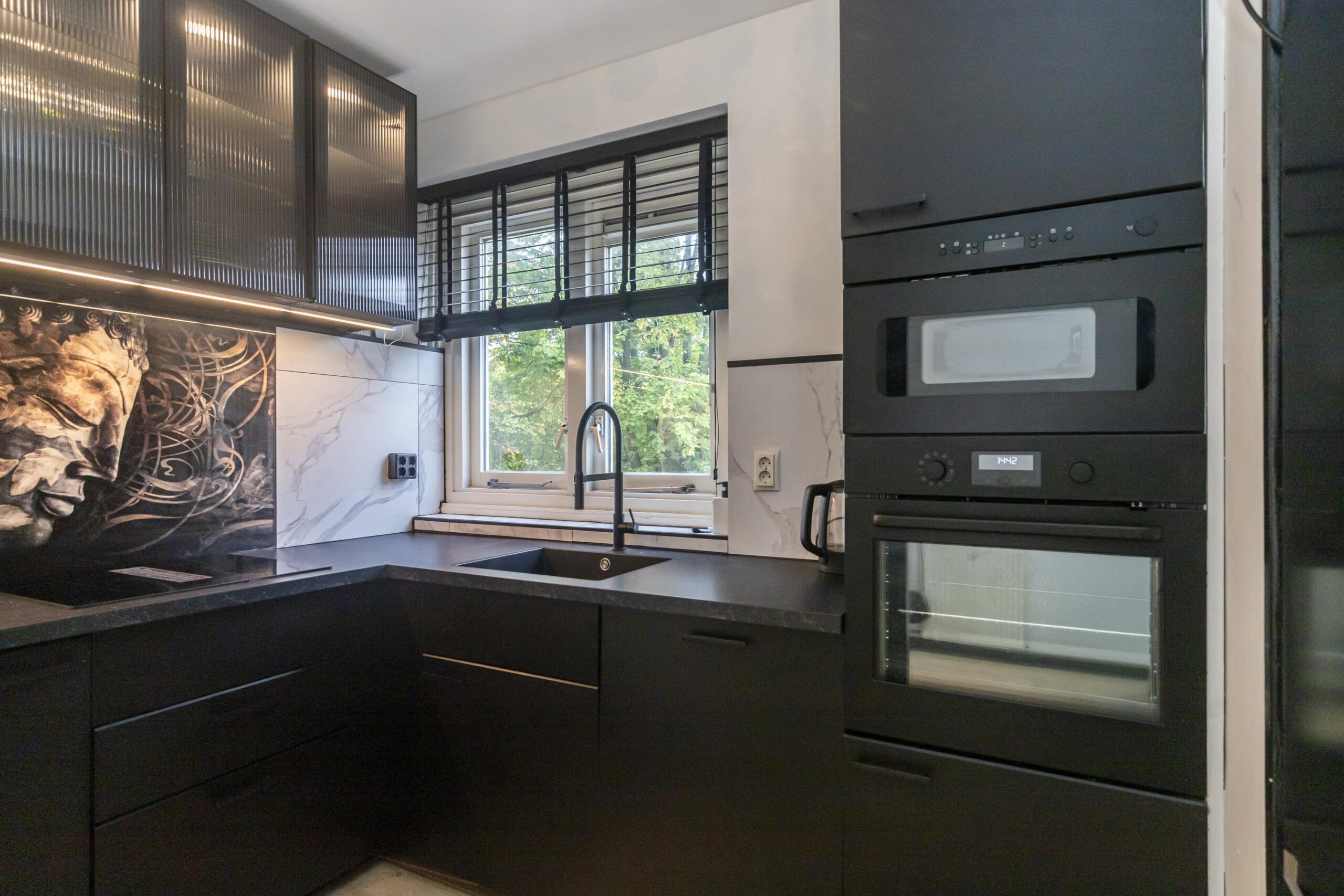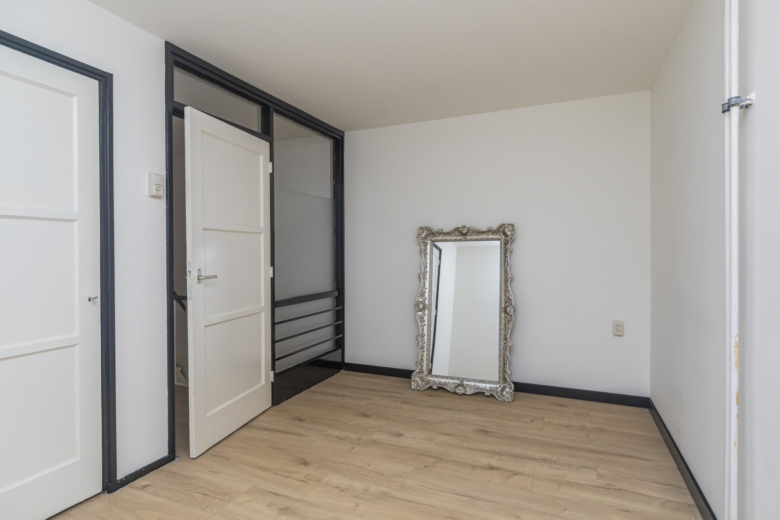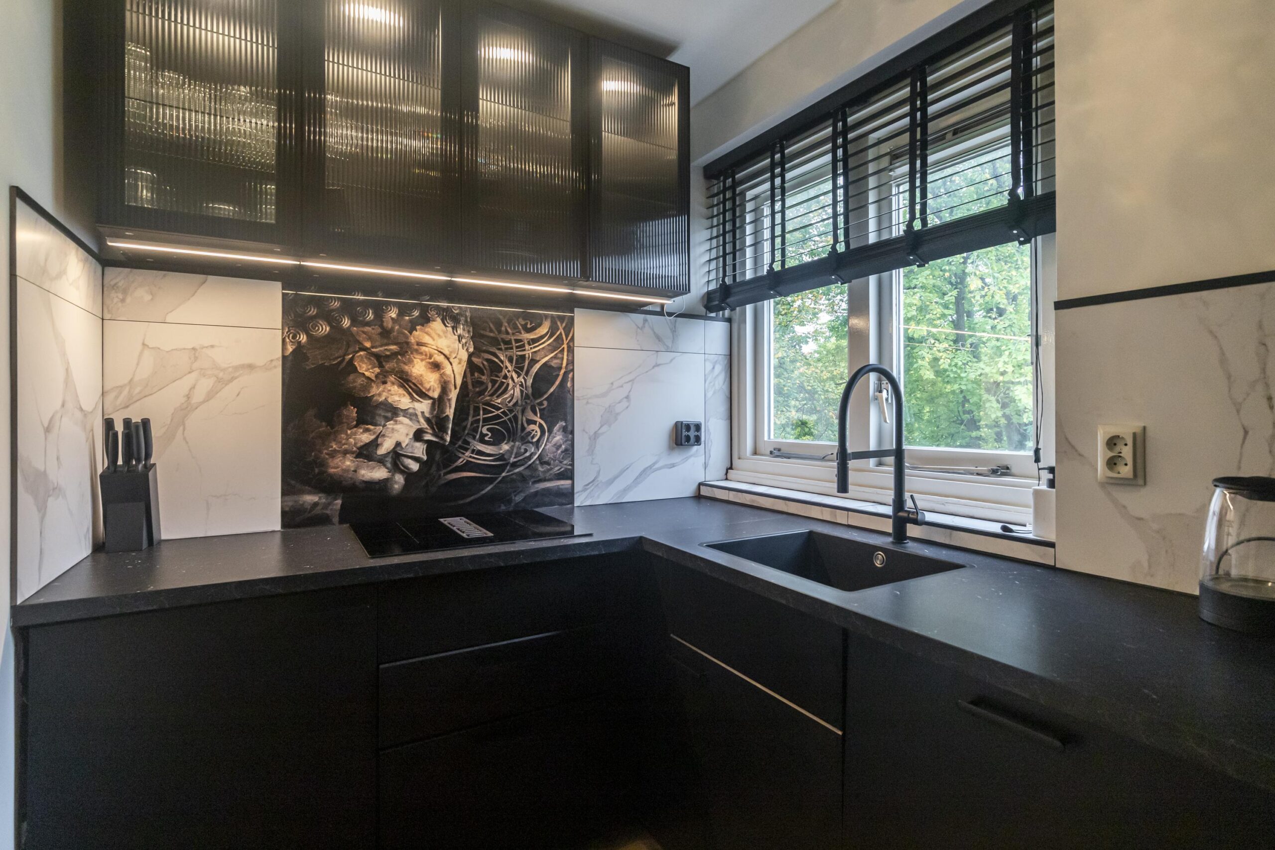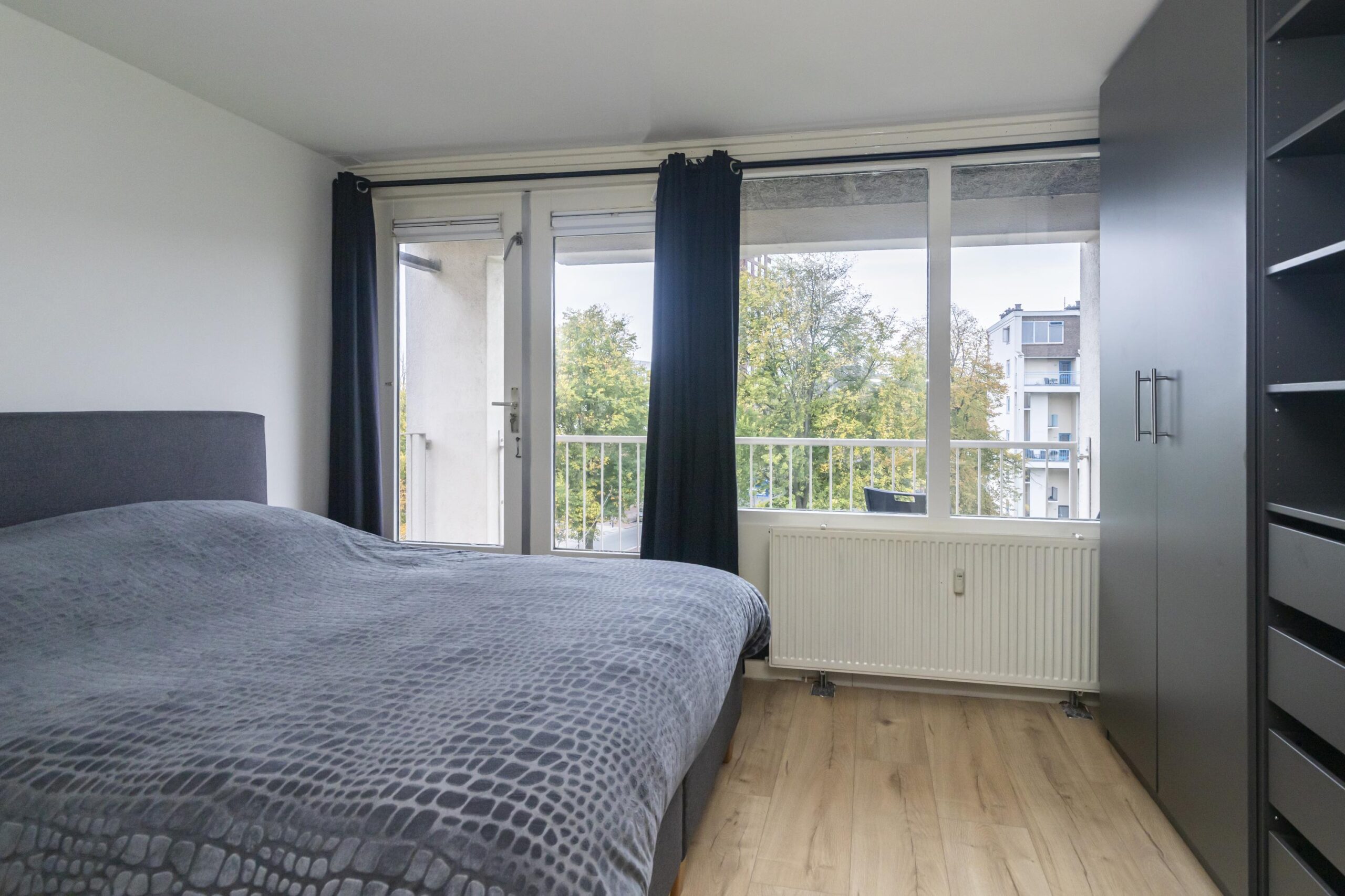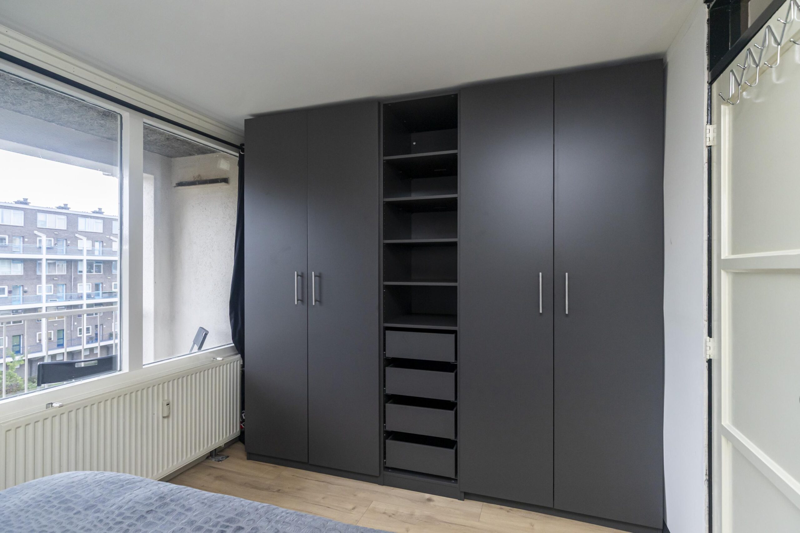 Binnenkomst in de hal. Aan de linkerzijde bevindt zich de half open keuken, welke is voorzien van diverse inbouwapparatuur. De moderne keuken is in 2023 volledig gerenoveerd. Het separate toilet is ruim en voorzien van een fonteintje. De lichte woonkamer heeft een verlaagd plafond met inbouwspots. De woonkamer is stijlvol afgewerkt met een luxe cinewall inclusief een elektrische haard. Ook bevinden zich twee praktische opbergkasten op deze verdieping. Vanuit de woonkamer heeft u toegang tot het zonnige balkon, gelegen op het zuidwesten.