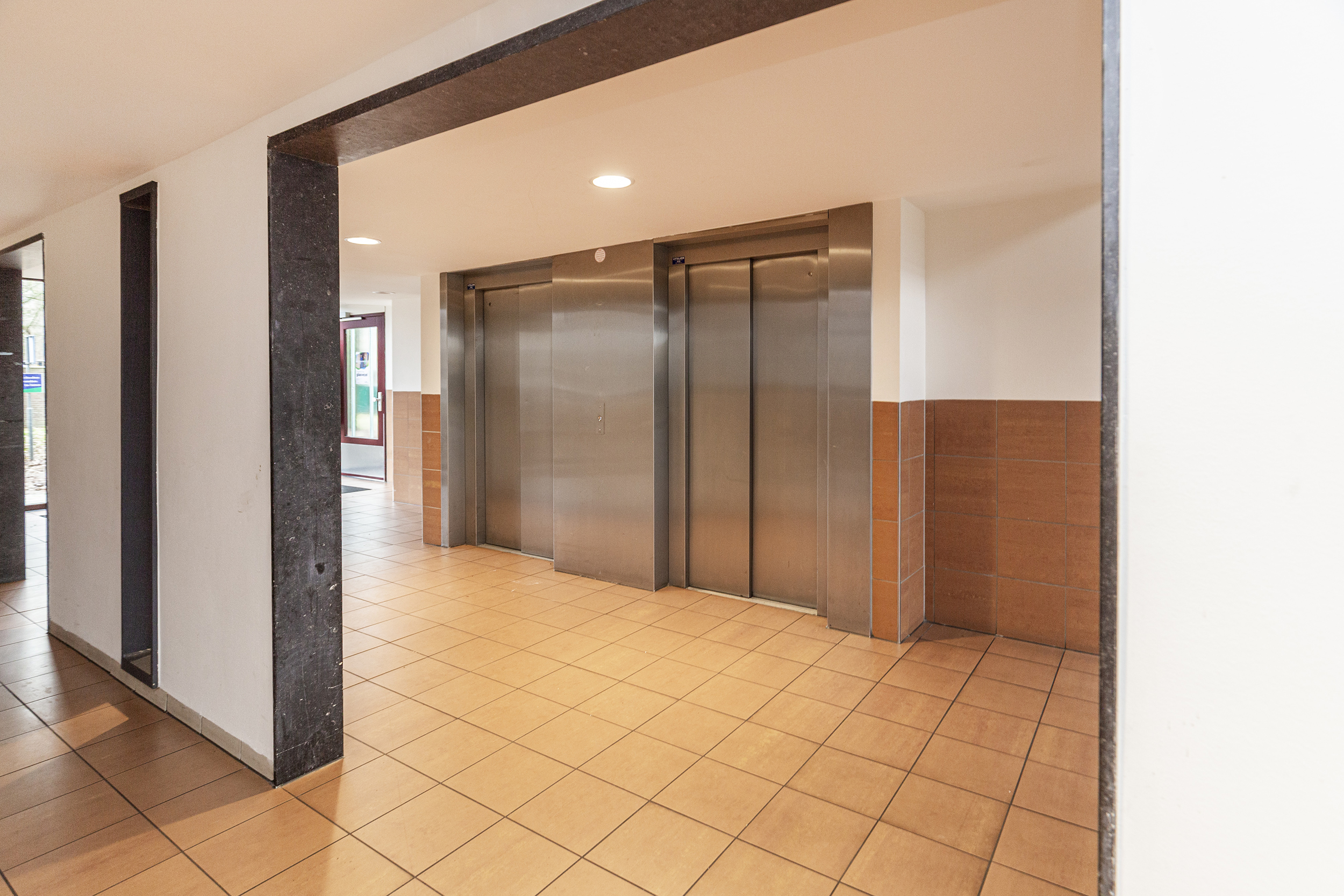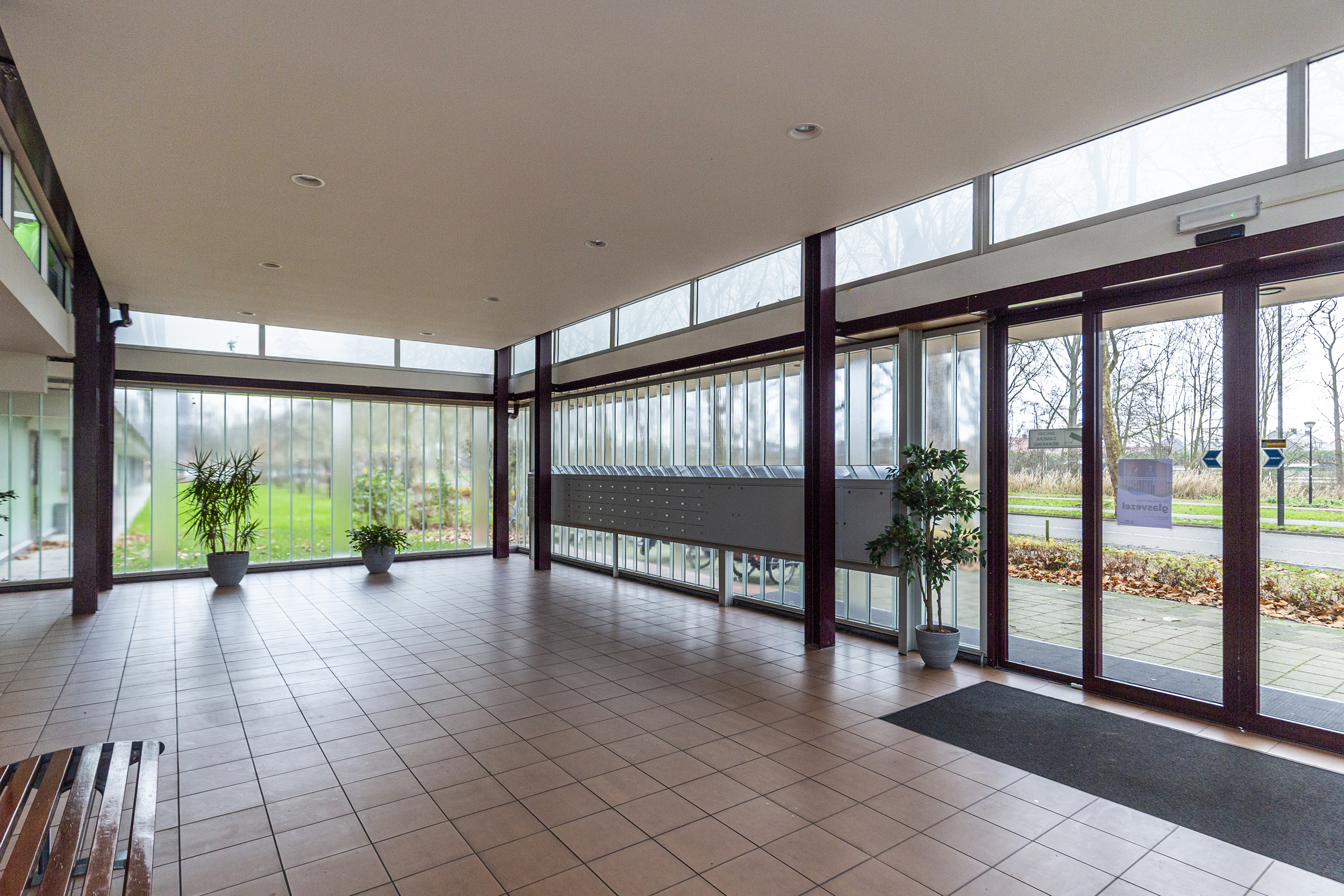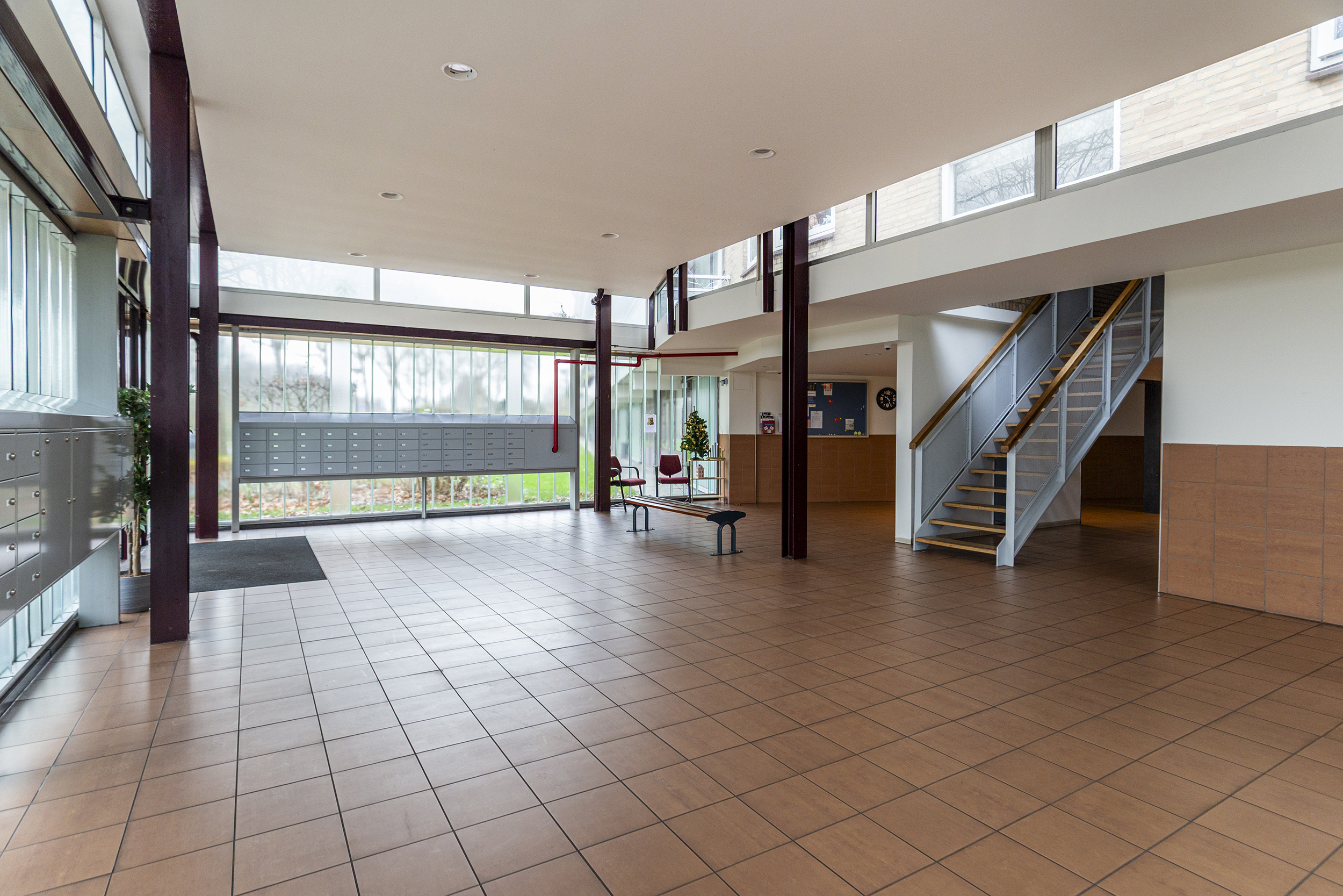 Centrale, afgesloten entree met bellentableau; via lift of trappenhuis bereik je de derde verdieping.