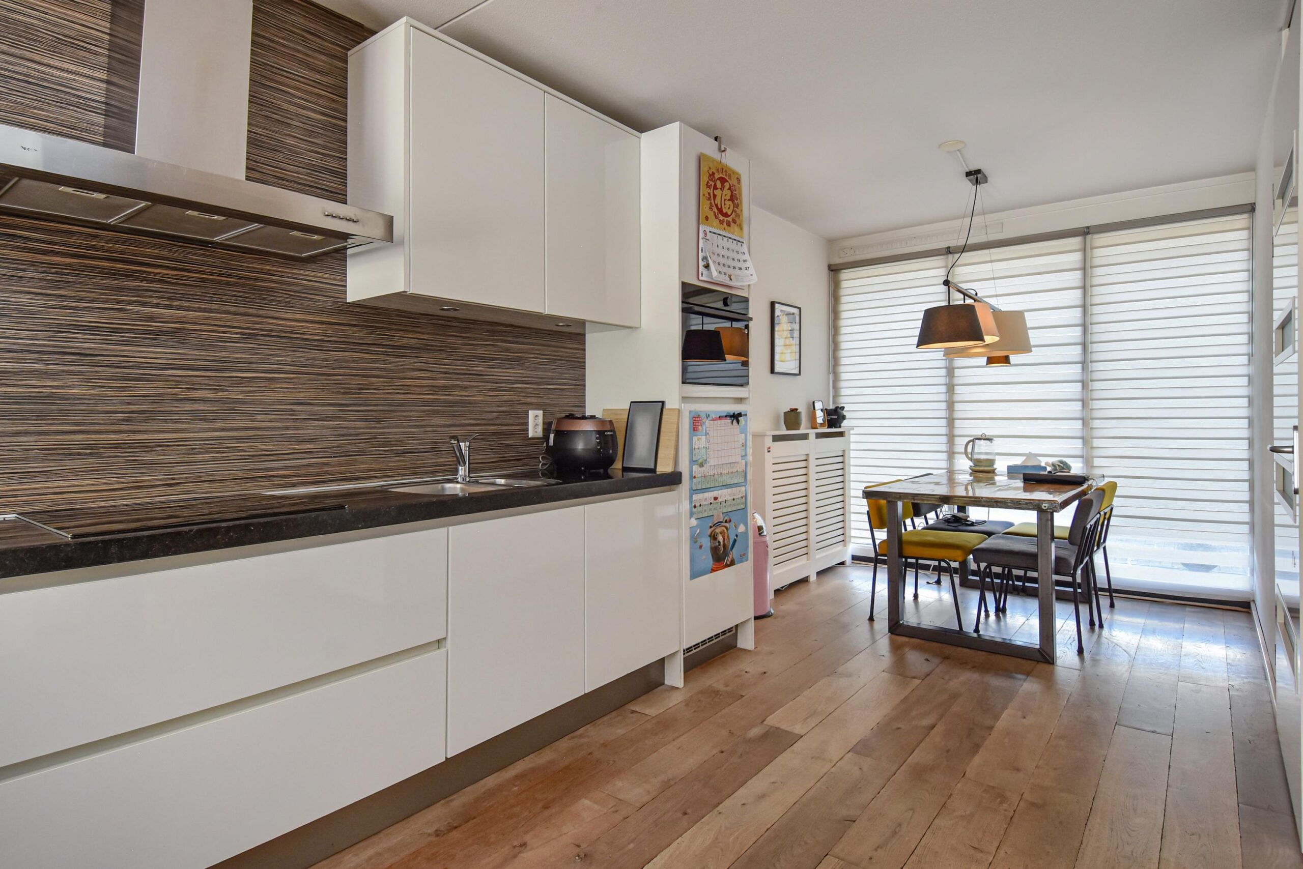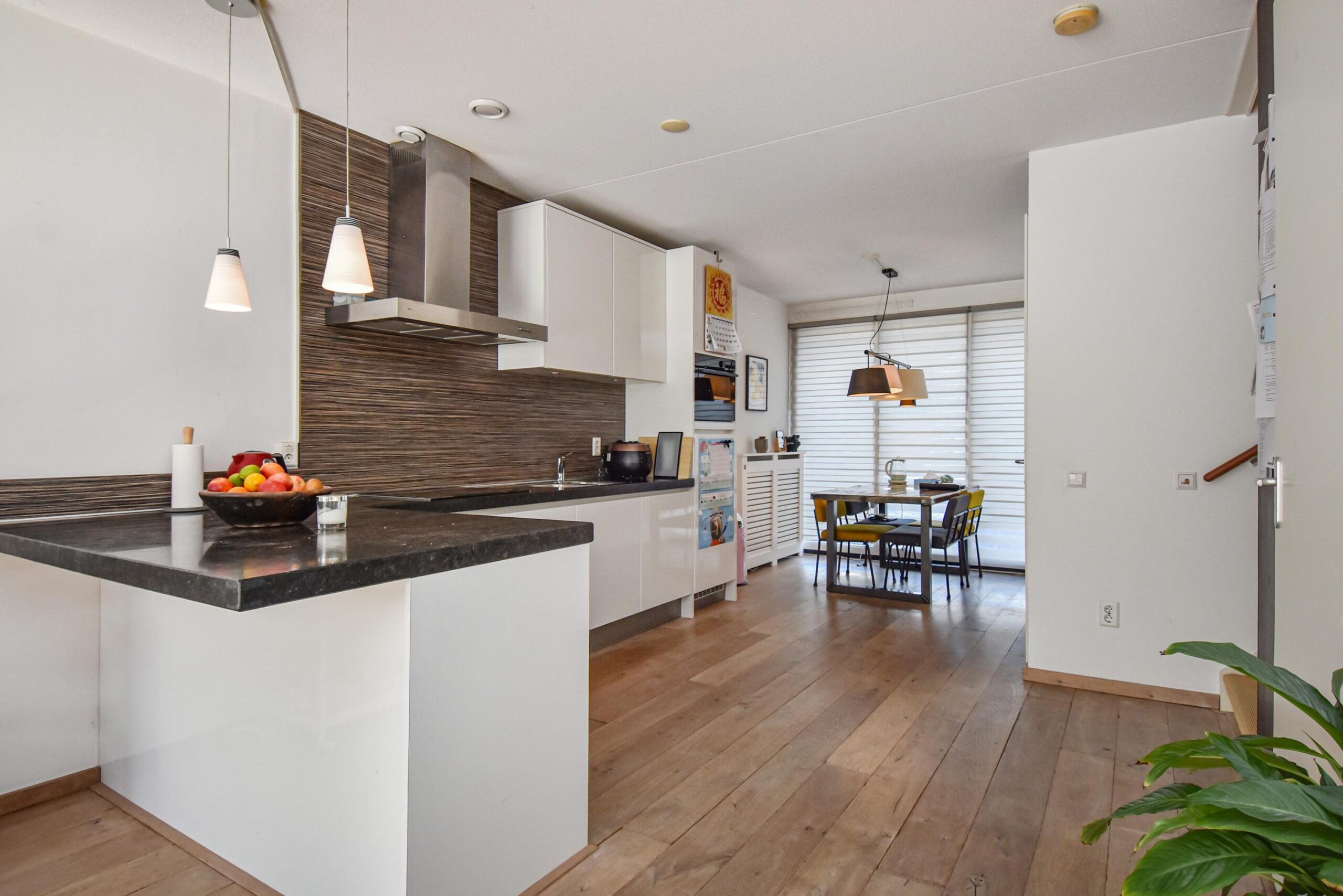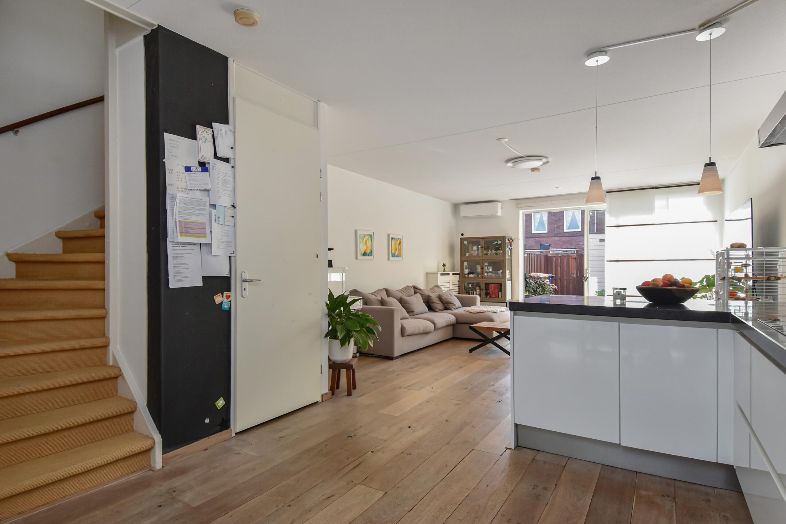 Entree, ruime hal met meterkast en toilet met fonteintje. Toegang tot de uitgebouwde woon-eetkamer met schuifpui naar de zonnige achtertuin, gelegen op het zuidoosten met terrasvlonder, berging en achterom. De keuken is in L-vorm geplaatst met een compacte “bar” en voorzien van vaatwasser, koelkast, combimagnetron, inductie kookplaat en RVS schouw. Aan de voorzijde van de woning bevindt zicht een eethoek.