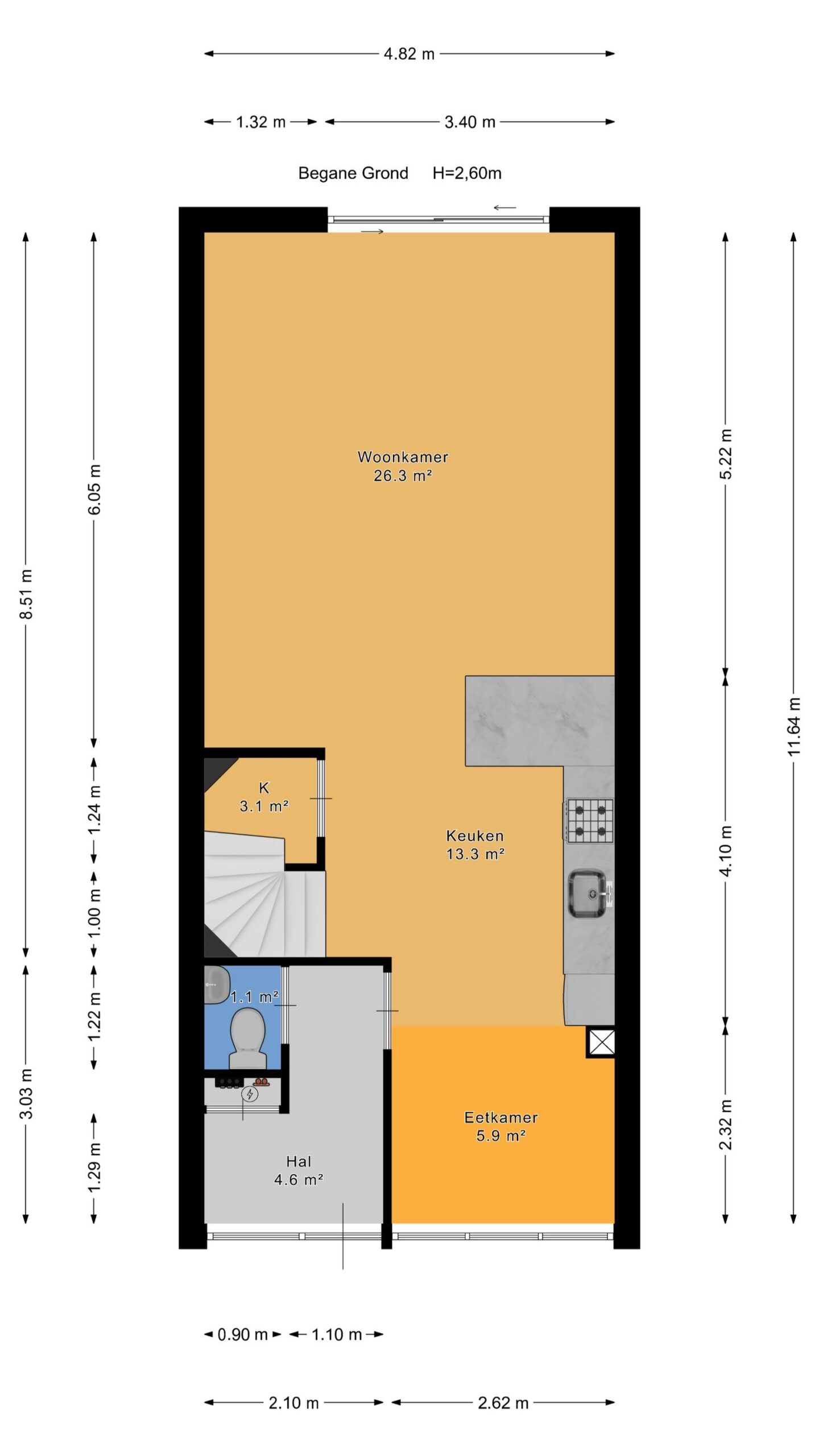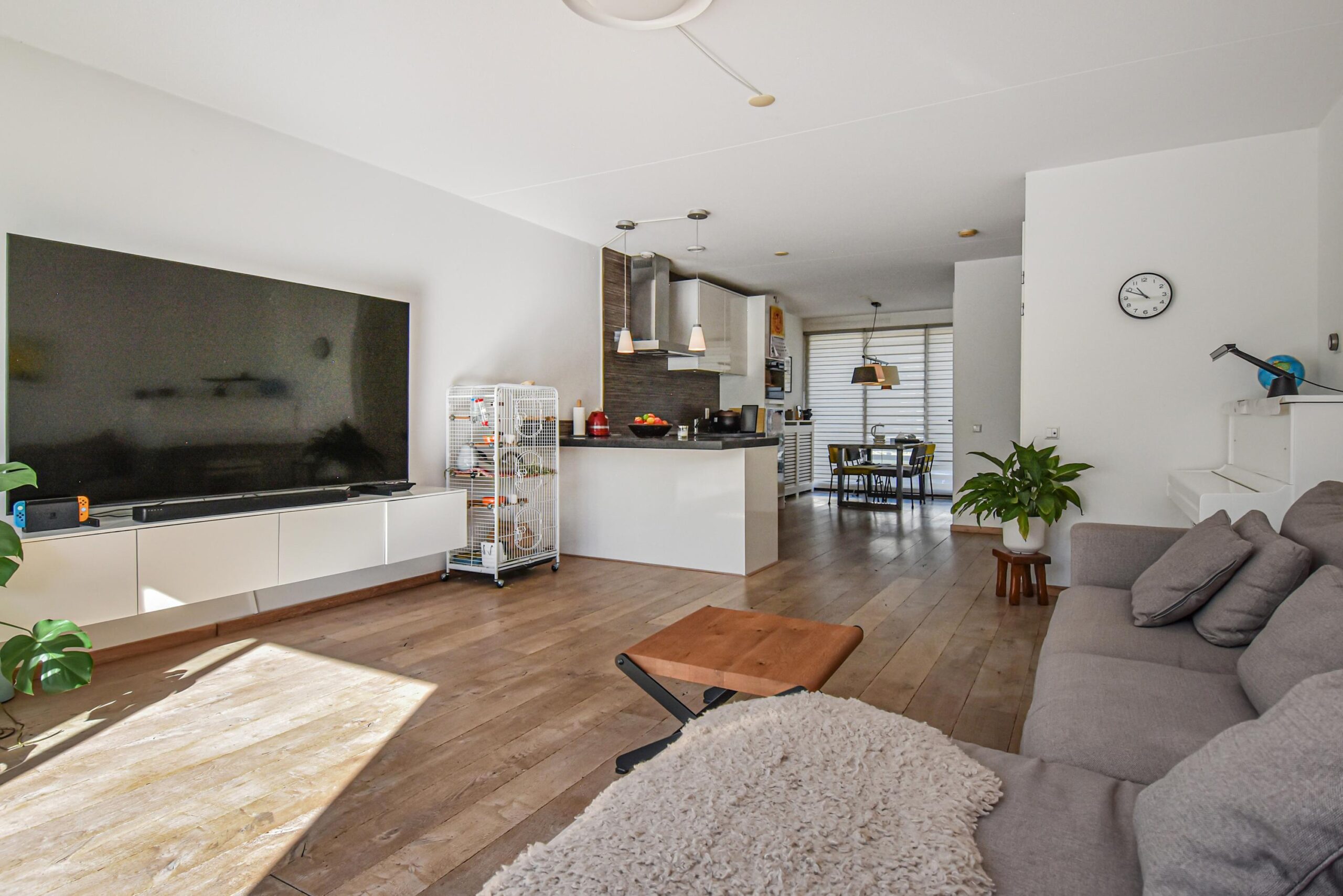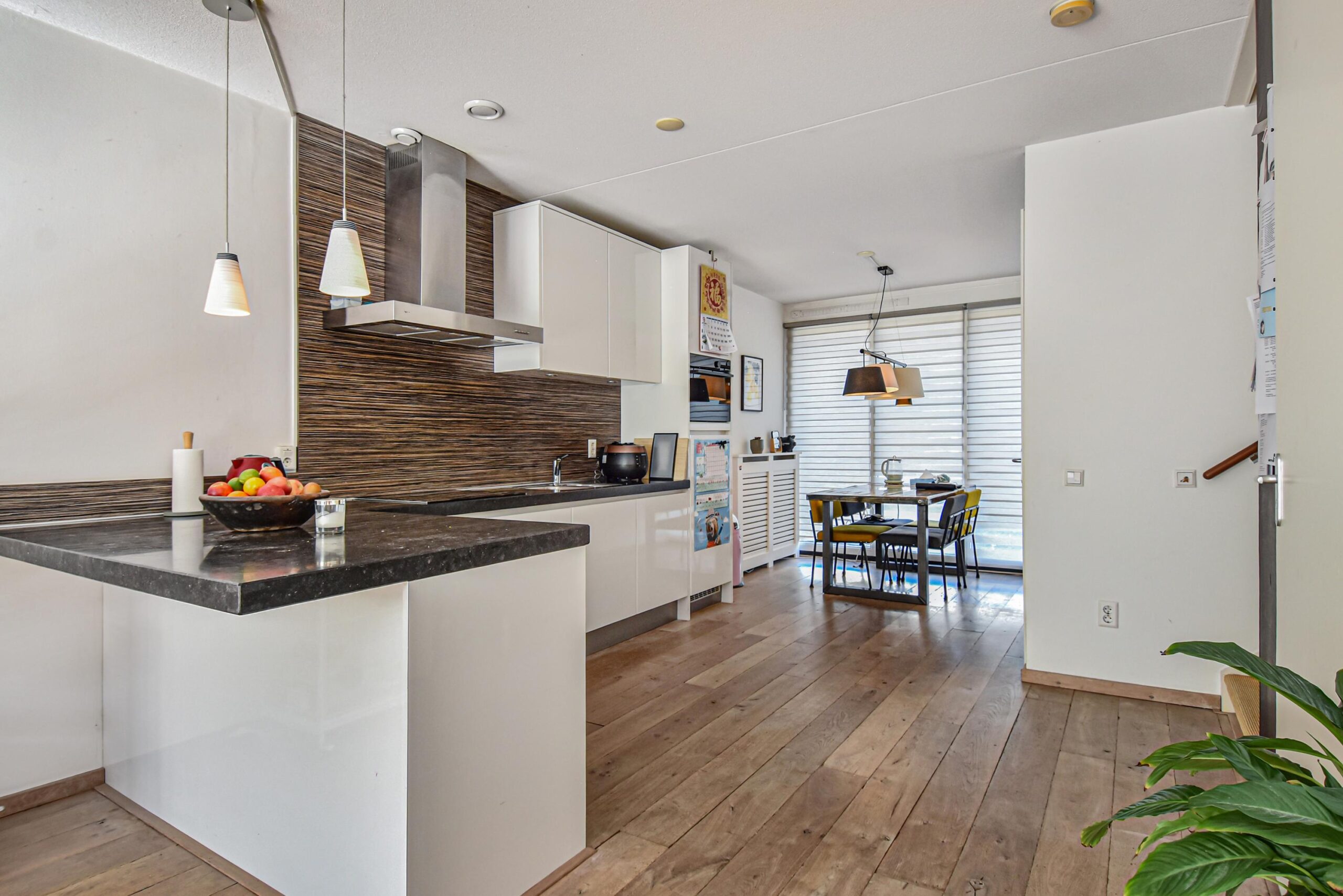 Entree, ruime hal met meterkast en toilet met fonteintje. Toegang tot de uitgebouwde woon-eetkamer met schuifpui naar de zonnige achtertuin, gelegen op het zuidoosten met terrasvlonder, berging en achterom. De keuken is in L-vorm geplaatst met een compacte “bar” en voorzien van vaatwasser, koelkast, combimagnetron, inductie kookplaat en RVS schouw. Aan de voorzijde van de woning bevindt zicht een eethoek.
