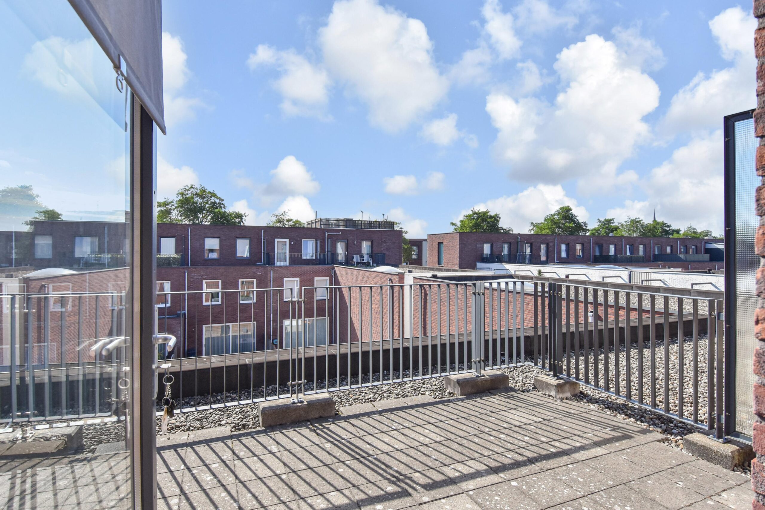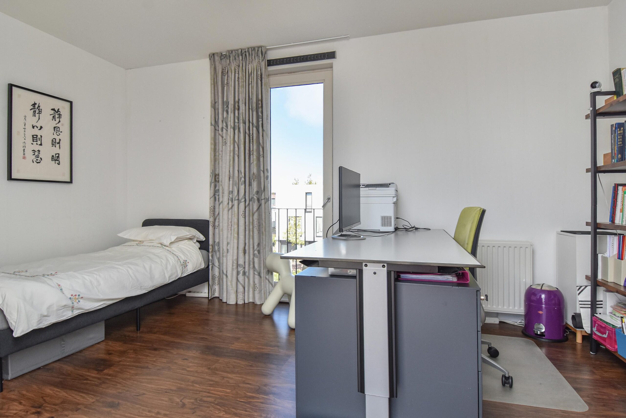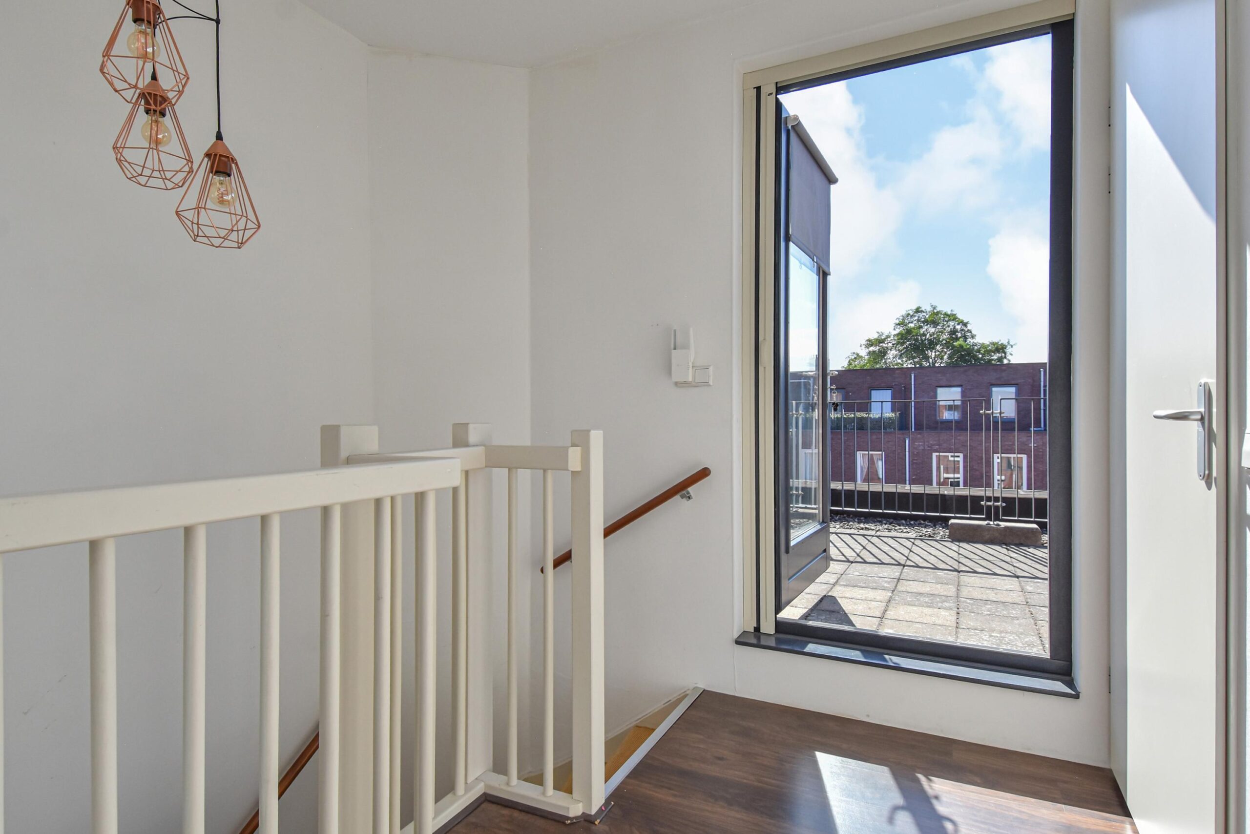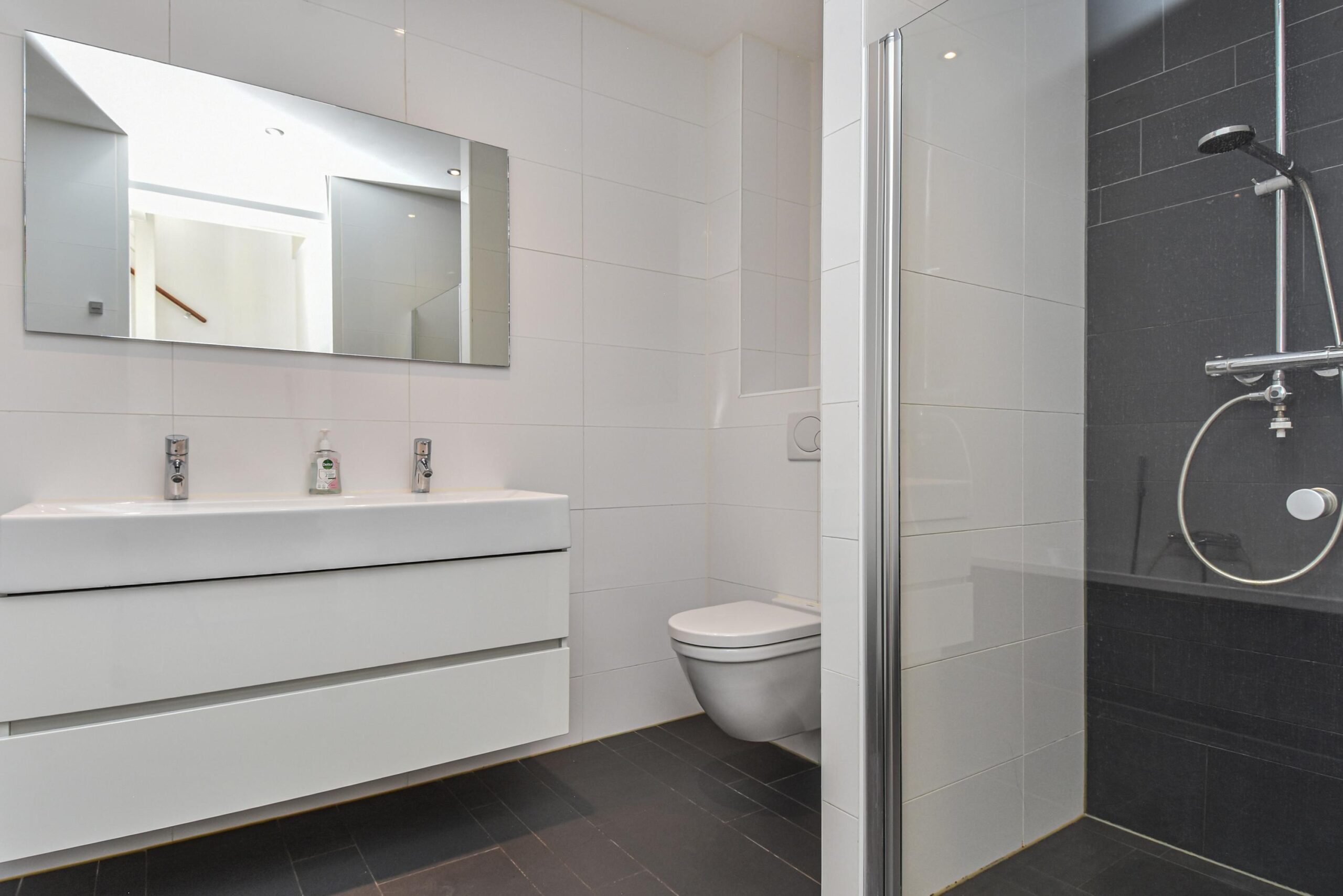 Overloop, toegang tot het ruime dakterras, wasruimte met opstelplaats wasmachine, wasdroger (groep en extra afvoer) en mechanische ventilatie, ruime voorslaapkamer met inloopkast en Frans balkon.