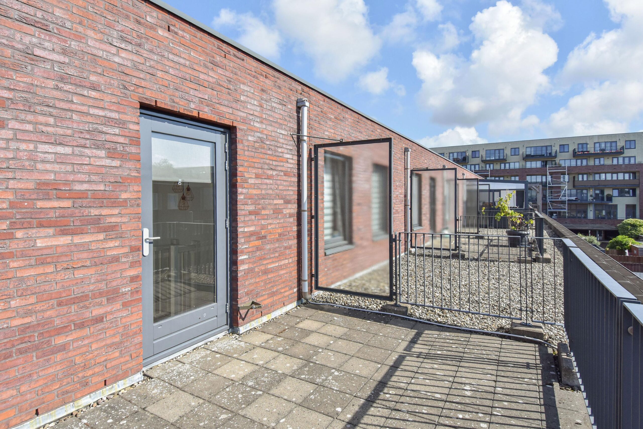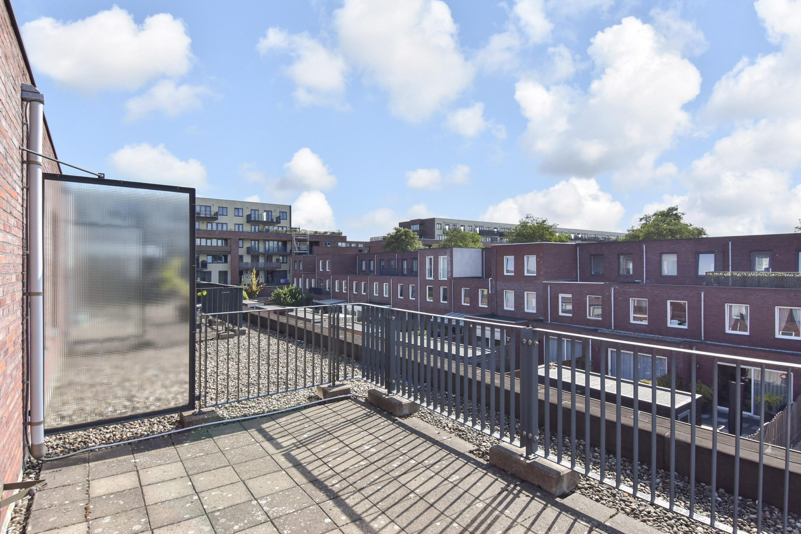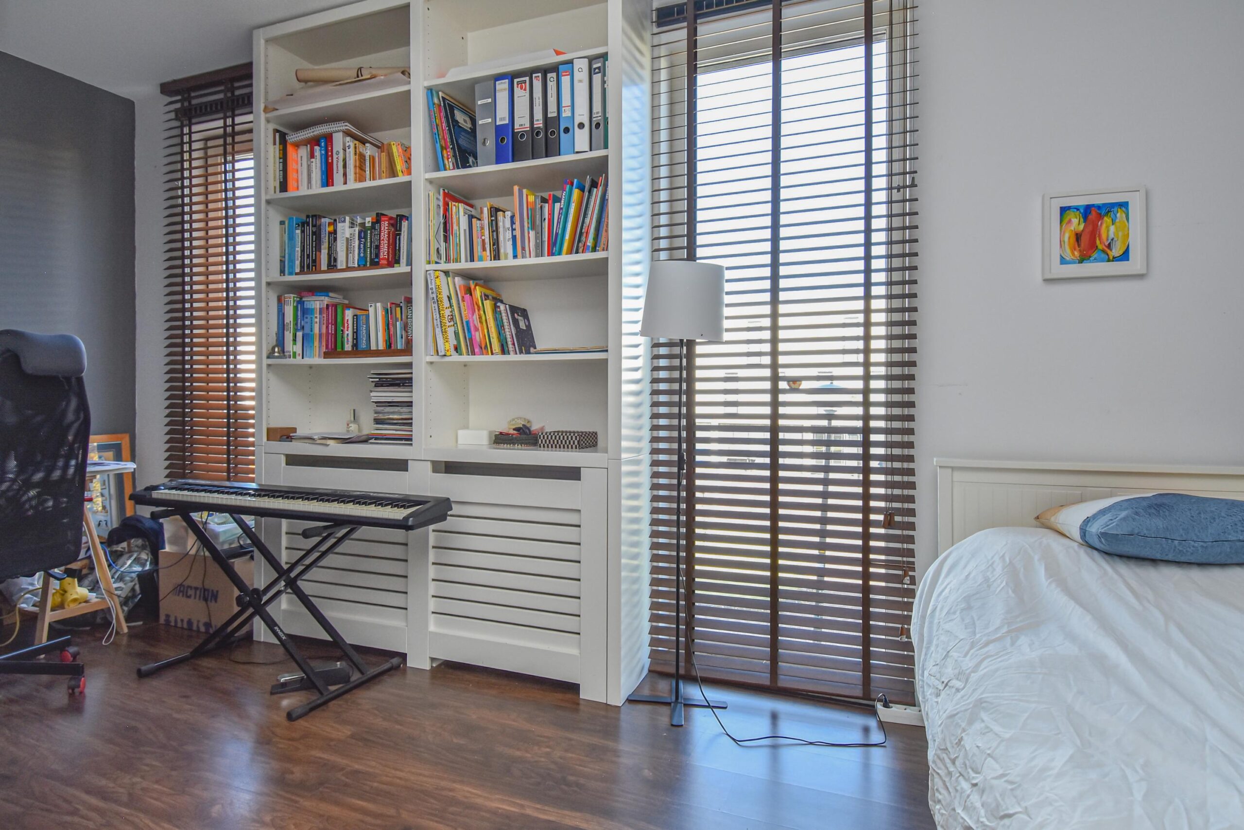 Overloop, toegang tot het ruime dakterras, wasruimte met opstelplaats wasmachine, wasdroger (groep en extra afvoer) en mechanische ventilatie, ruime voorslaapkamer met inloopkast en Frans balkon.