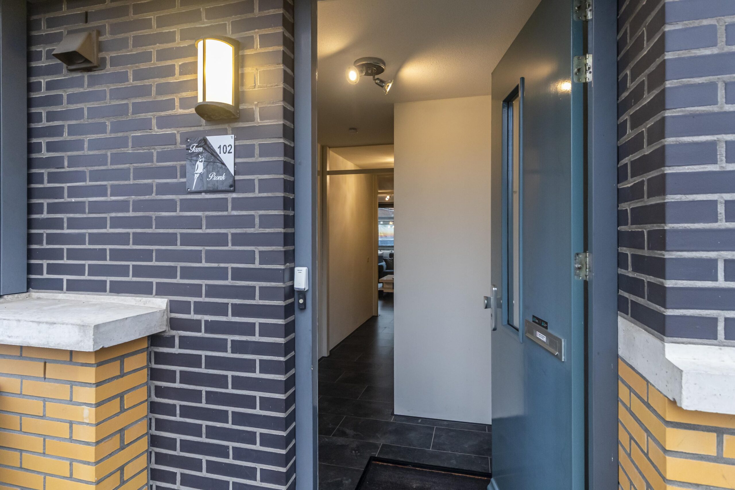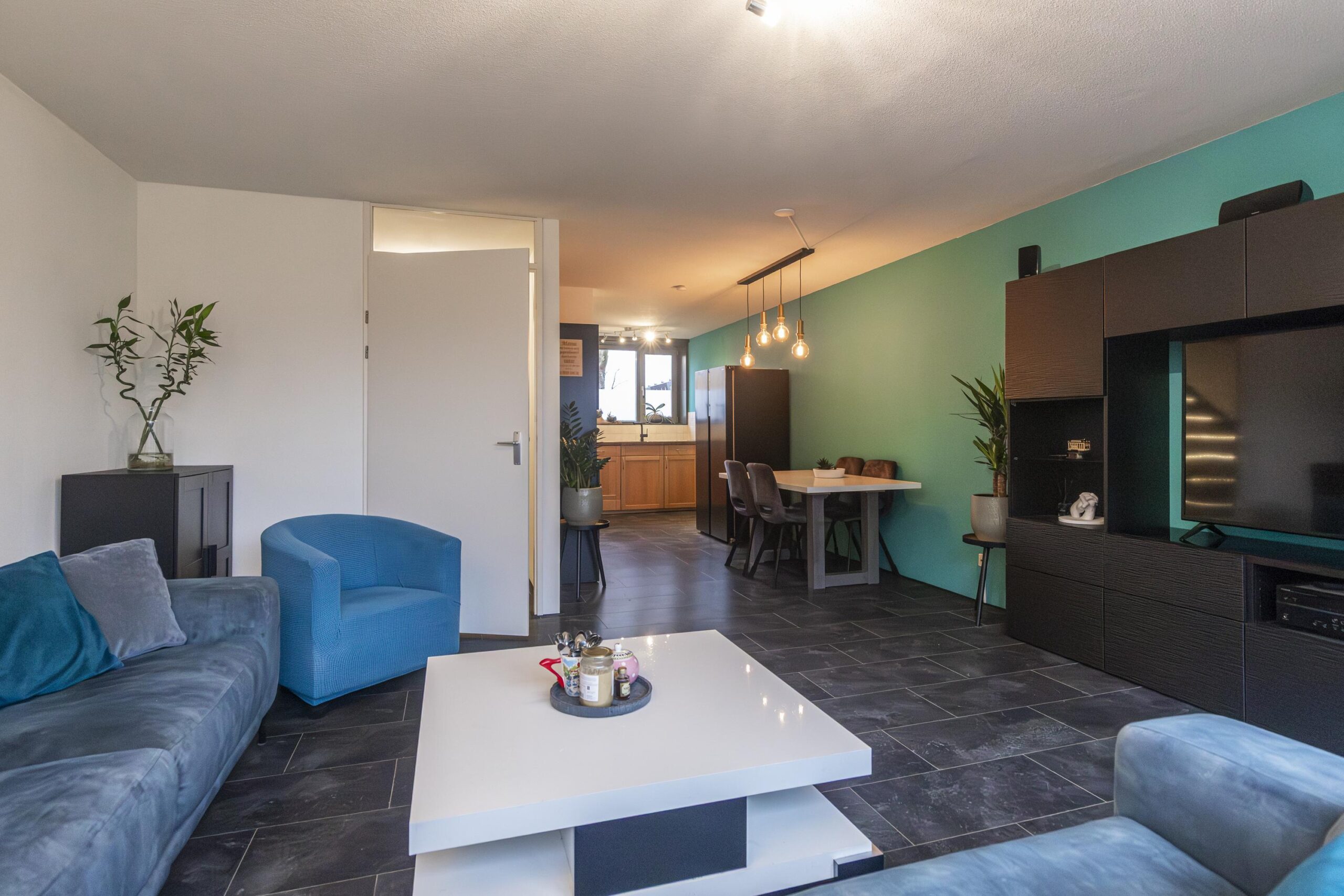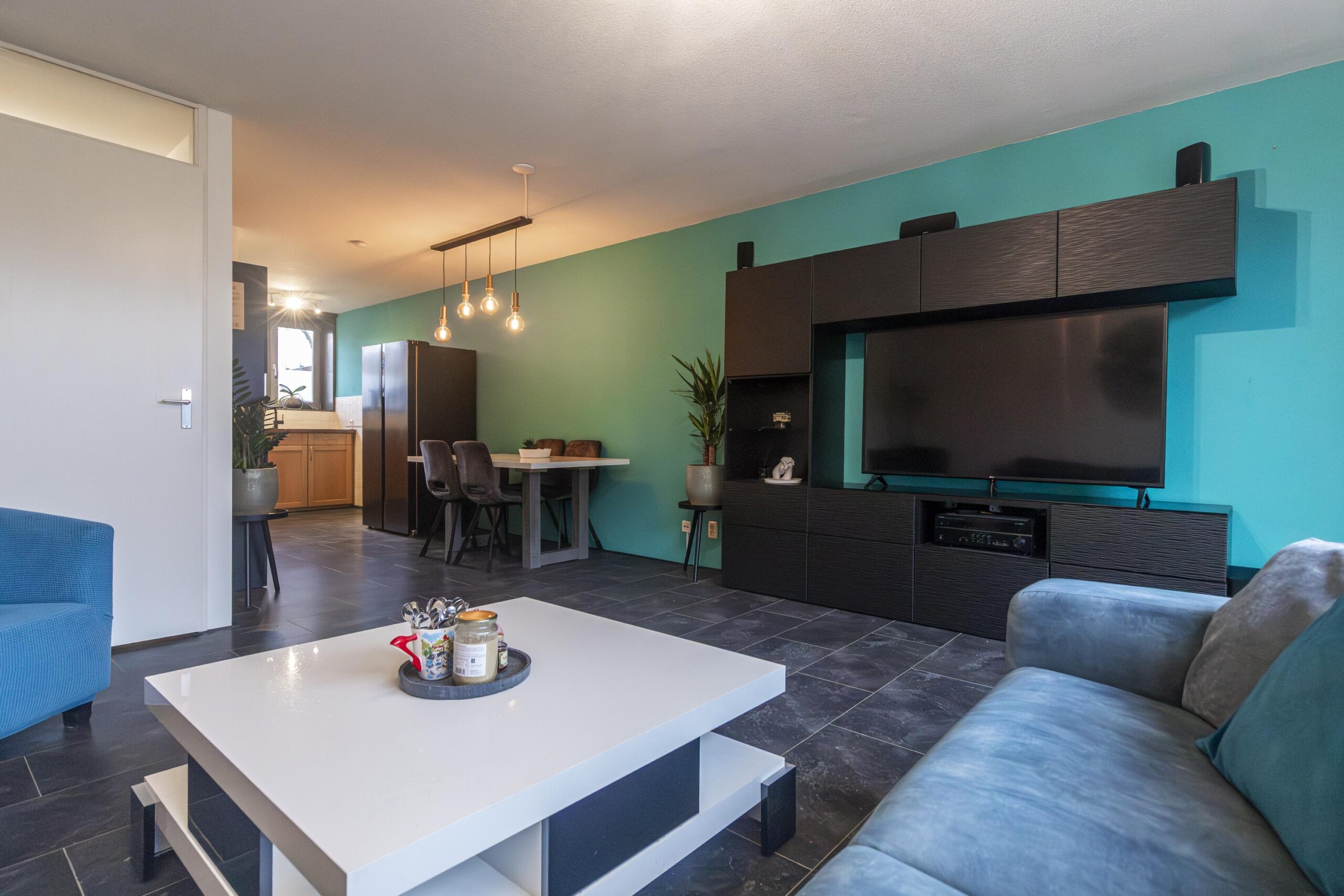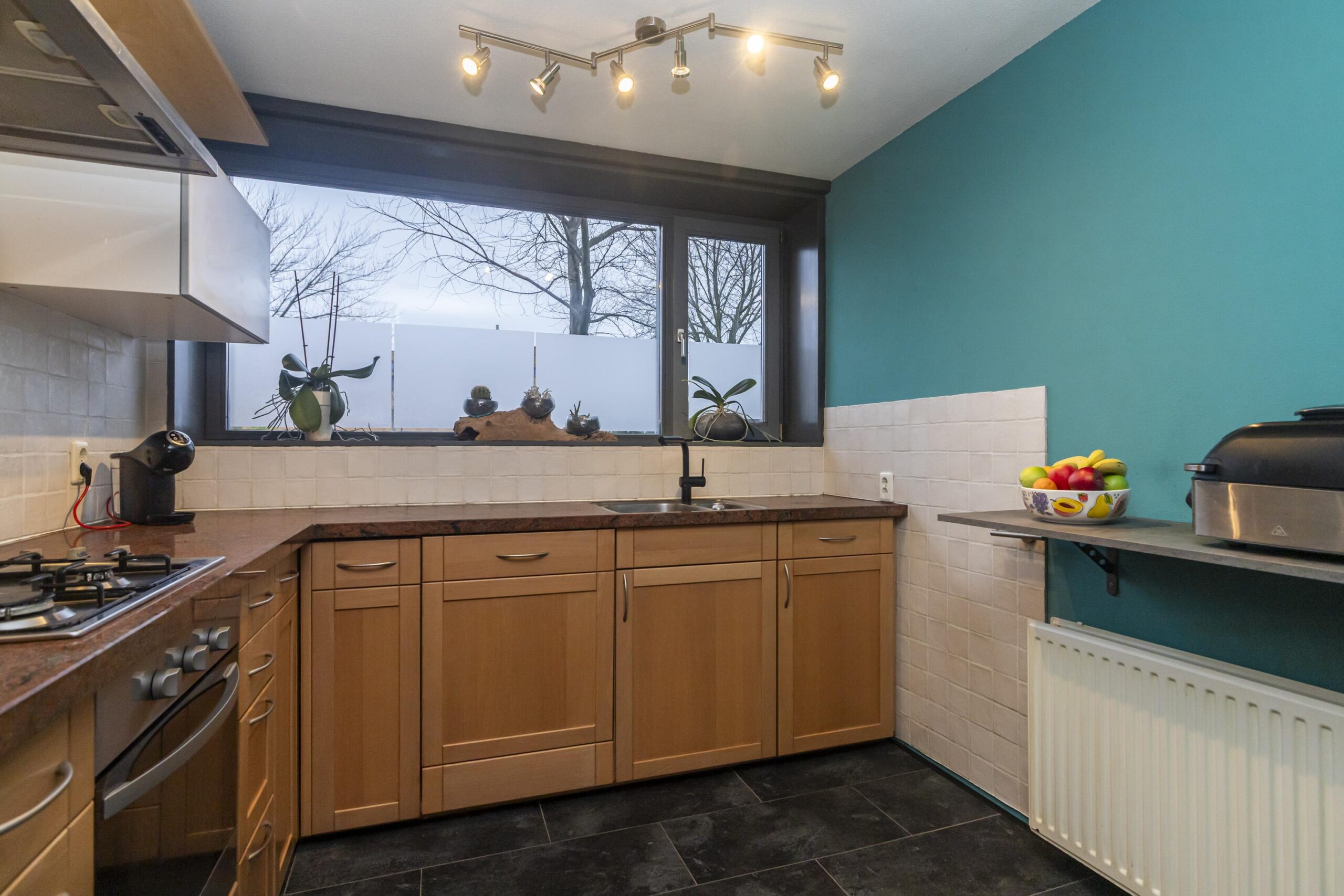 Via de verzorgde voortuin bereik je de entree van de woning. In het tochtportaal bevinden zich de meterkast en het toilet met fonteintje. De trap naar boven is recent vernieuwd en afgewerkt met pvc-bekleding en ingebouwde verlichting, wat zorgt voor een strakke en moderne uitstraling. Vanuit de hal stap je de lichte woon-eetkamer binnen waar de brede schuifpui aan de achterzijde zorgt voor veel daglicht en direct toegang geeft tot de zonnige tuin. Onder de trap is een praktische bergruimte aanwezig. Aan de voorzijde van de woning ligt de keuken in een L-opstelling die is voorzien van een vierpits gasfornuis, een elektrische oven, afzuiging naar buiten, Amerikaanse koelkast uit 2023 en een vaatwasser uit 2022. Aan de tuinzijde is een elektrische zonwering geplaatst over de volledige breedte van het huis waardoor je op warme dagen beschut buiten kunt zitten.