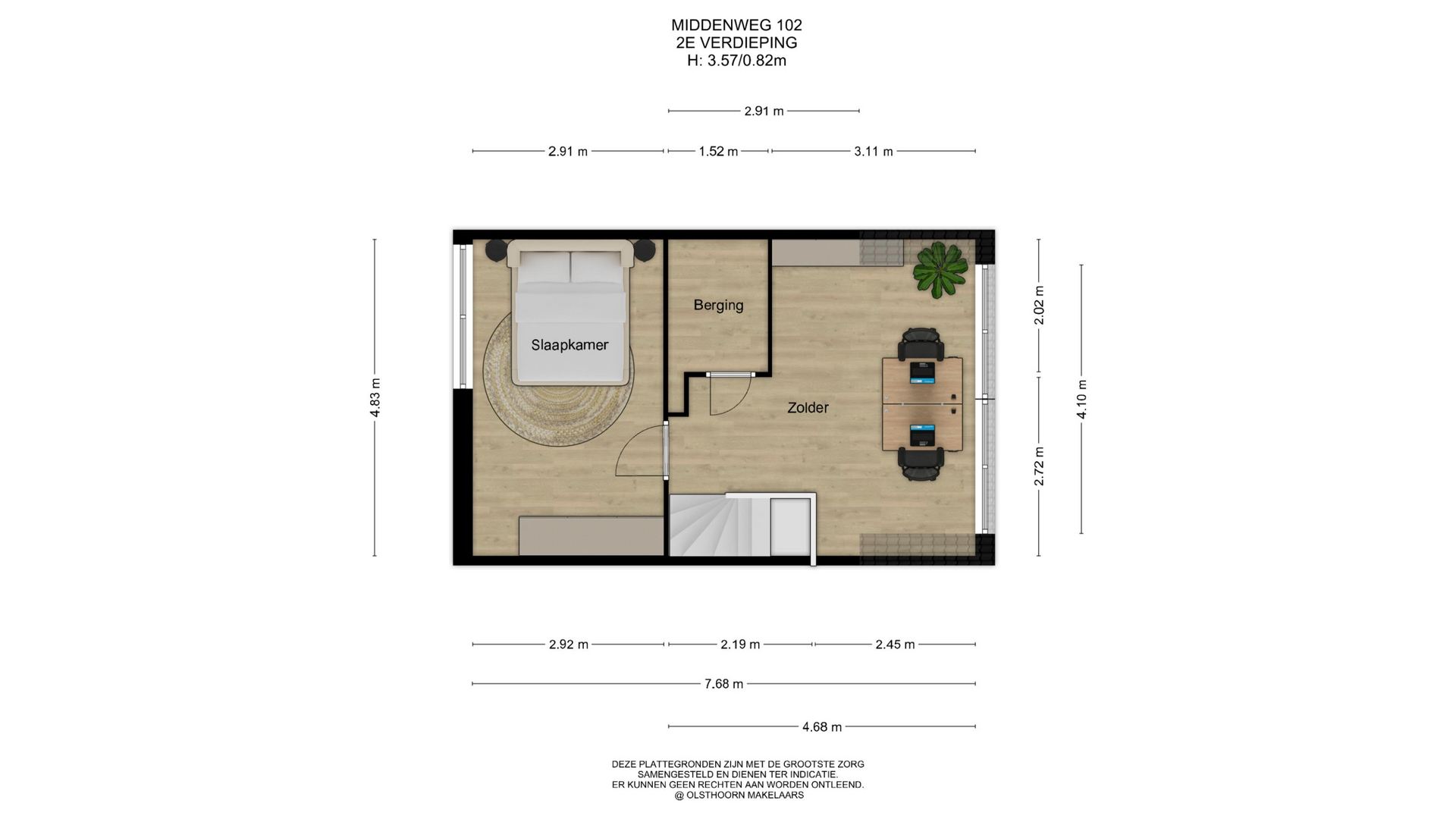Ook de tweede verdieping biedt veel ruimte. De overloop is voorzien van elektrische verwarming en beschikt over knieschotten, ideaal voor het opbergen van spullen. Aan de achterzijde is een brede dakkapel geplaatst, waardoor hier een volwaardige extra kamer is ontstaan, eventueel is hier een extra slaapkamer te realiseren. De technische ruimte is keurig weggewerkt en biedt plaats aan de wasmachine- en drogeraansluiting, de HR-combiketel en de omvormer van de zonnepanelen. Aan de voorzijde bevindt zich nog een vierde slaapkamer, die is voorzien van een open vliering. Deze vliering is niet alleen sfeervol, maar ook handig als extra bergruimte.