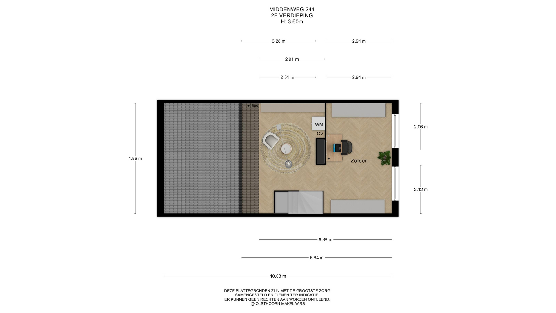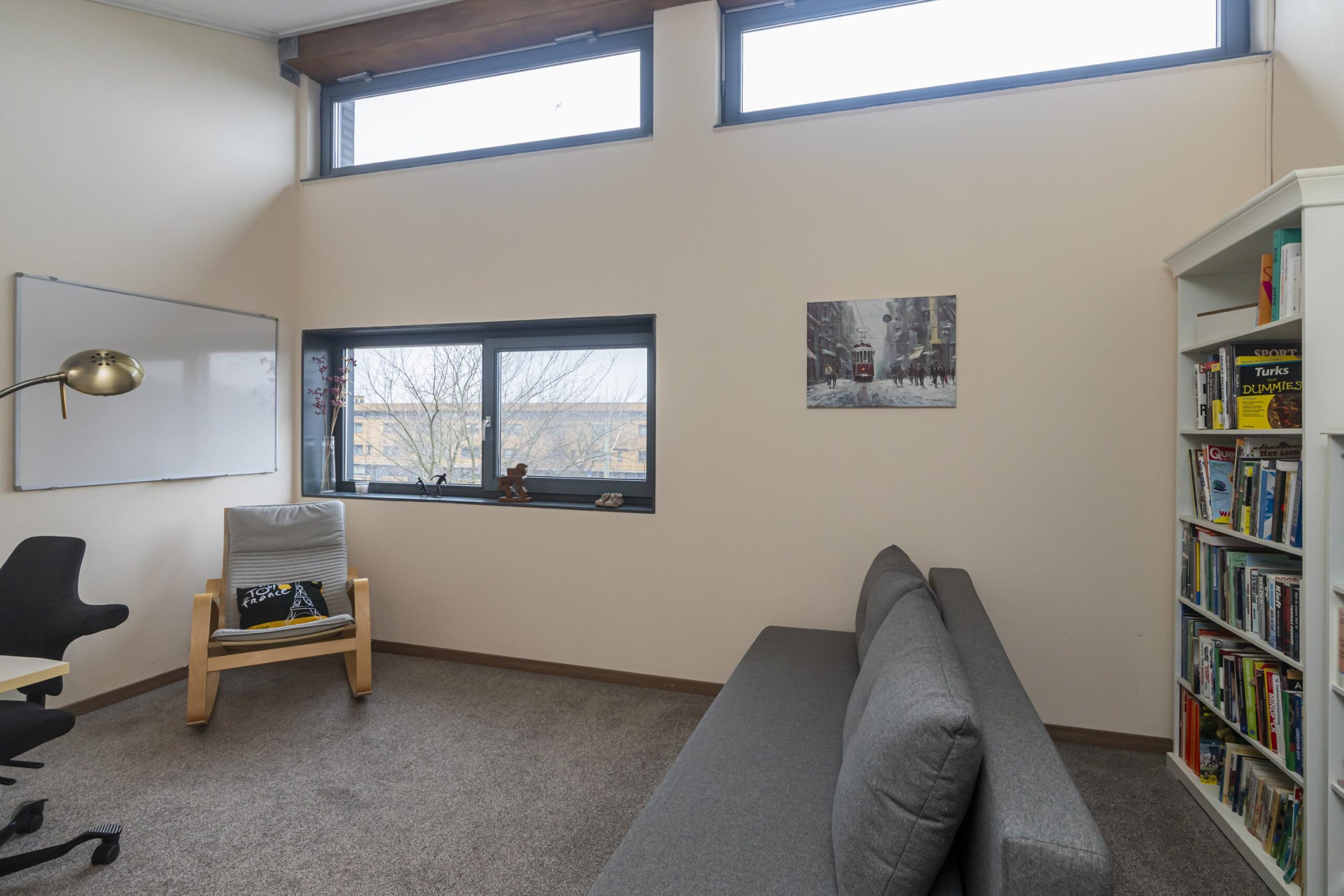 De tweede verdieping biedt een ruime vierde slaapkamer met knieschotten, wat zorgt voor extra bergruimte. Daarnaast vind je hier een praktische lichte zolderruimte met de opstelplaats voor de HR CV-combiketel, aansluitingen voor de wasmachine en mechanische ventilatie.
