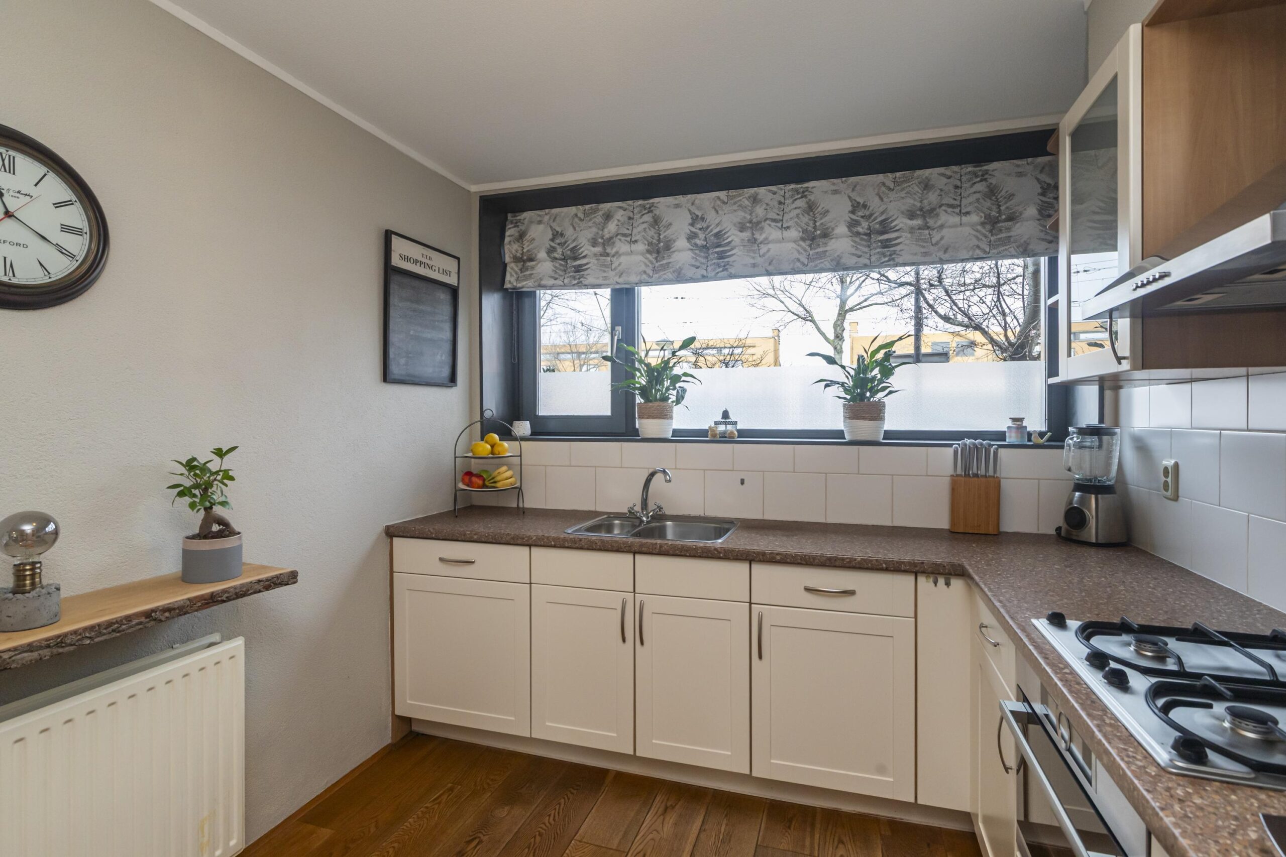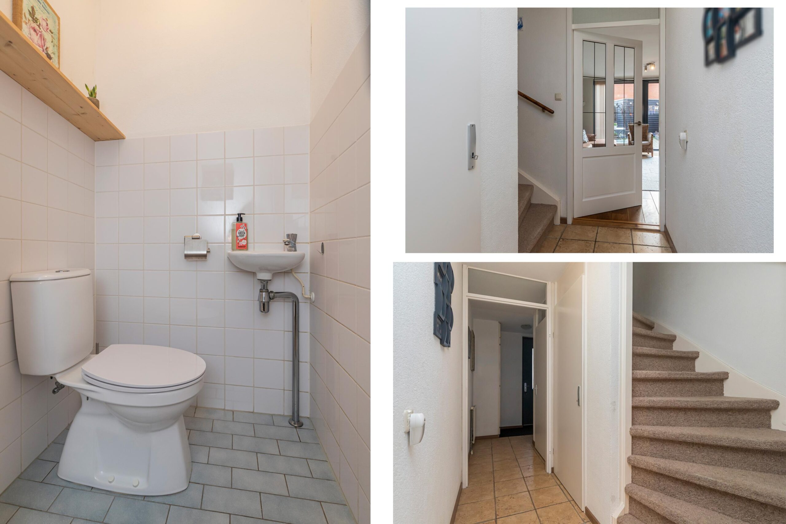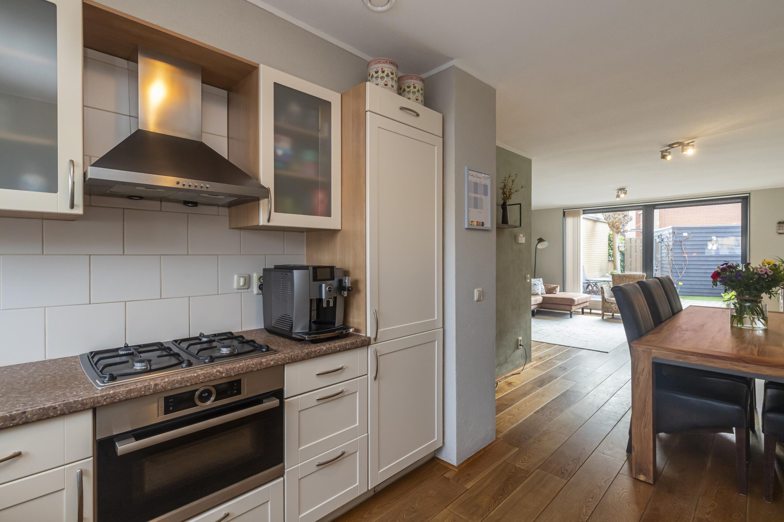 Via de leuk aangelegde voortuin kom je de woning binnen in het tochtportaal waar je meteen de meterkast vindt. De hal met de trap biedt toegang tot een toilet met fonteintje en een handige trapkast. De ruime, lichte woonkamer is afgewerkt met een mooie houten vloer en heeft via een schuifdeur toegang tot de fraai aangelegde, zonnige achtertuin. De halfopen keuken is voorzien van inbouwapparatuur, zoals een vaatwasser, koel-/vriescombinatie, 4-pits gaskookplaat, RVS afzuigkap en een combimagnetron.