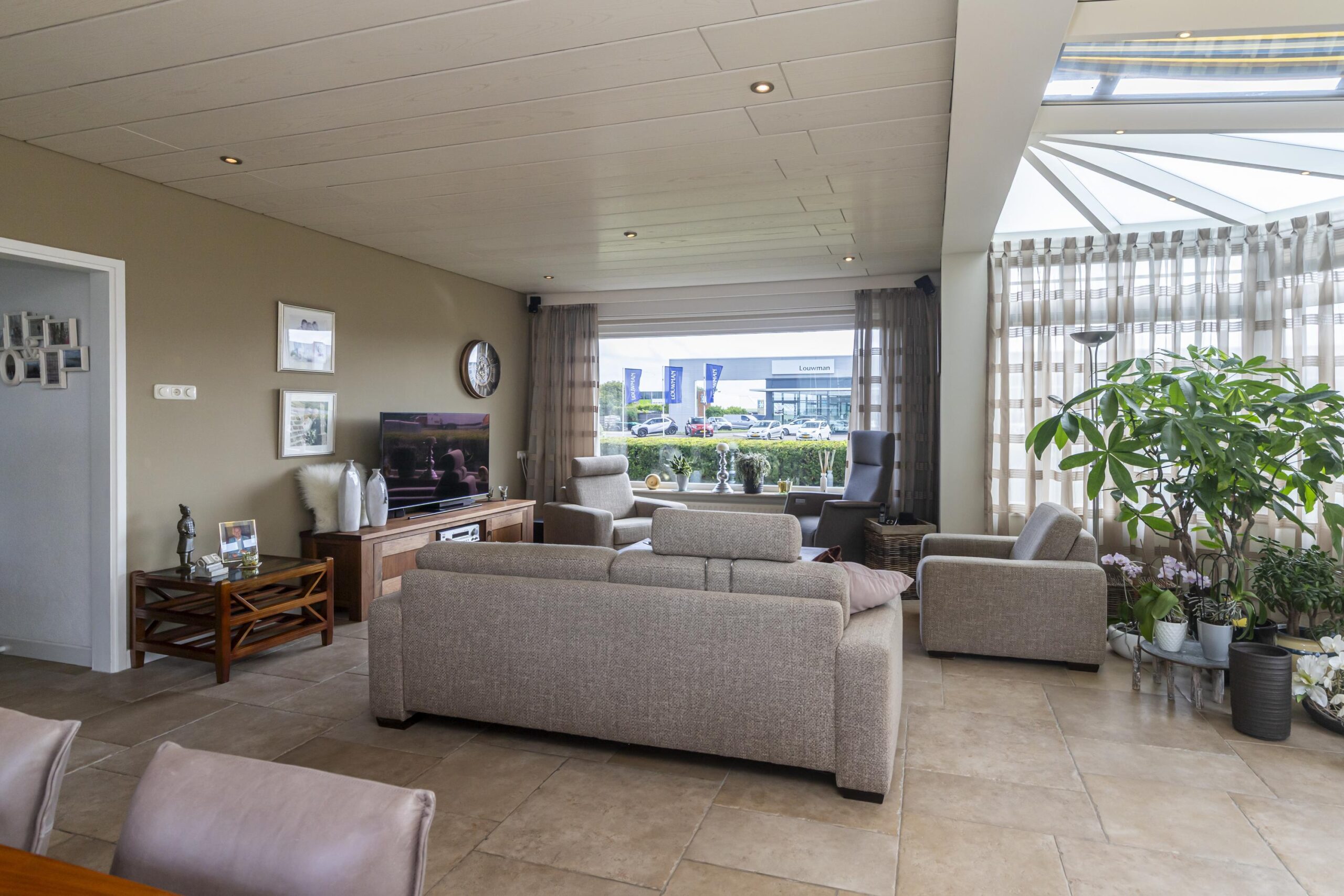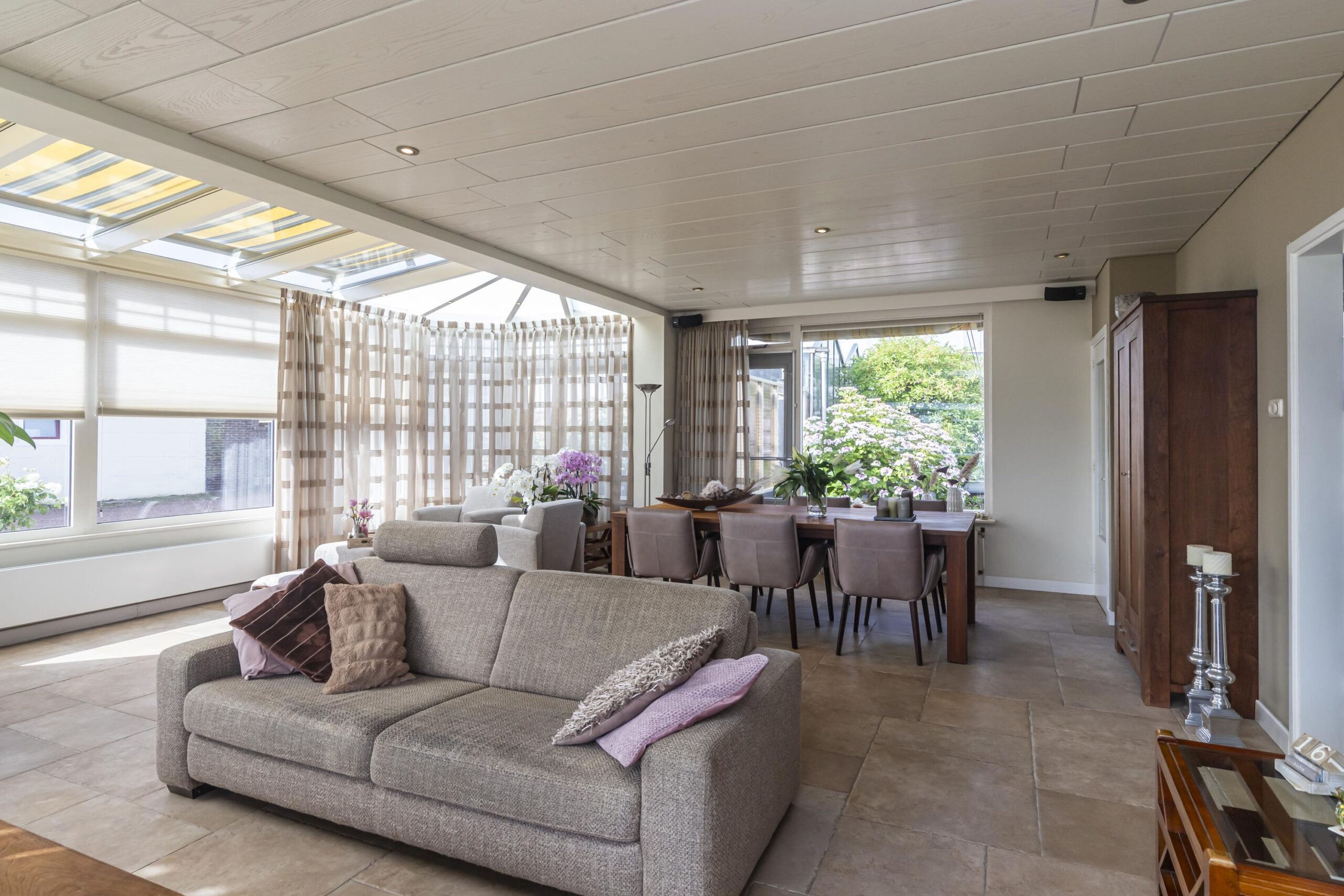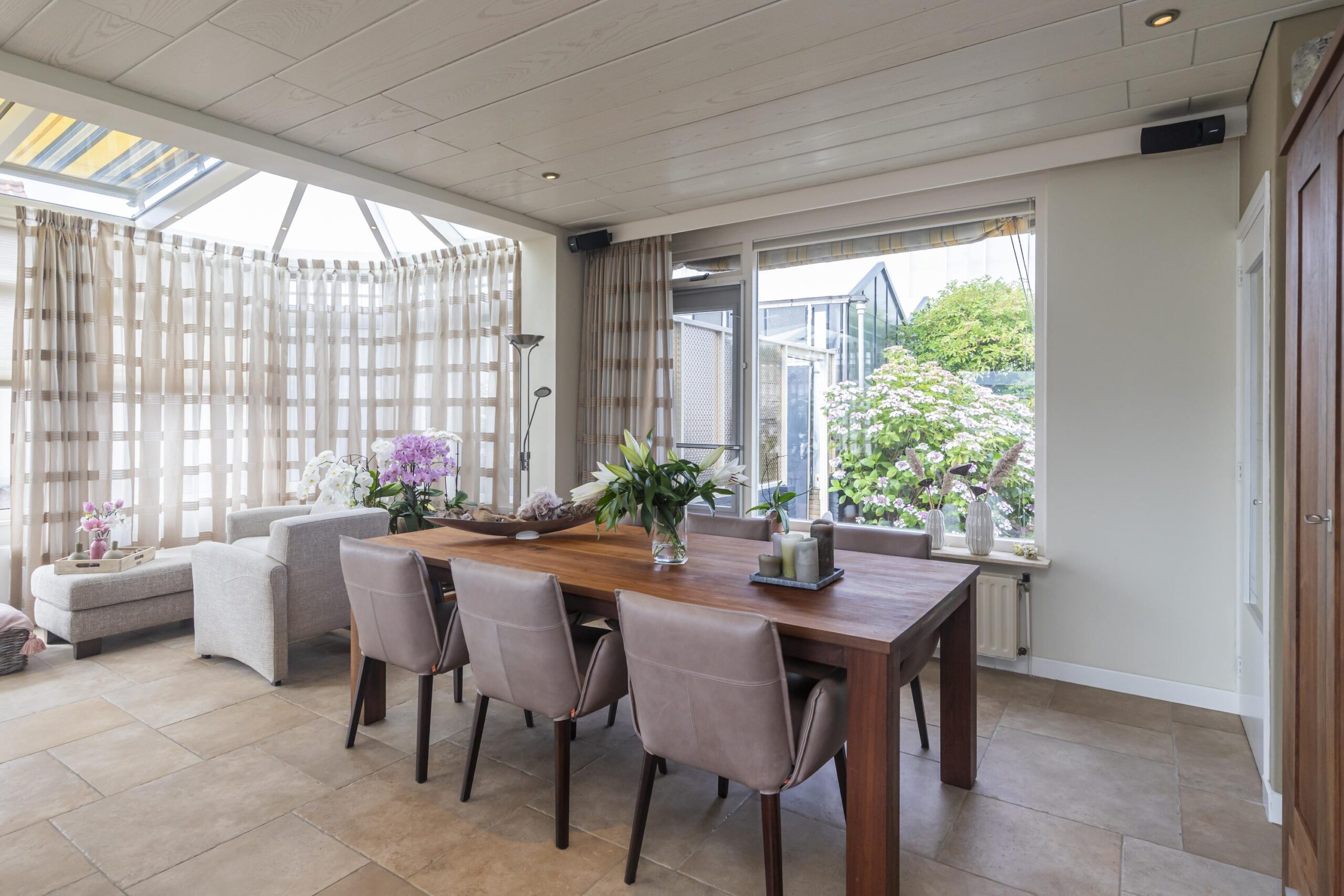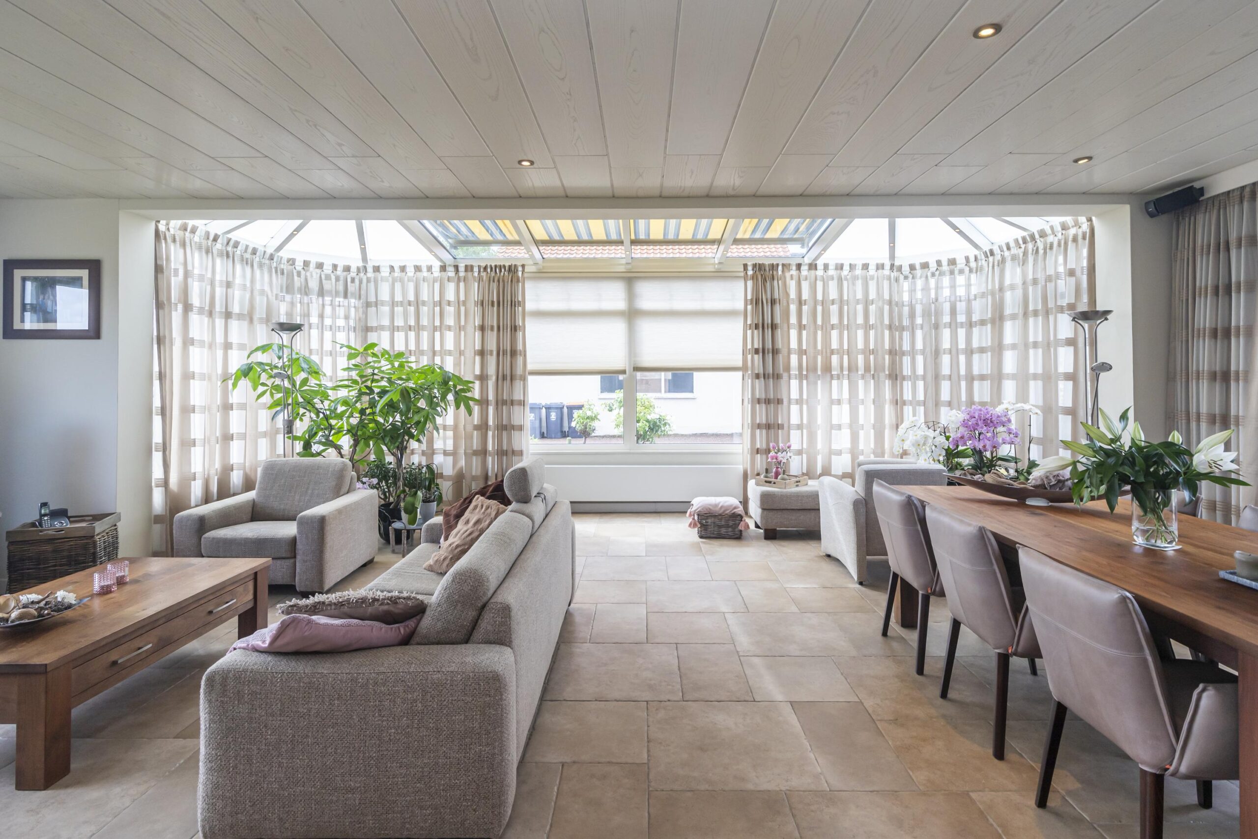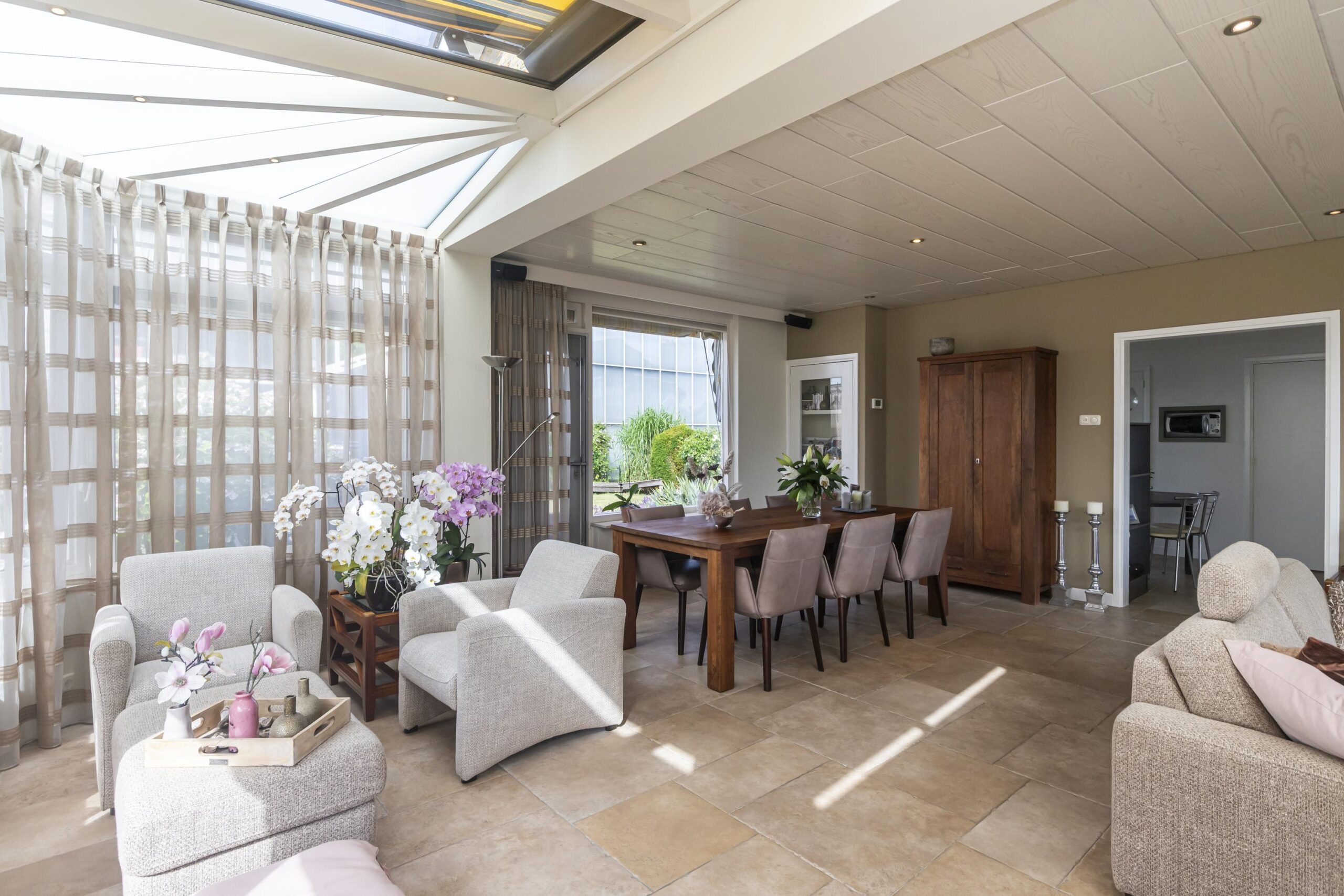 De woonkamer is licht en ruim dankzij de aangebouwde serre. De serre, die is voorzien van HR+ glas, zorgt voor veel zonlicht en draagt bij aan de lichte uitstraling van de woning. De vloerverwarming op de gehele begane grond (met uitzondering van de bijkeuken) maakt het lekker warm en comfortabel.