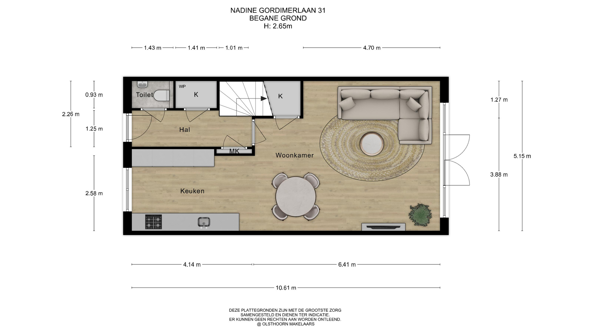 Deze informatie is geheel vrijblijvend, uitsluitend voor geadresseerde bestemd en niet bedoeld als aanbod. Ten aanzien van de juistheid van de vermelde informatie kan door de verkopend makelaar en haar opdrachtgever geen aansprakelijkheid worden aanvaard, noch kan aan de vermelde informatie enig recht worden ontleend.